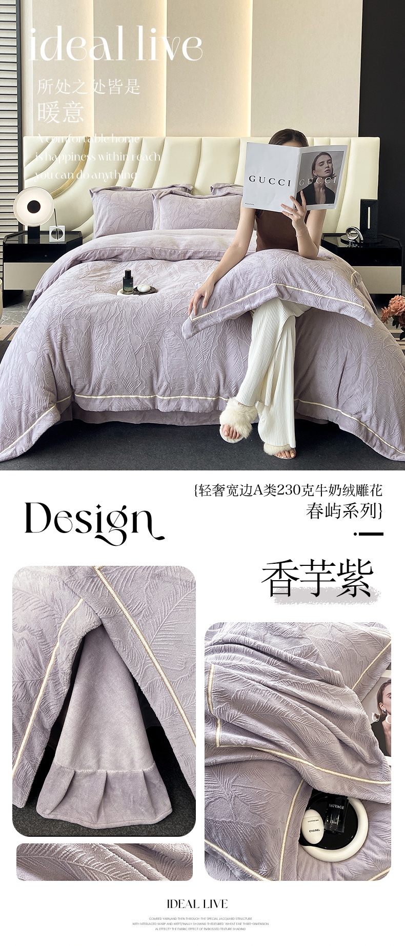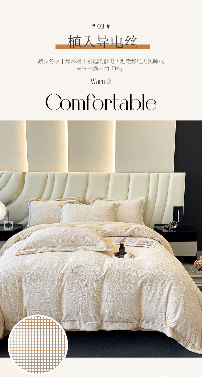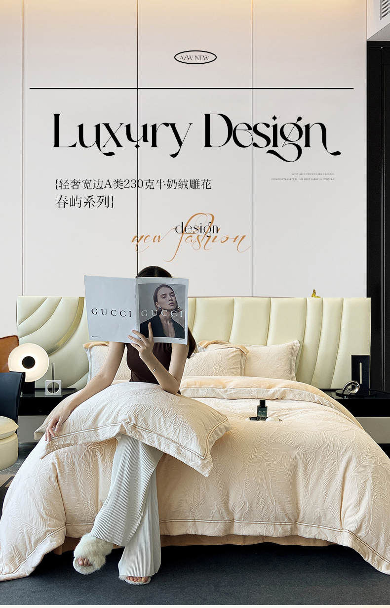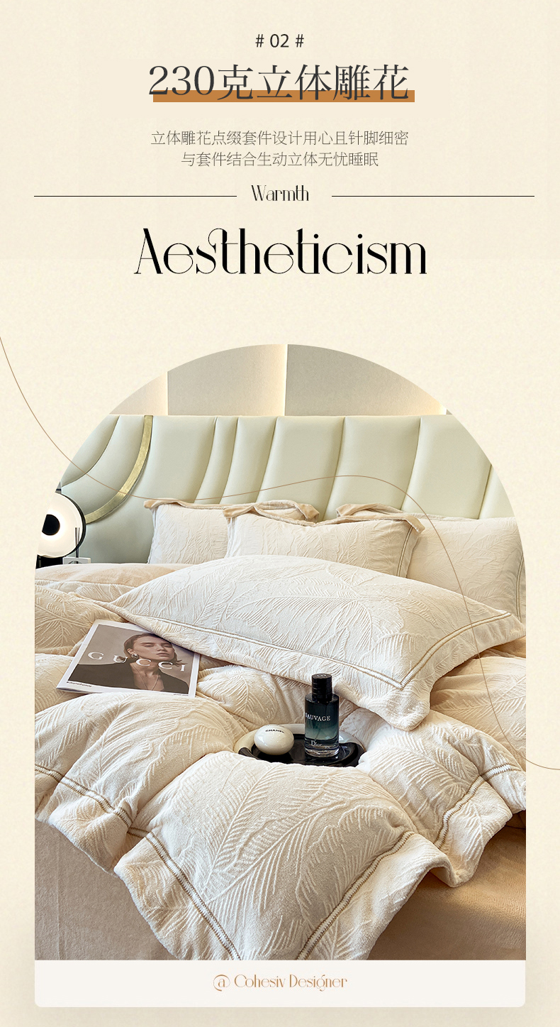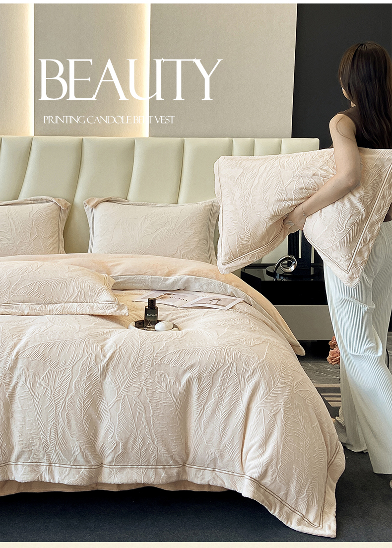 金喜 2024新款AB230克全消光牛奶绒雕花绒四件套--春屿系列 玉脂粉