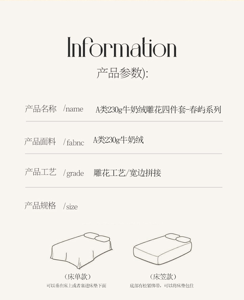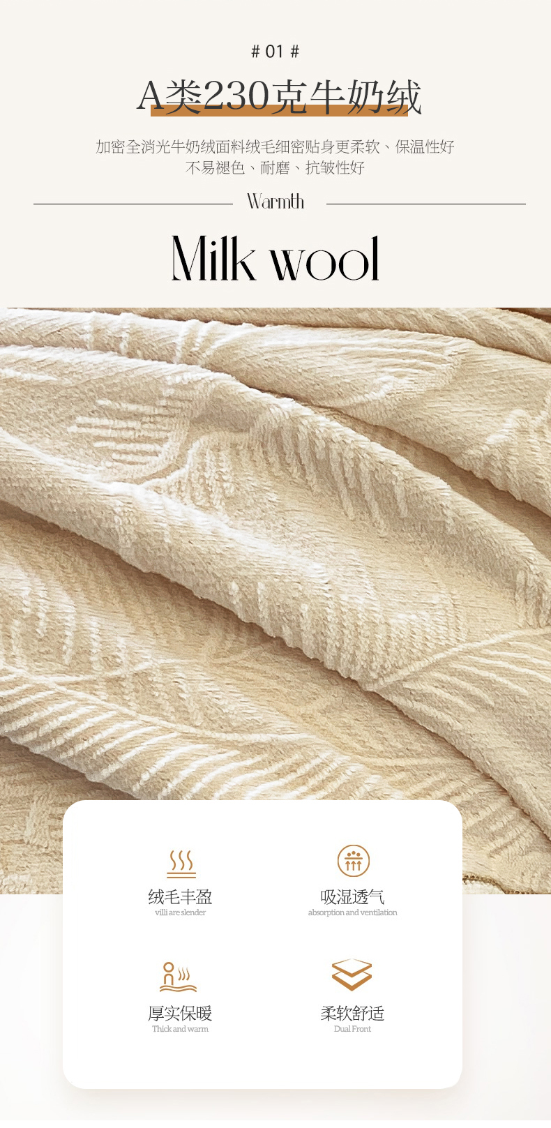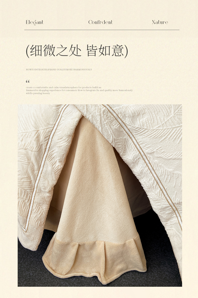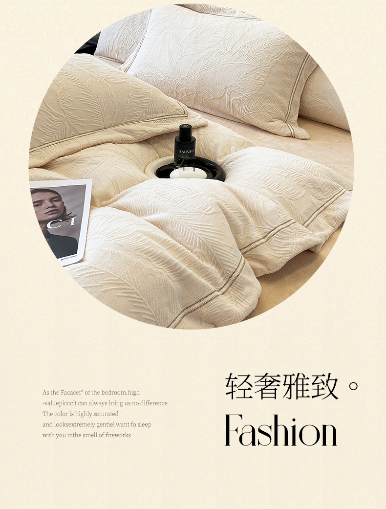 商品名称:金喜 2024新款AB230克全消光牛奶绒雕花绒四件套--春屿系列 玉脂粉