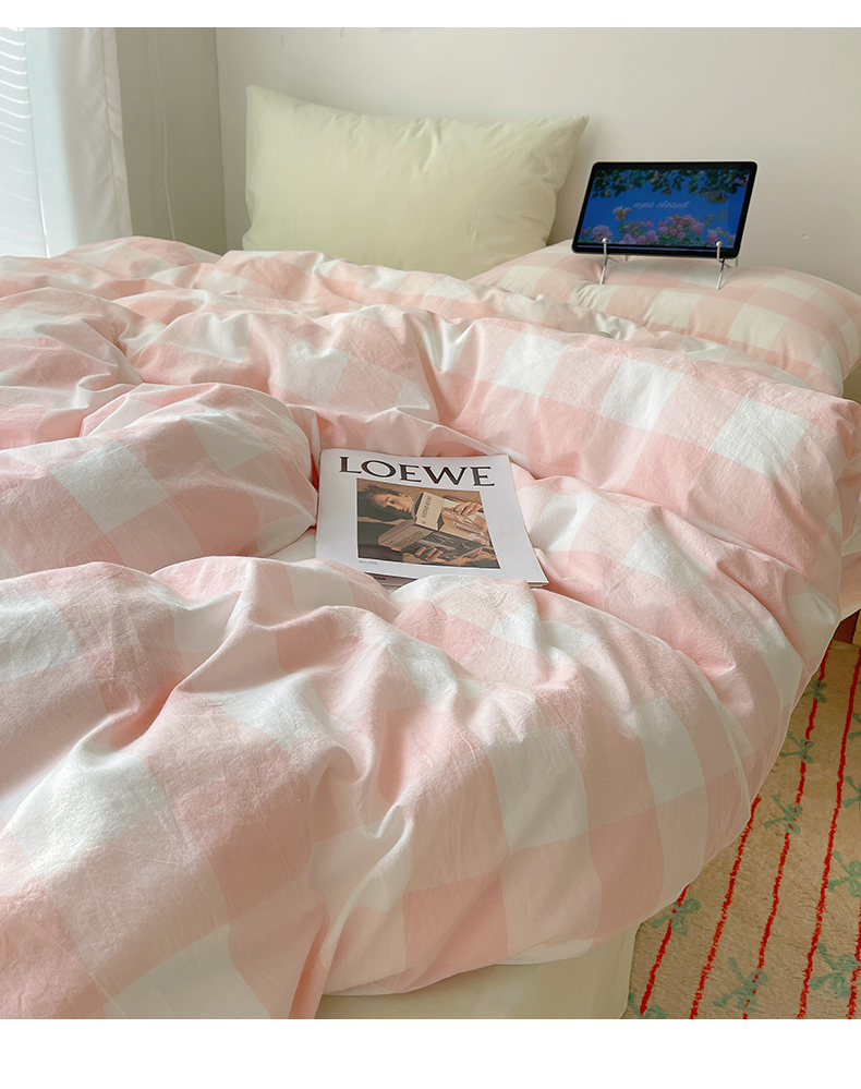 (总)繁花家居 2025新款超软少女手札系列学生季三件套四件套,少女-粉格+海盐蓝,少女-黄格+海盐蓝,少女-蓝格+奶油黄,少女-绿格+奶油黄,少女-紫格+奶油黄