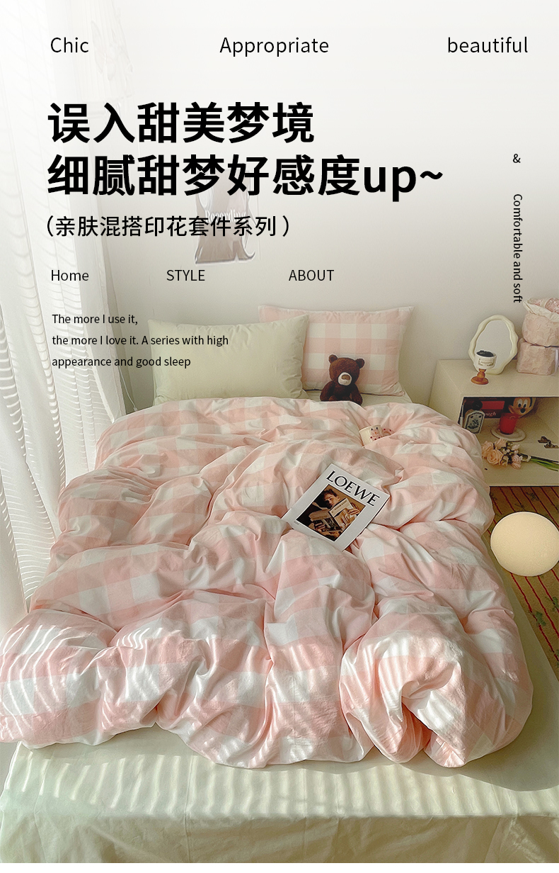 (总)繁花家居 2025软爆高克重水洗棉床单床笠单件 学生季跑量款,彩虹条,粉方格,绿方格,奶盖波波,苹果绿格,紫方格,组合图仅供展示