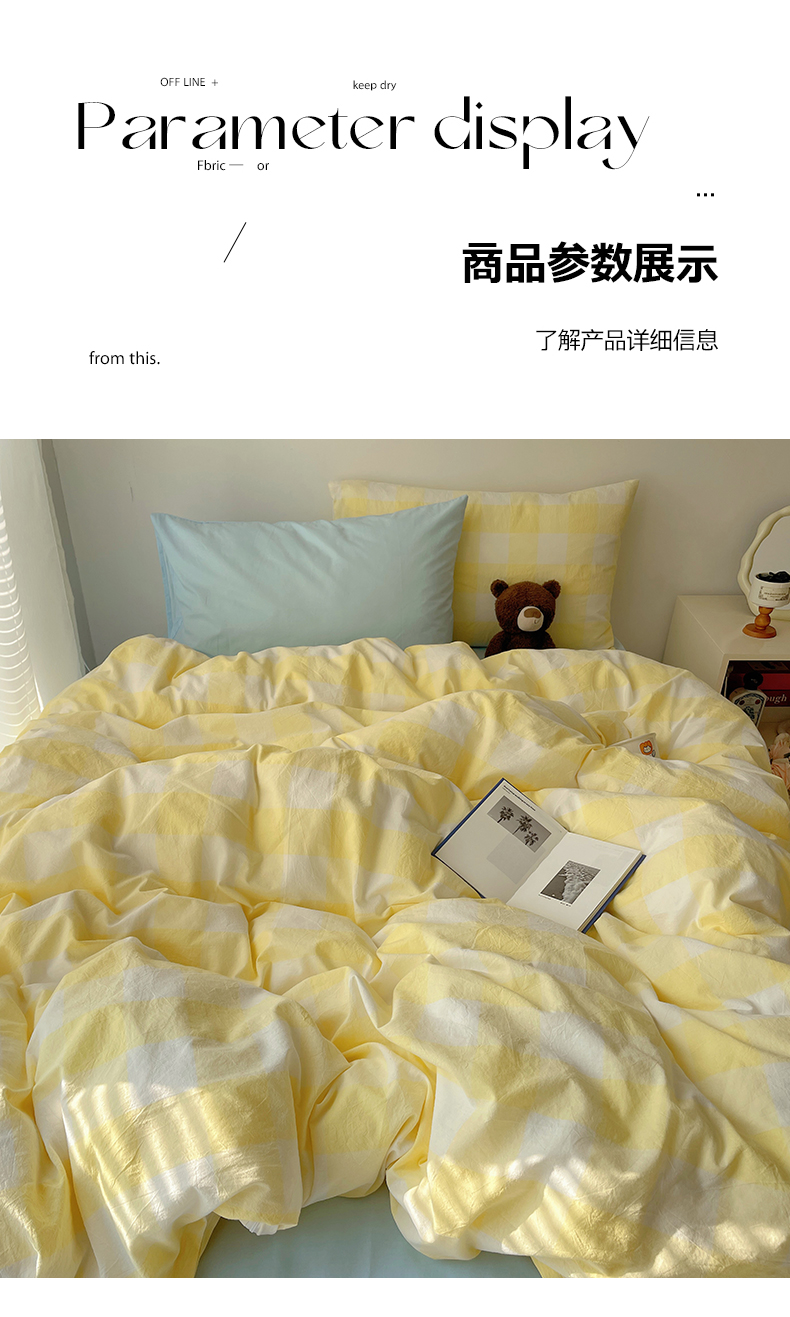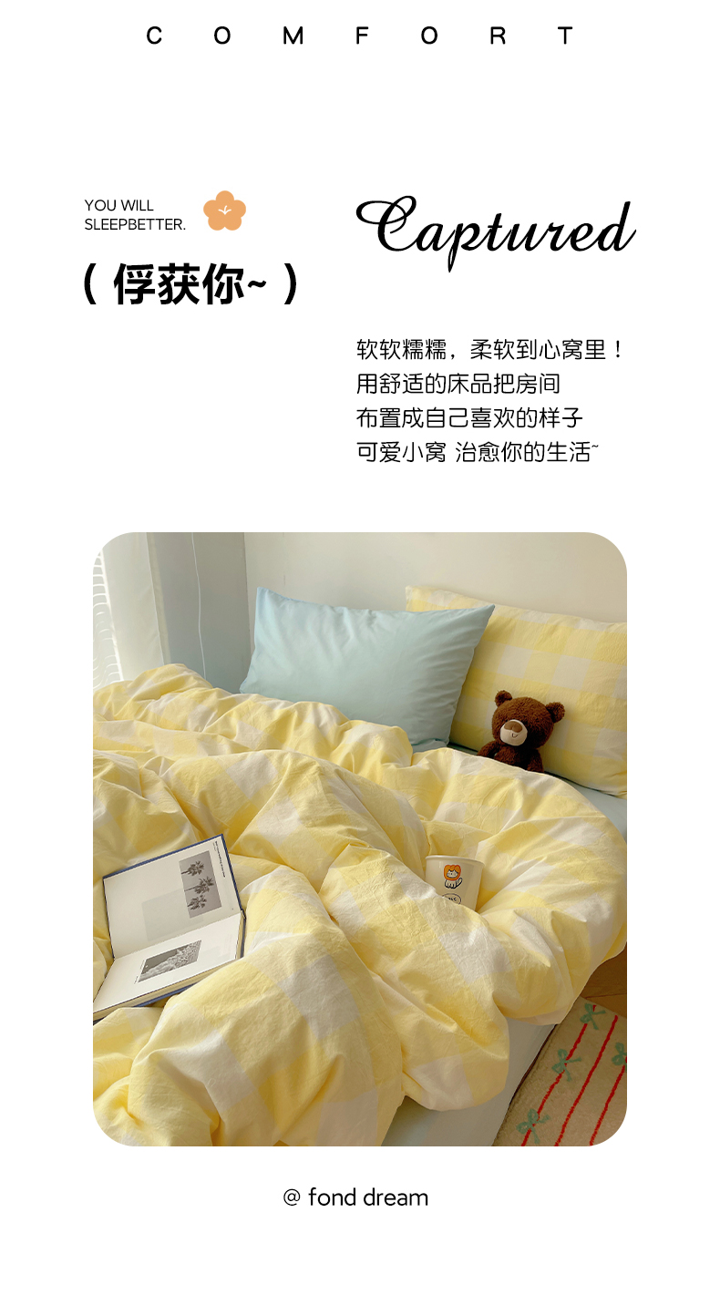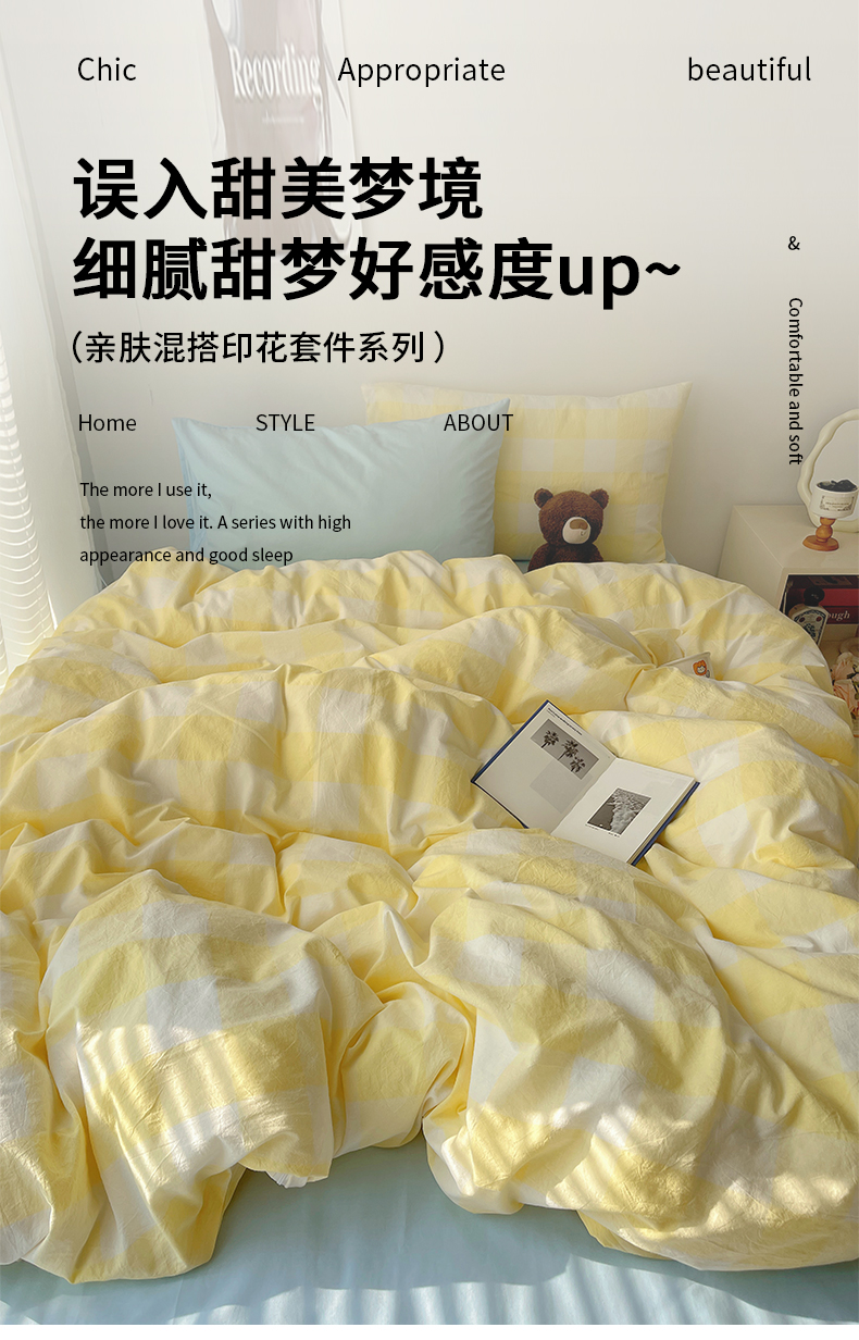 当前位置: 91家纺网 > 商品网购 > 床品套件 > 四件套 > 其它四件套 > 繁花家居 2024新款亲肤混搭印花四件套系列(提供买家秀) 混搭-奶黄方格