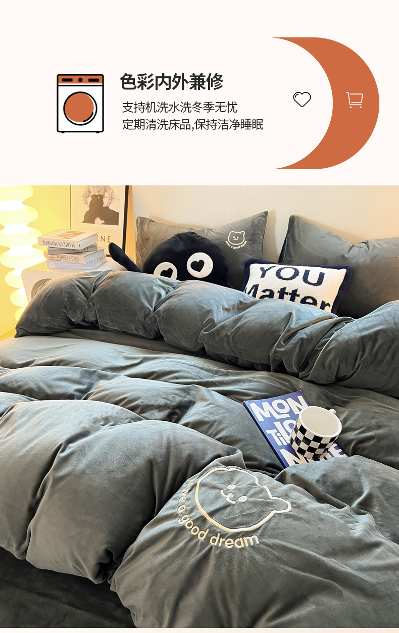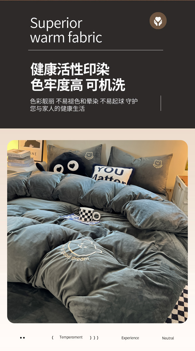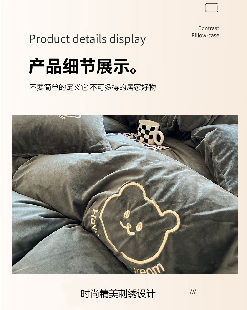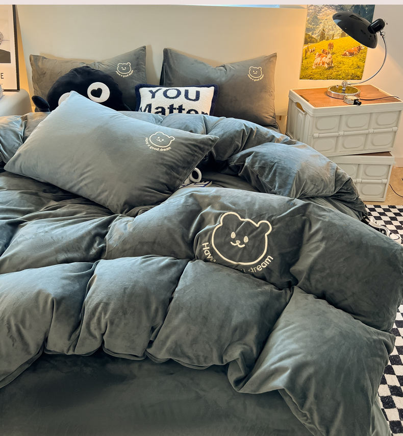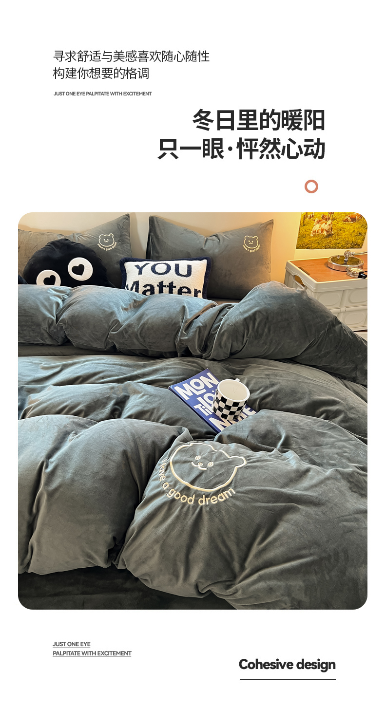 当前位置: 91家纺网 > 商品网购 > 床品套件 > 四件套 > 牛奶绒四件套 > yyds网供 【场景一】短绒小熊刺绣水晶绒四件套轻奢秋冬牛奶绒简约-小熊系列 小熊-深灰
