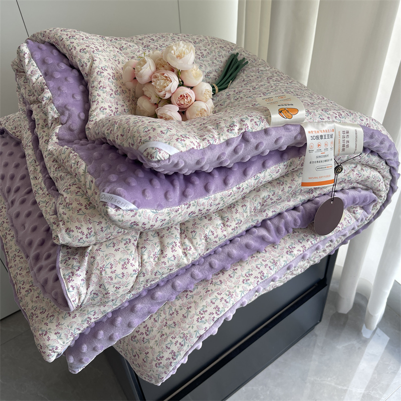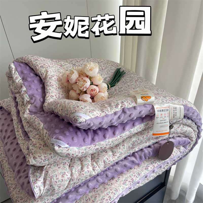 奈萝家纺 2024新款秋冬印花针织棉豆豆绒春秋被冬被 安妮花园