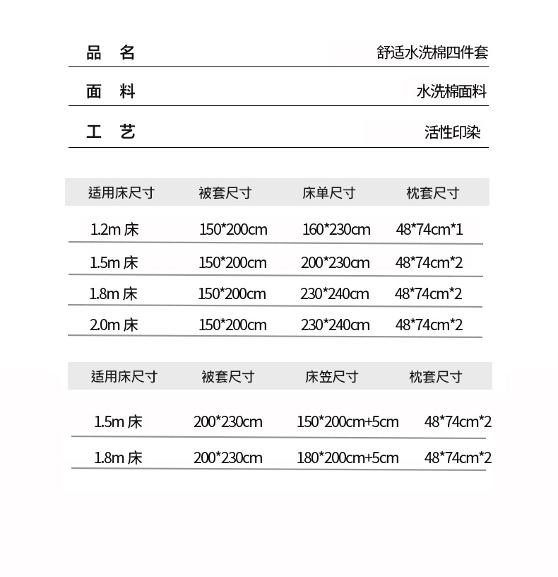 1.5m床笠款四件套(被套180*220cm) | ¥55.00 |
