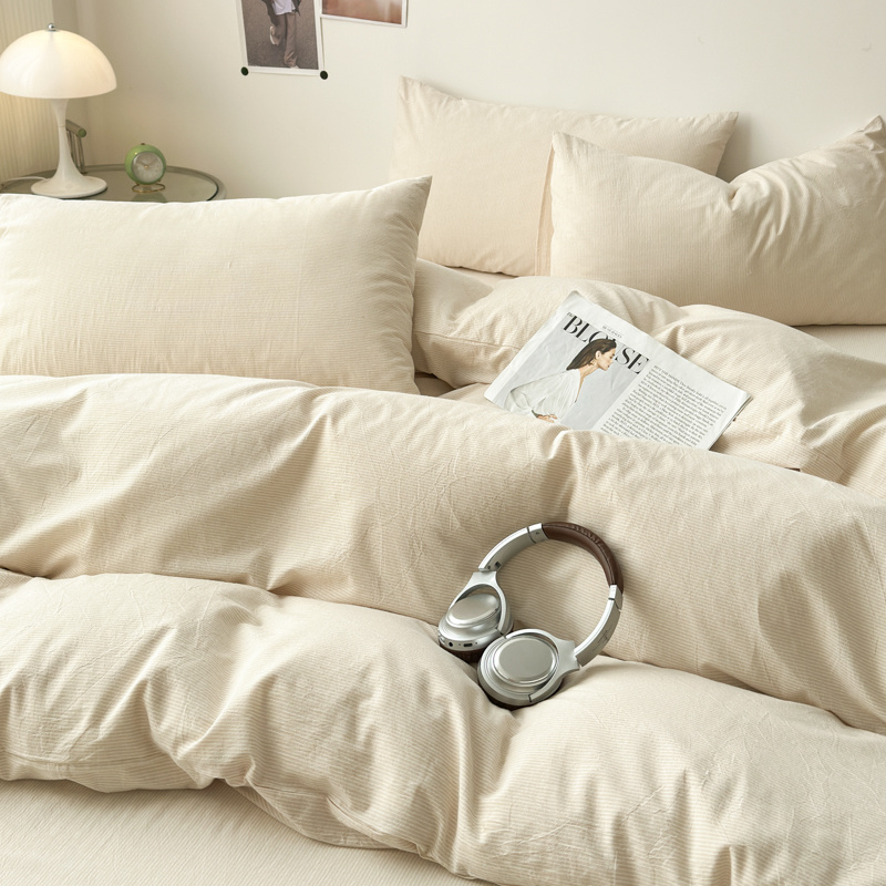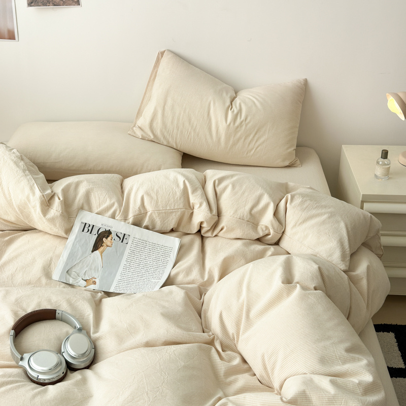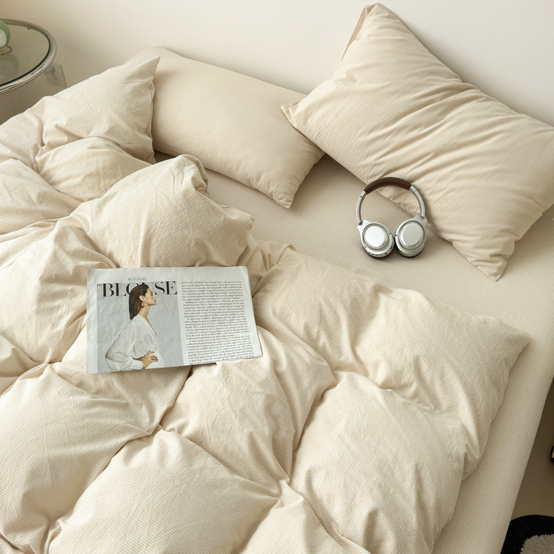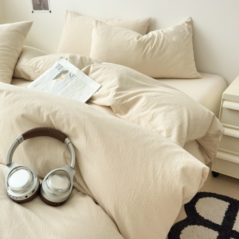 清雅福 2025新款全棉A类水洗棉单枕套 米密条