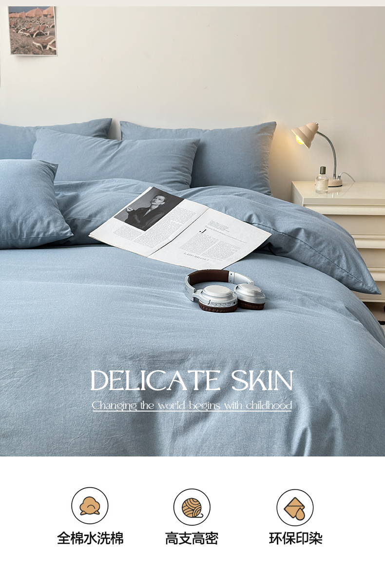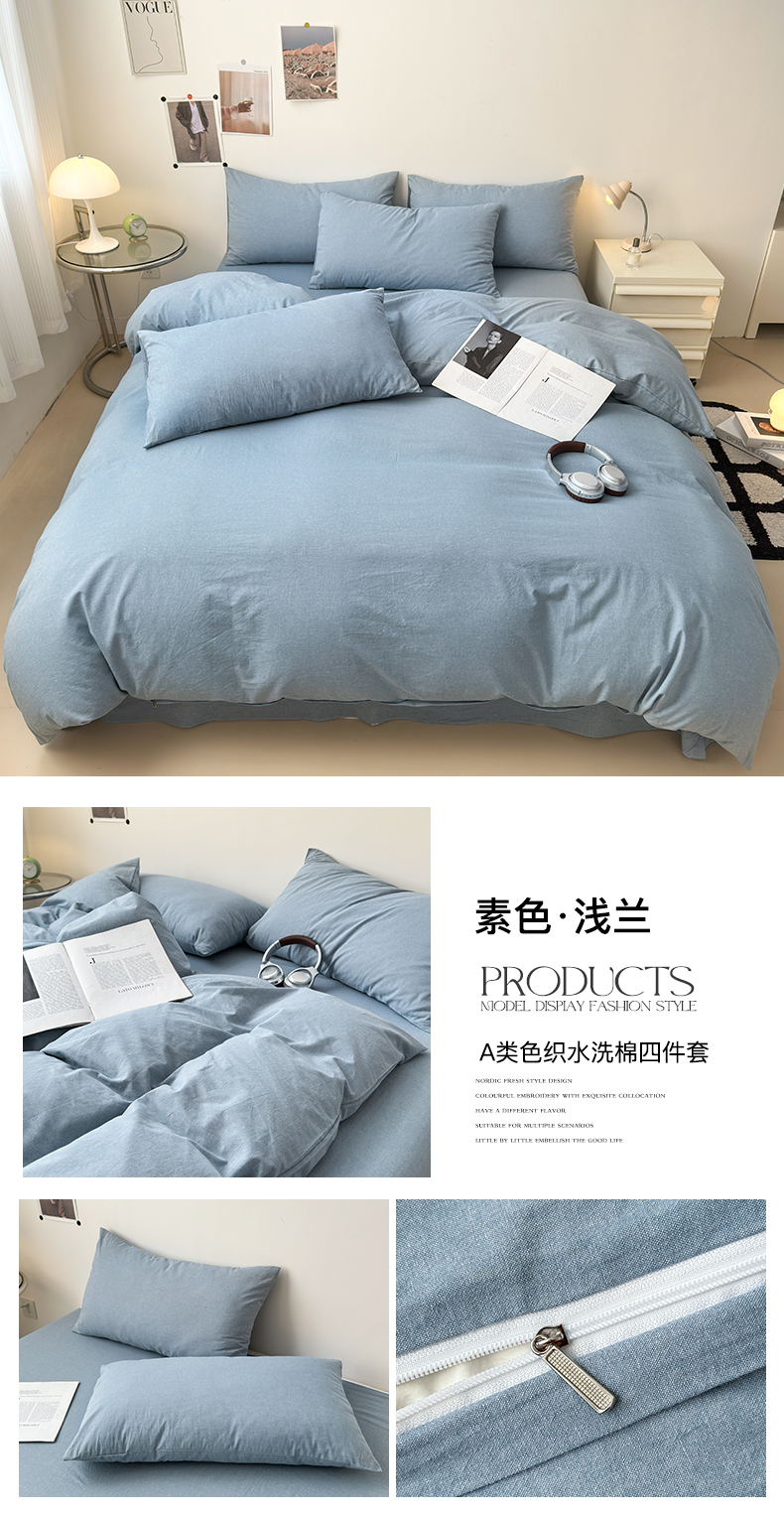 当前位置: 91家纺网 > 商品网购 > 床品套件 > 四件套 > 水洗棉四件套 > 清雅福 2024新款全棉A类水洗棉四件套单被套 素色-浅兰