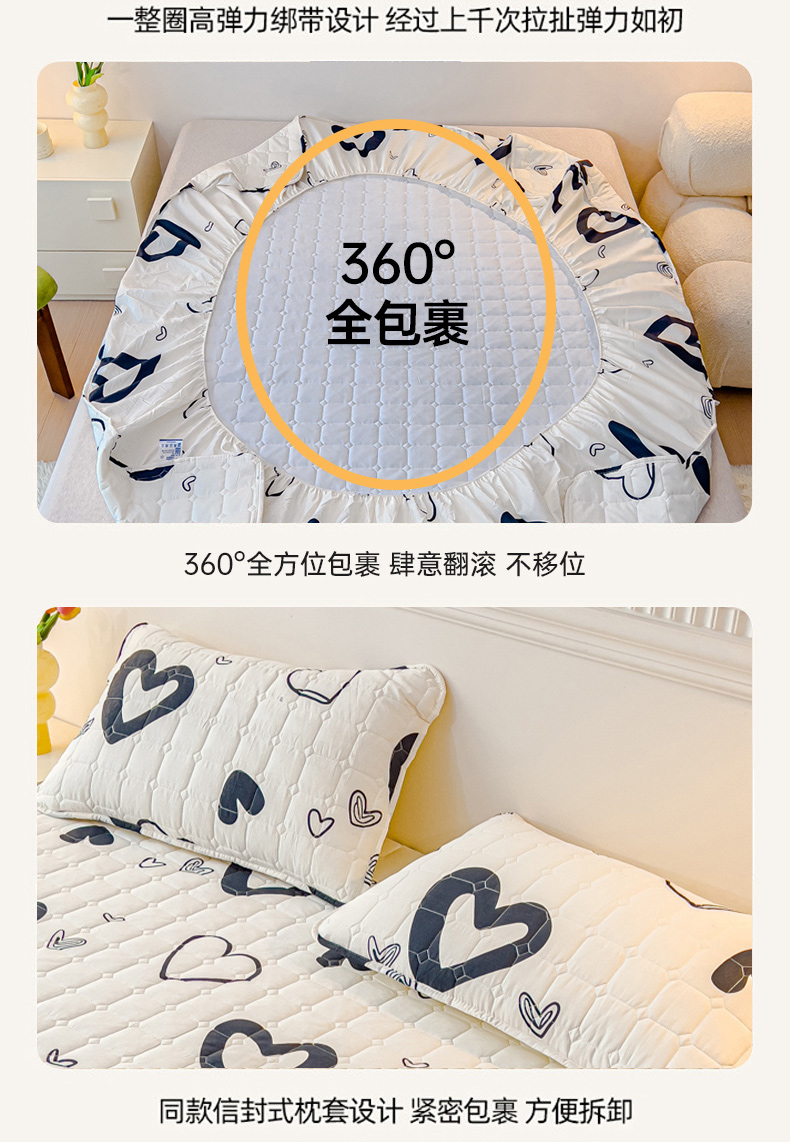 • 91家纺网 家纺一手货源 找家纺 寝居阁 2024新款13372全棉纯棉大豆纤维夹棉床笠 慢调时光
