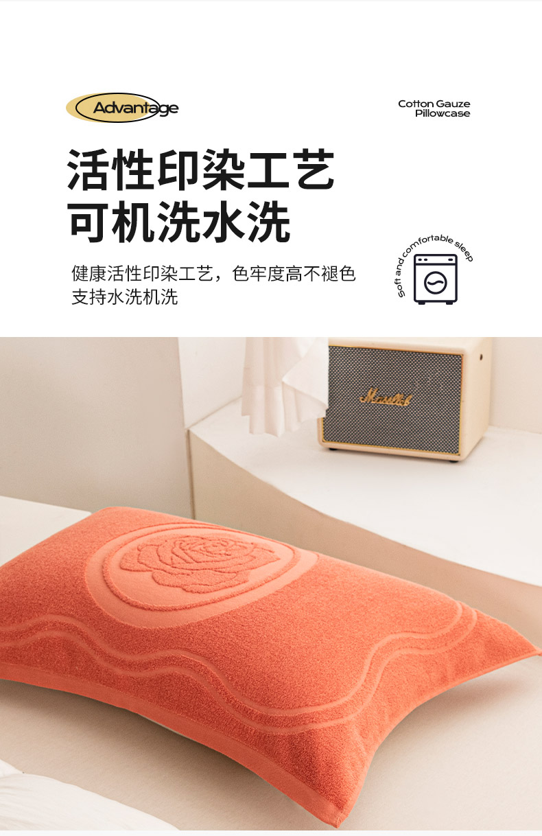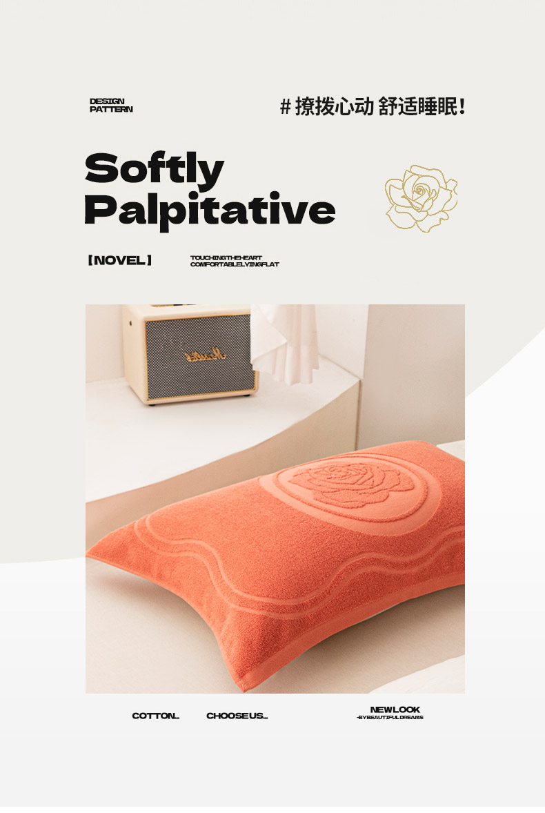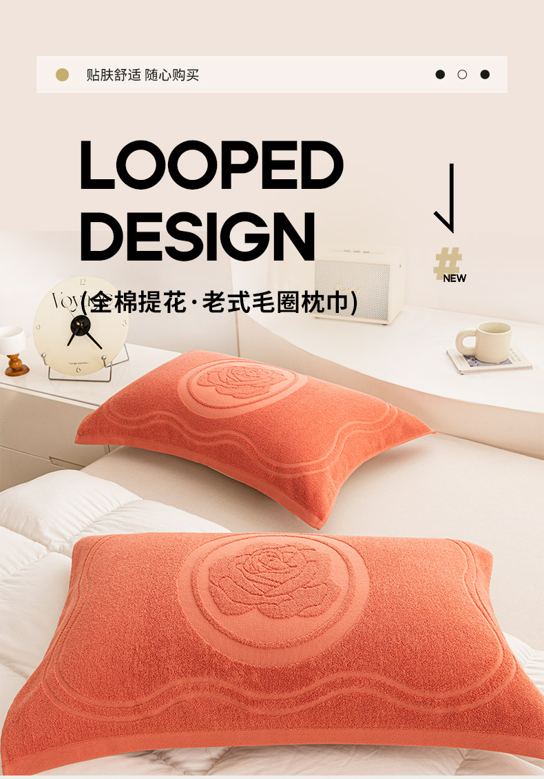 美宜家 2025新款全棉怀旧老式毛巾圈枕巾一对 盛开桔