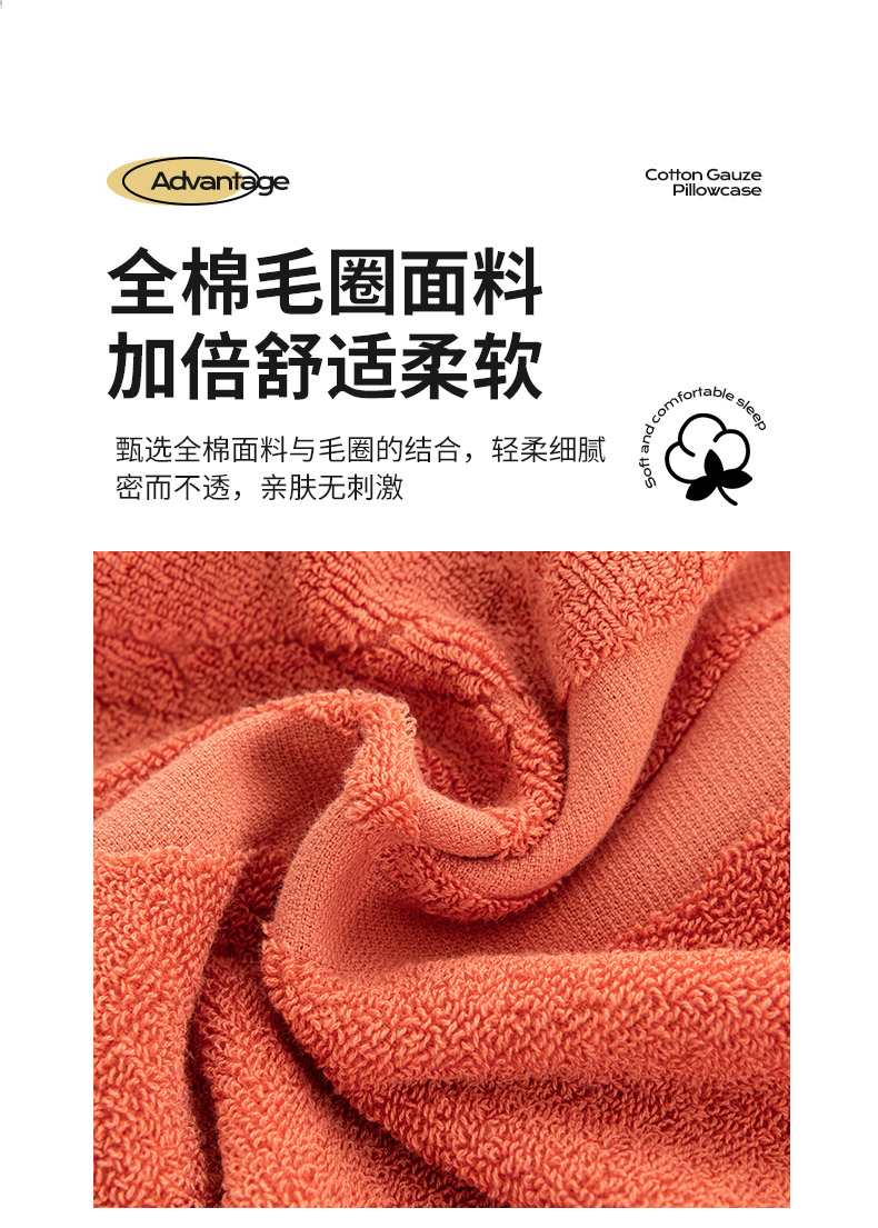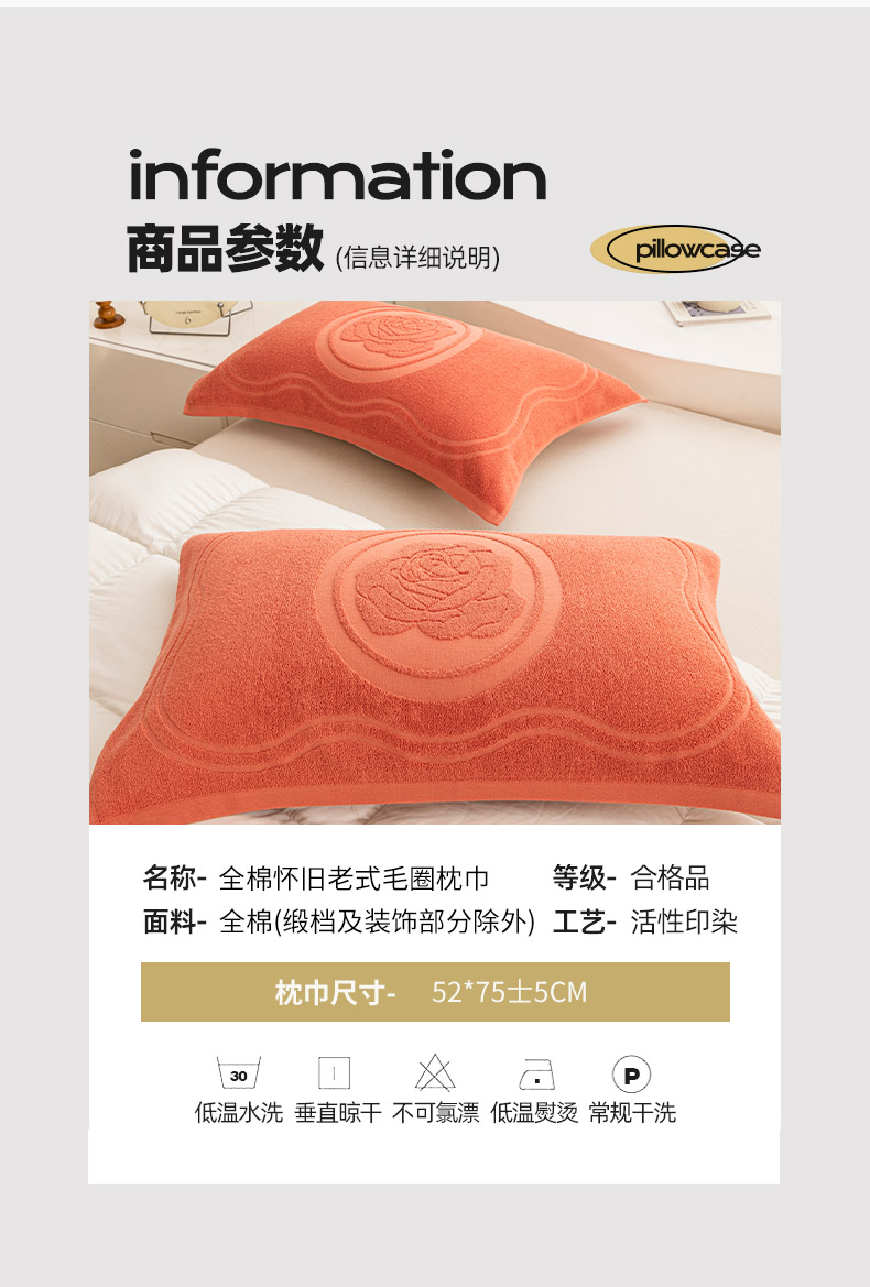 商品名称:美宜家 2025新款全棉怀旧老式毛巾圈枕巾一对 盛开桔