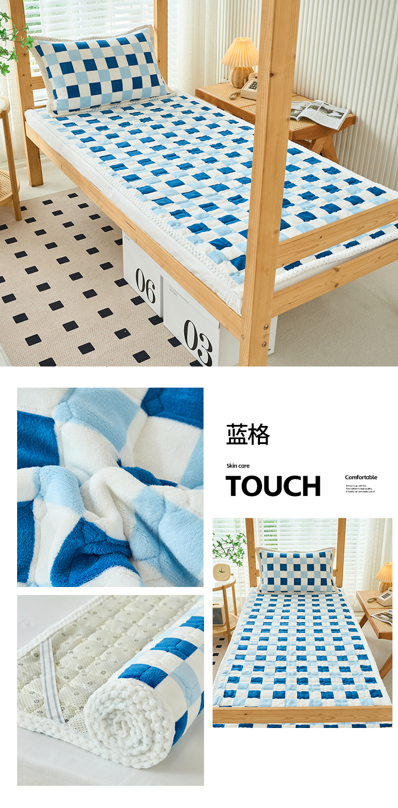 当前位置: 91家纺网 > 商品网购 > 床垫/床褥 > 普通床垫 > A类母婴级学生宿舍上下铺牛奶绒床垫子雪花绒床垫牛奶绒雪花绒床护垫子牛奶绒床褥子 瑞丽-蓝格