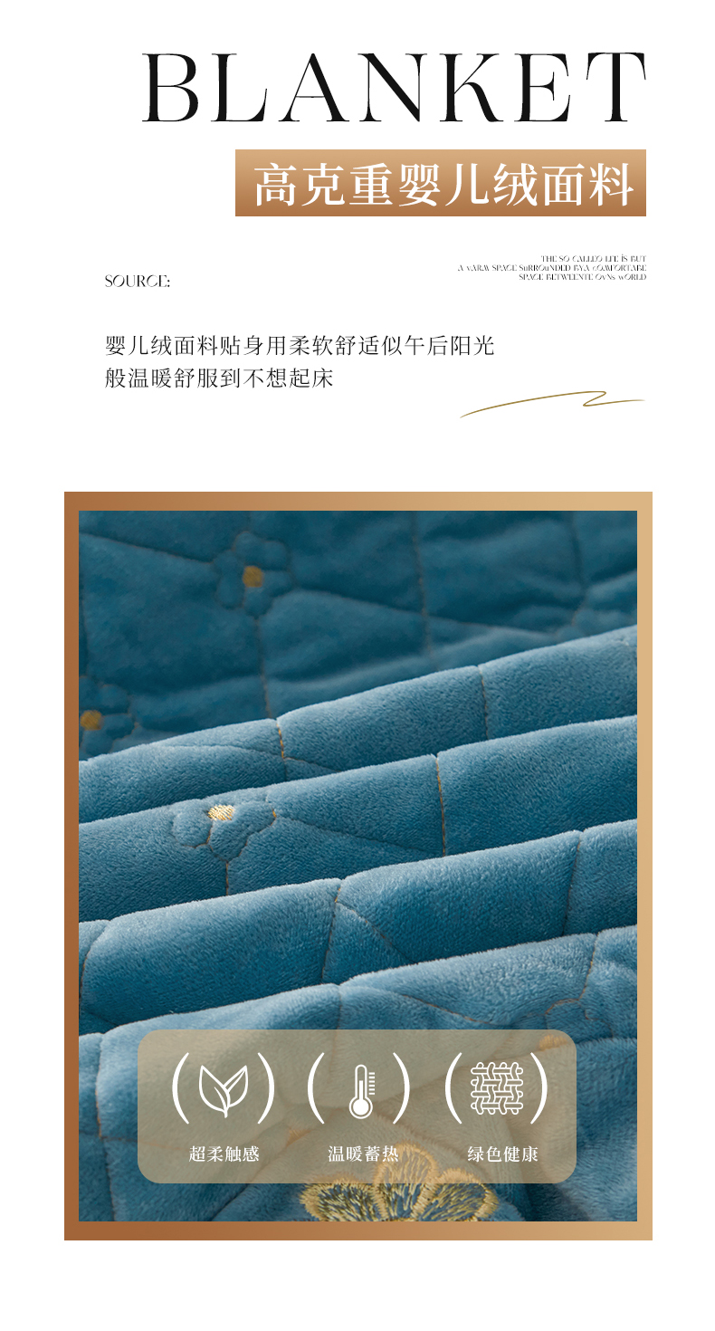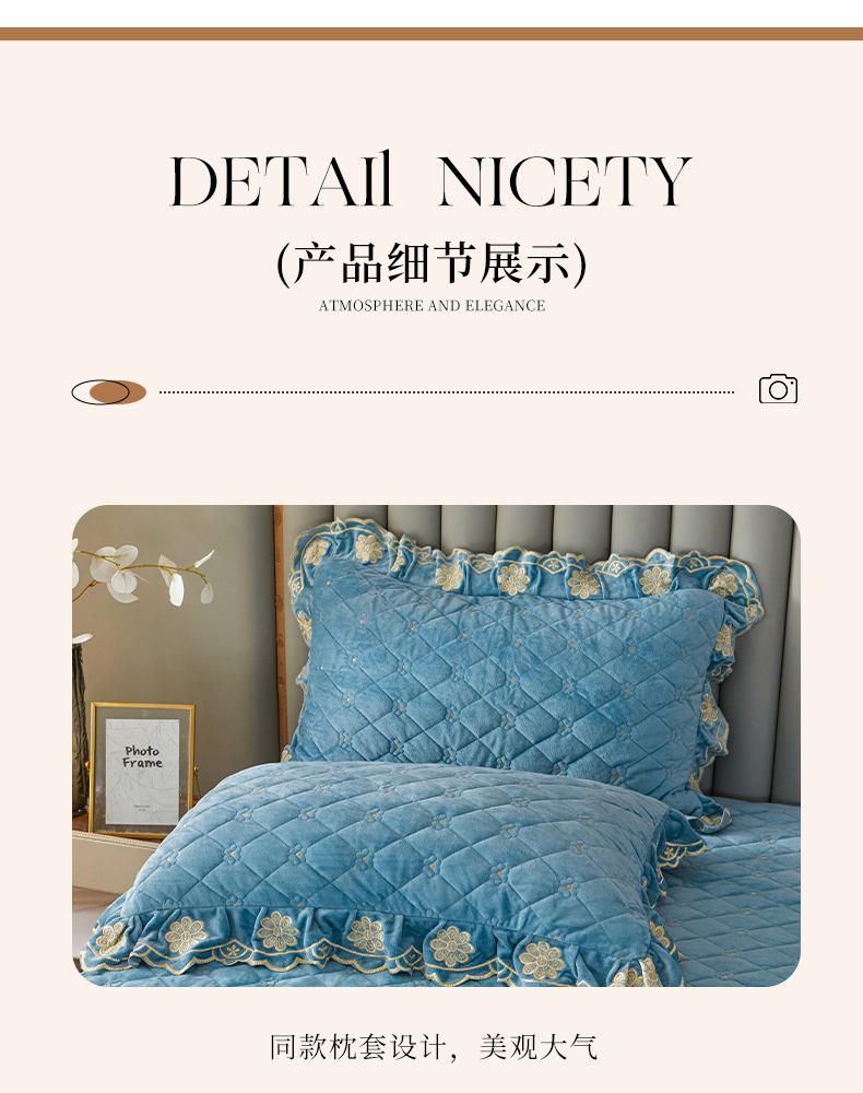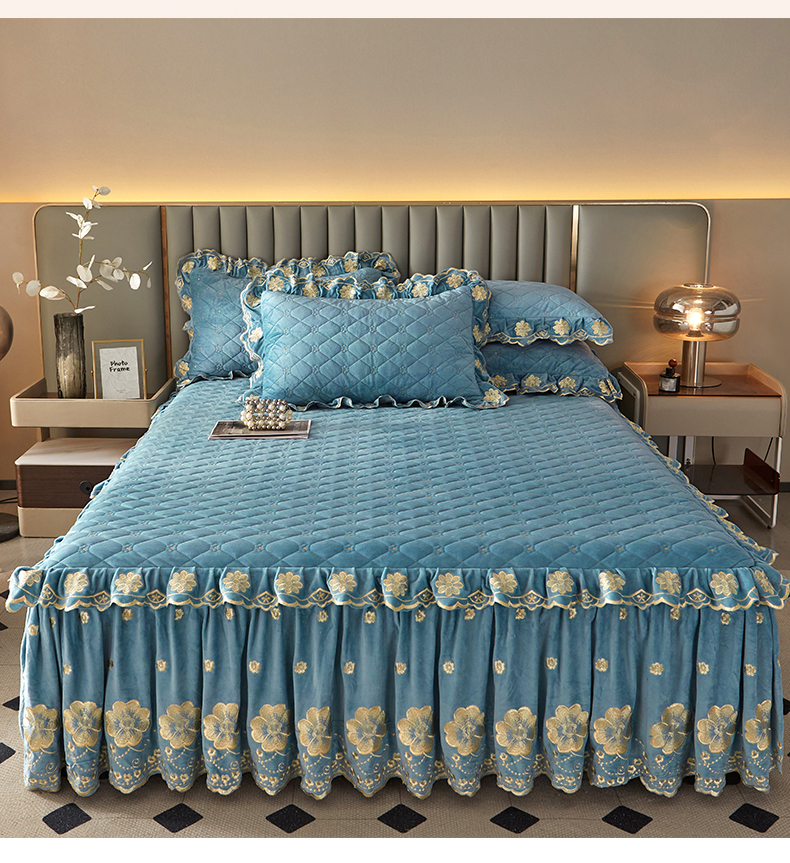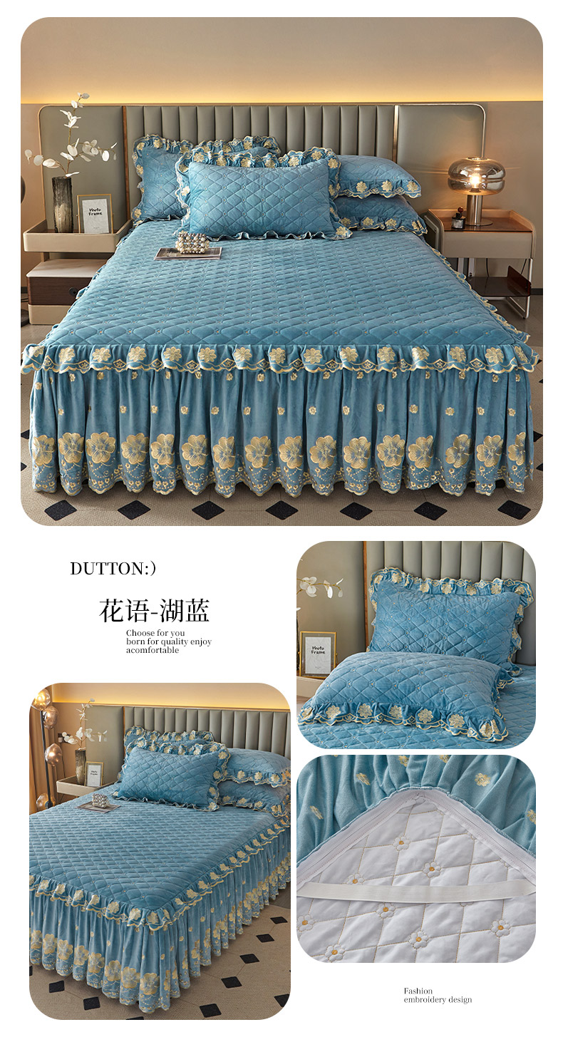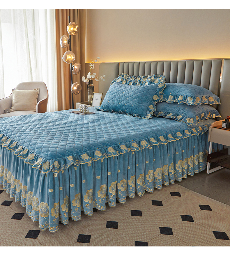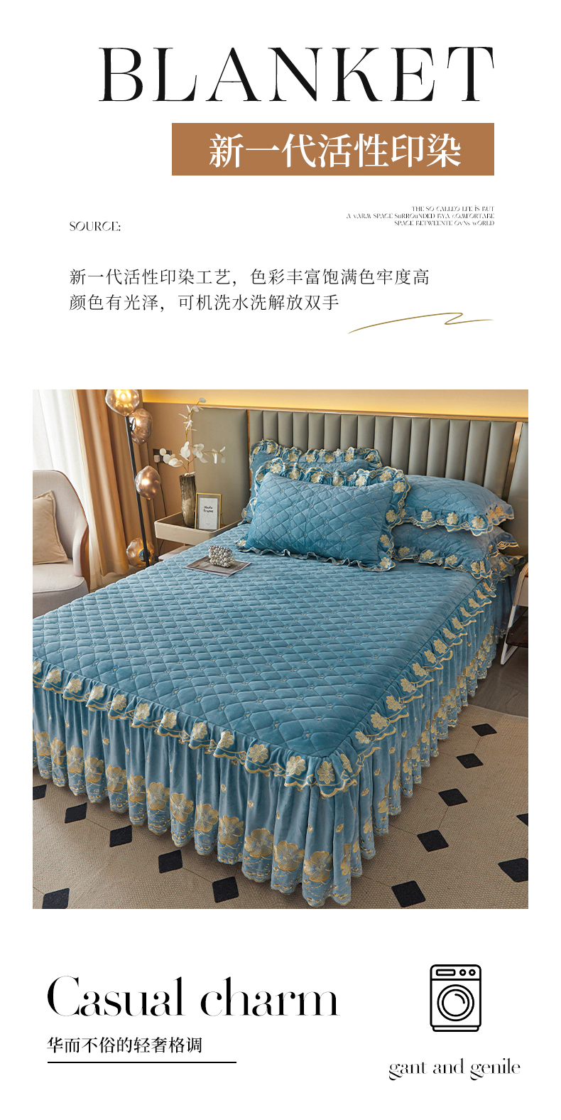 • 91家纺网 家纺一手货源 找家纺 罗艺轩 2025新款婴儿绒双层夹棉可拆卸床裙-花语 花语-湖蓝