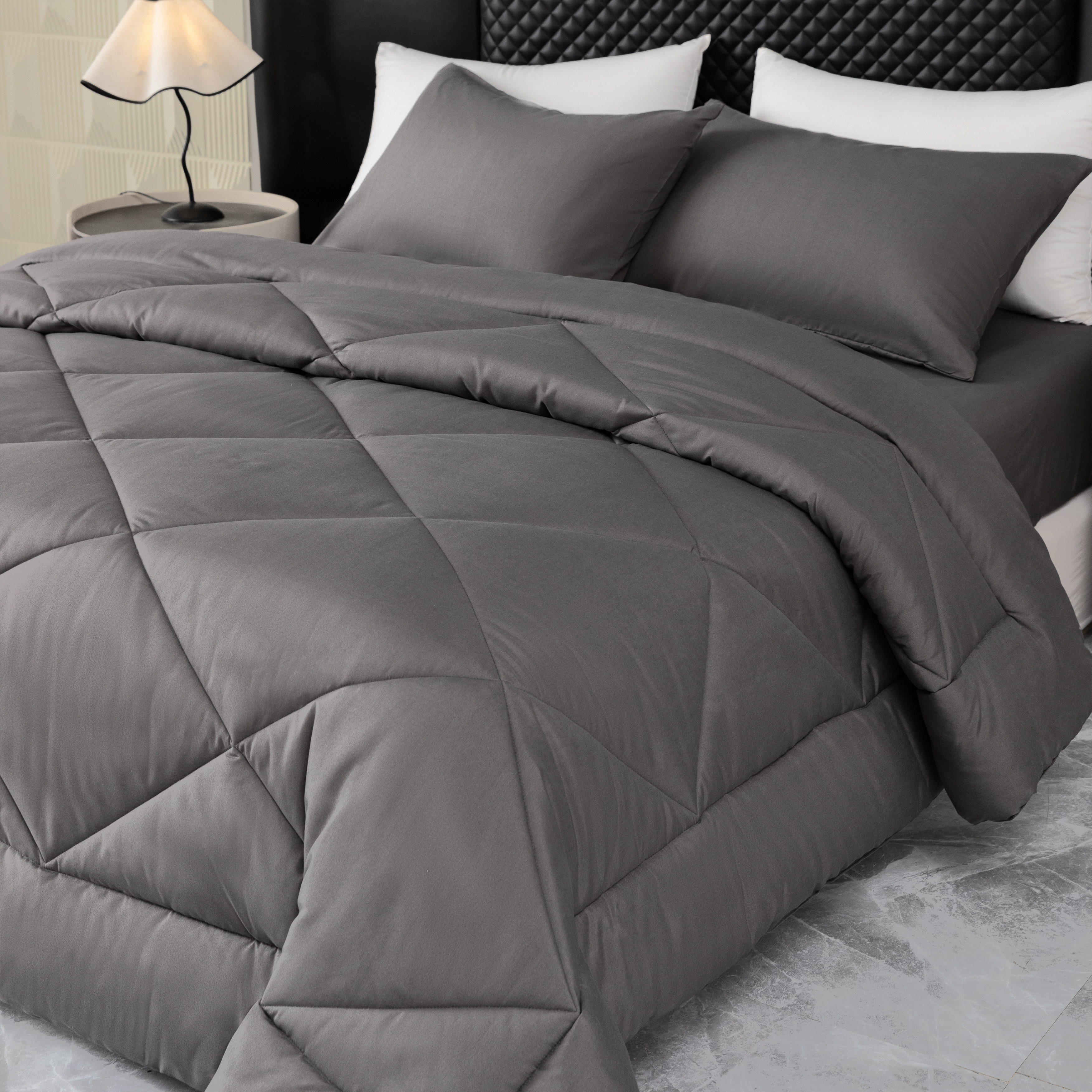 (总)2025新款美国跨境被芯四季被子三件套,藏青,粉色,黑色,灰色,米色