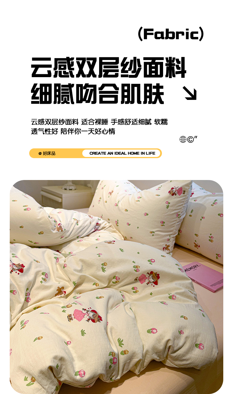 当前位置: 91家纺网 > 商品网购 > 床品套件 > 四件套 > 其它四件套 > 奈颜 2025新款爆款云感提花双层纱裸睡四件套 小红帽