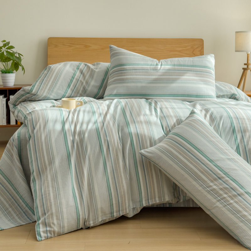 当前位置: 91家纺网 > 商品网购 > 床品套件 > 四件套 > 水洗棉四件套 > 2025新款简约款色织水洗棉四件套 沐妍绿