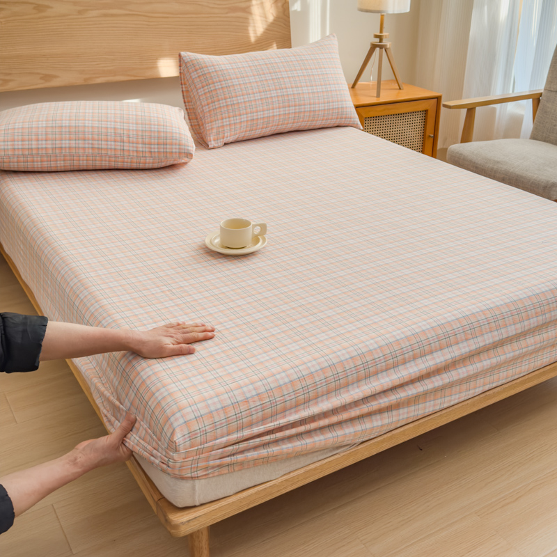 2025新款简约款色织水洗棉单品床笠 昭华粉