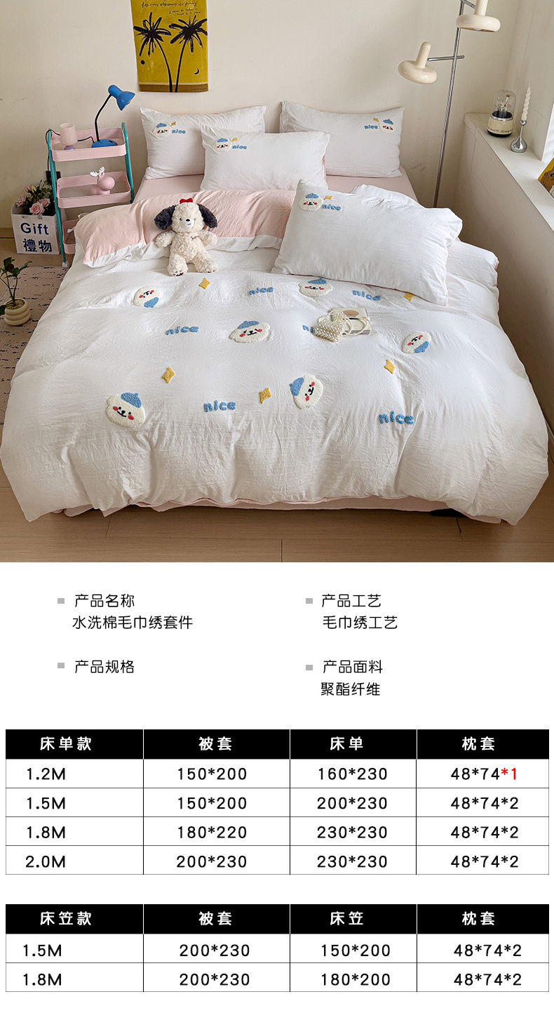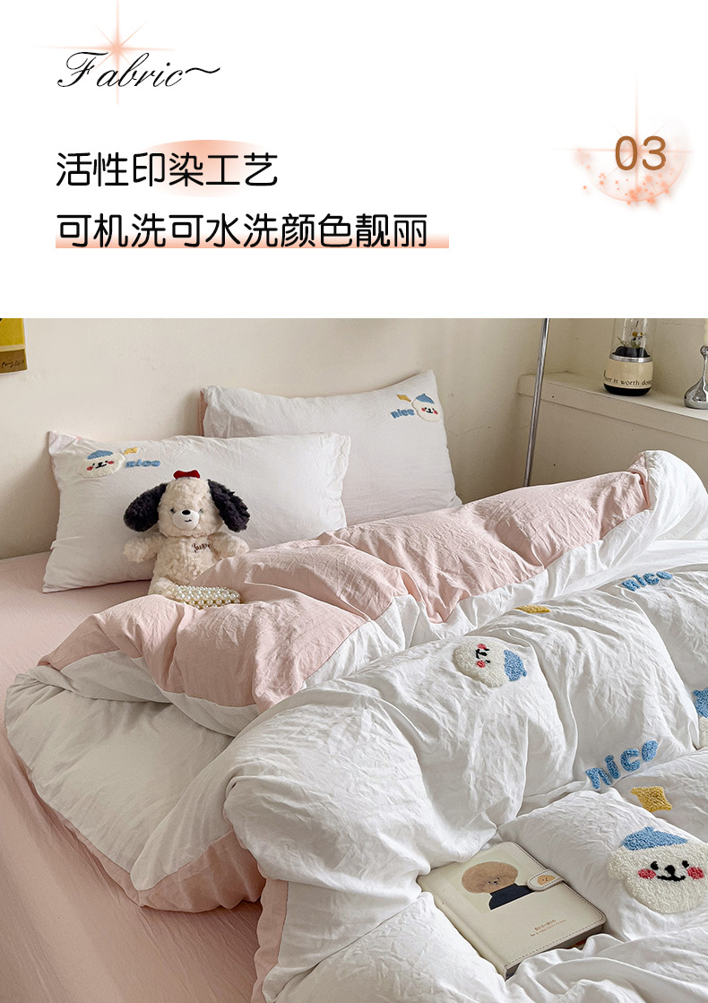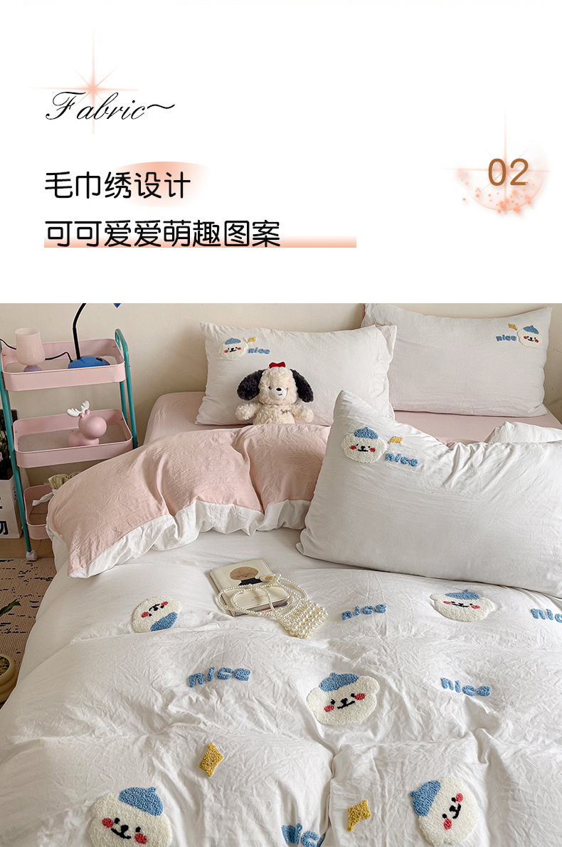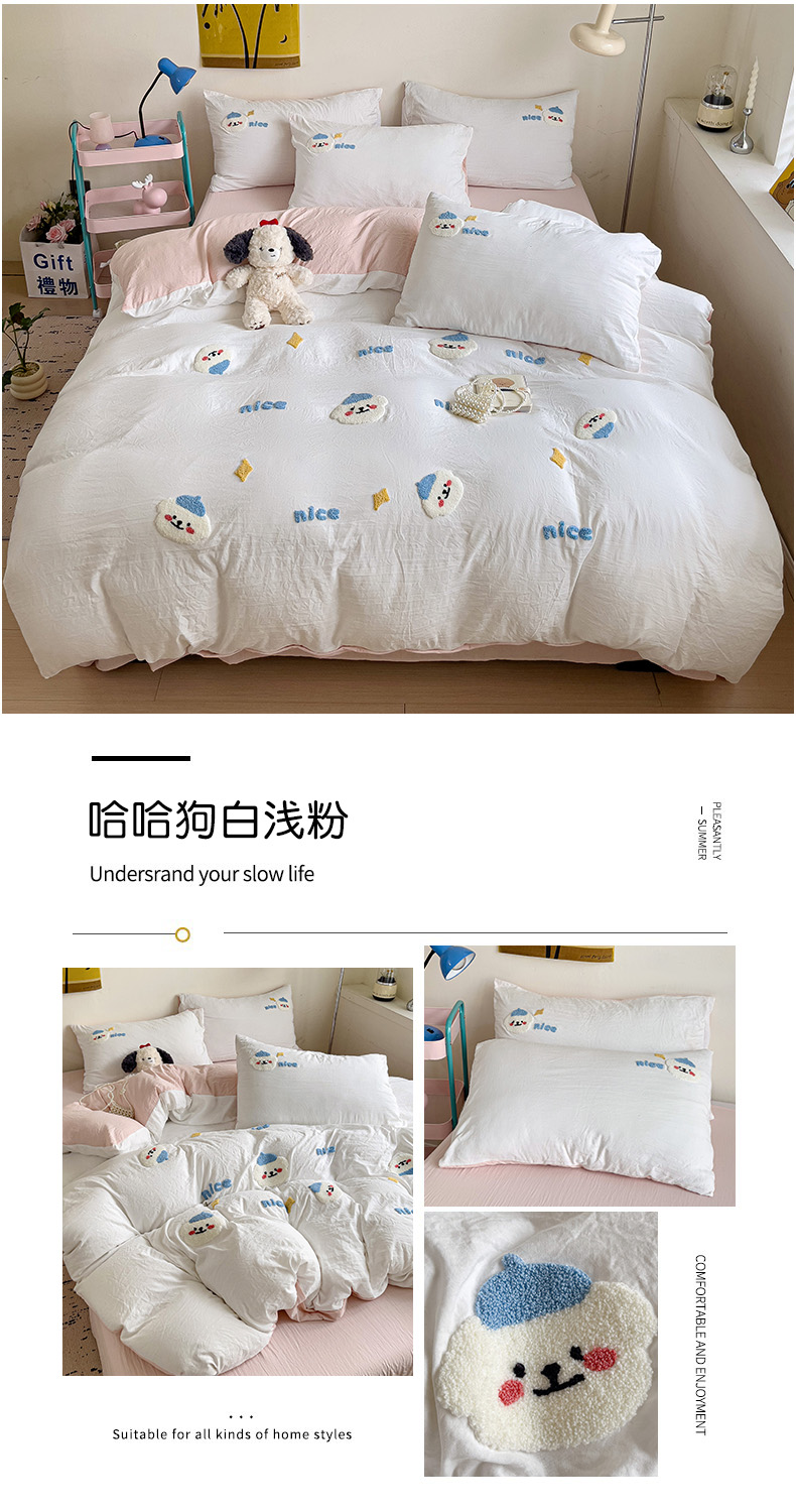 当前位置: 91家纺网 > 商品网购 > 床品套件 > 四件套 > 水洗棉四件套 > 韩巢家纺 2025款超柔水洗棉毛巾绣床上用品四件套-哈哈狗系列二(提供卖家秀 ) 哈哈狗白浅粉