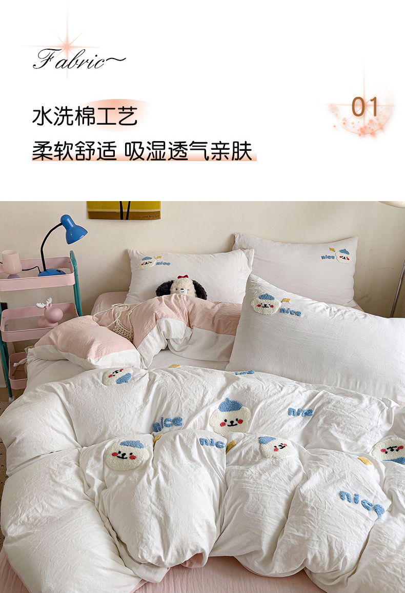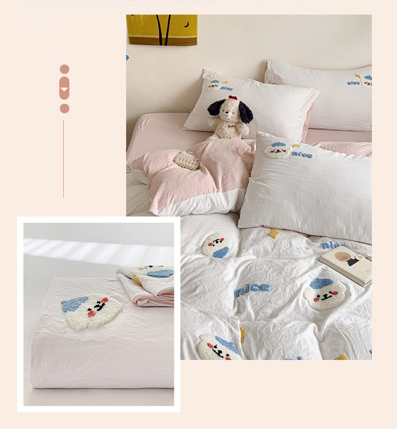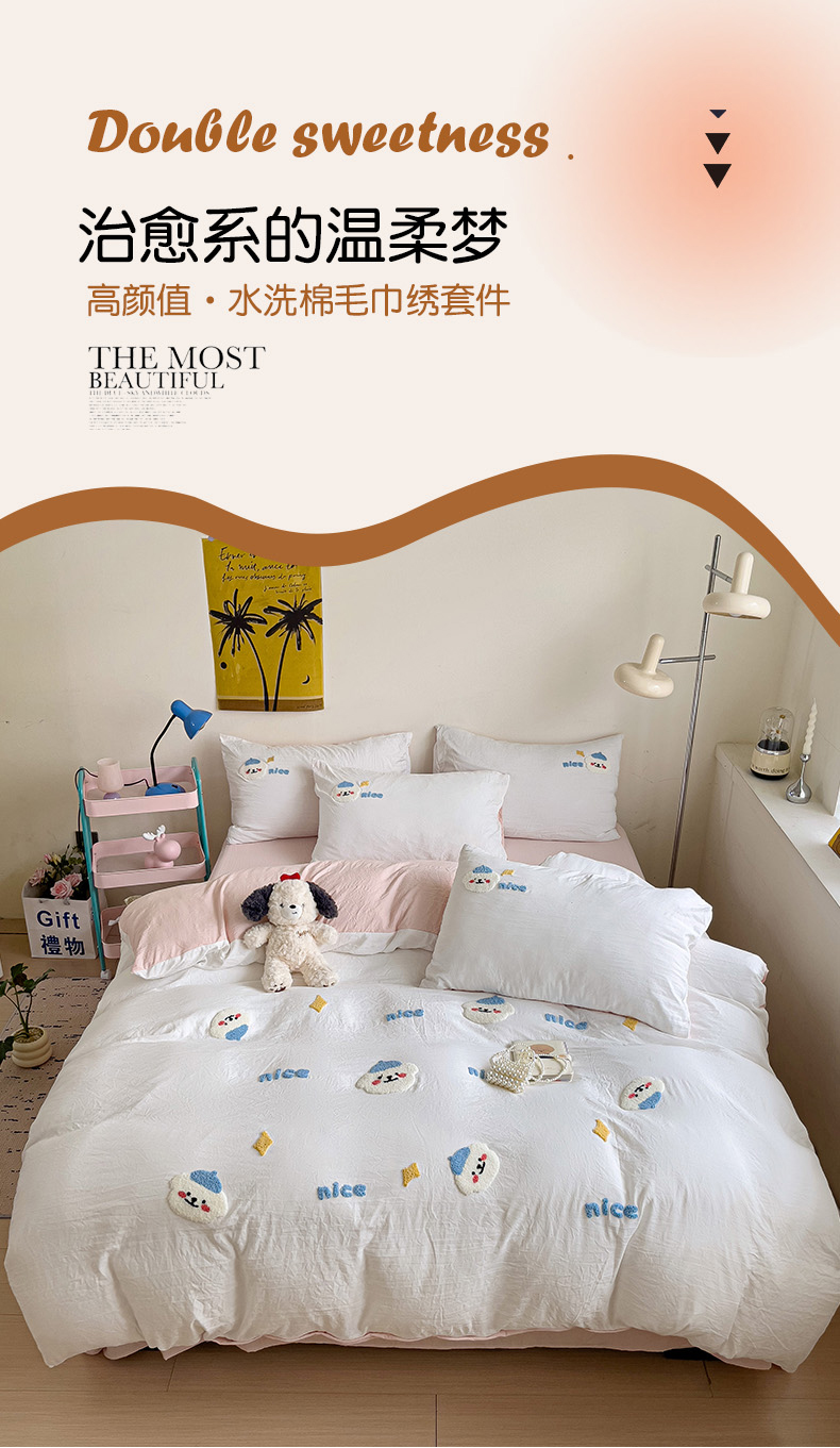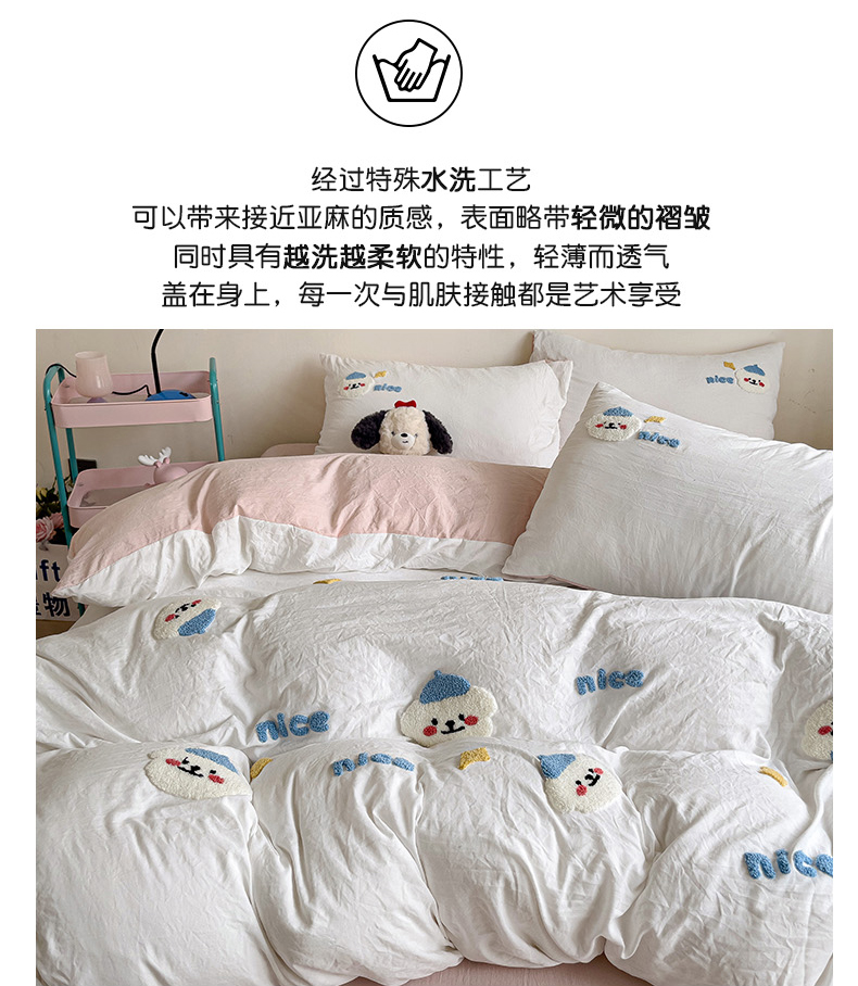 当前位置: 91家纺网 > 商品网购 > 床品套件 > 四件套 > 水洗棉四件套 > 韩巢家纺 2025款超柔水洗棉毛巾绣床上用品四件套-哈哈狗系列二(提供卖家秀 ) 哈哈狗白浅粉