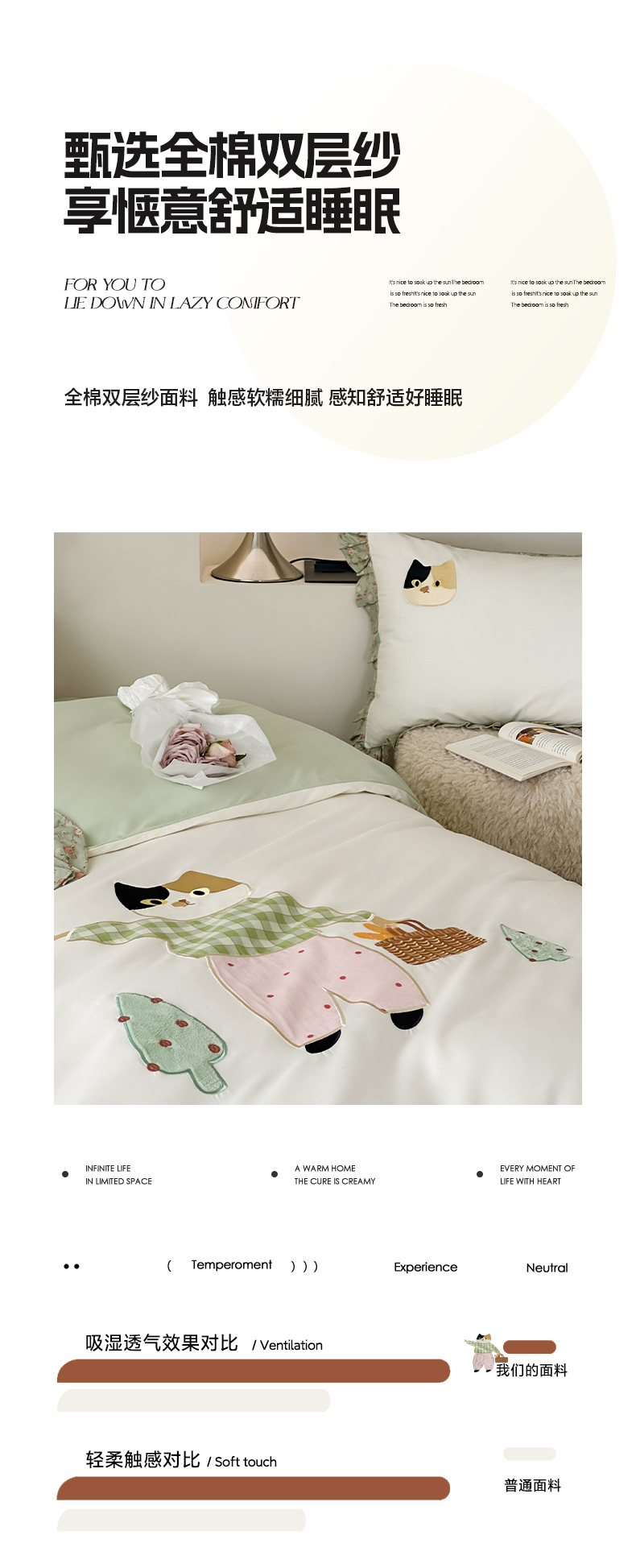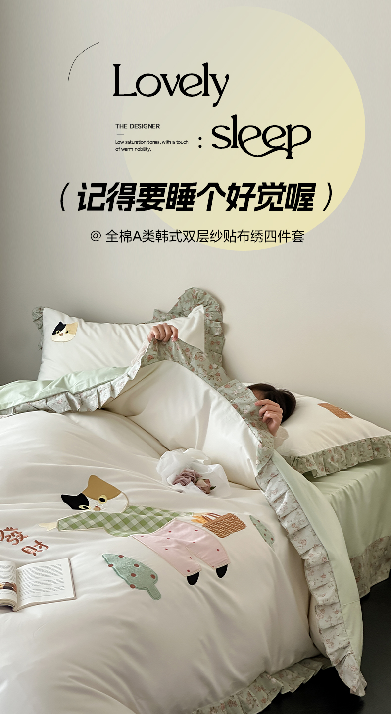 卡巴伦家纺 2025新款全棉A类韩式双层纱花边款贴布绣四件套【全网控价(折后券后)不低于标准278/小号238元】 招财猫