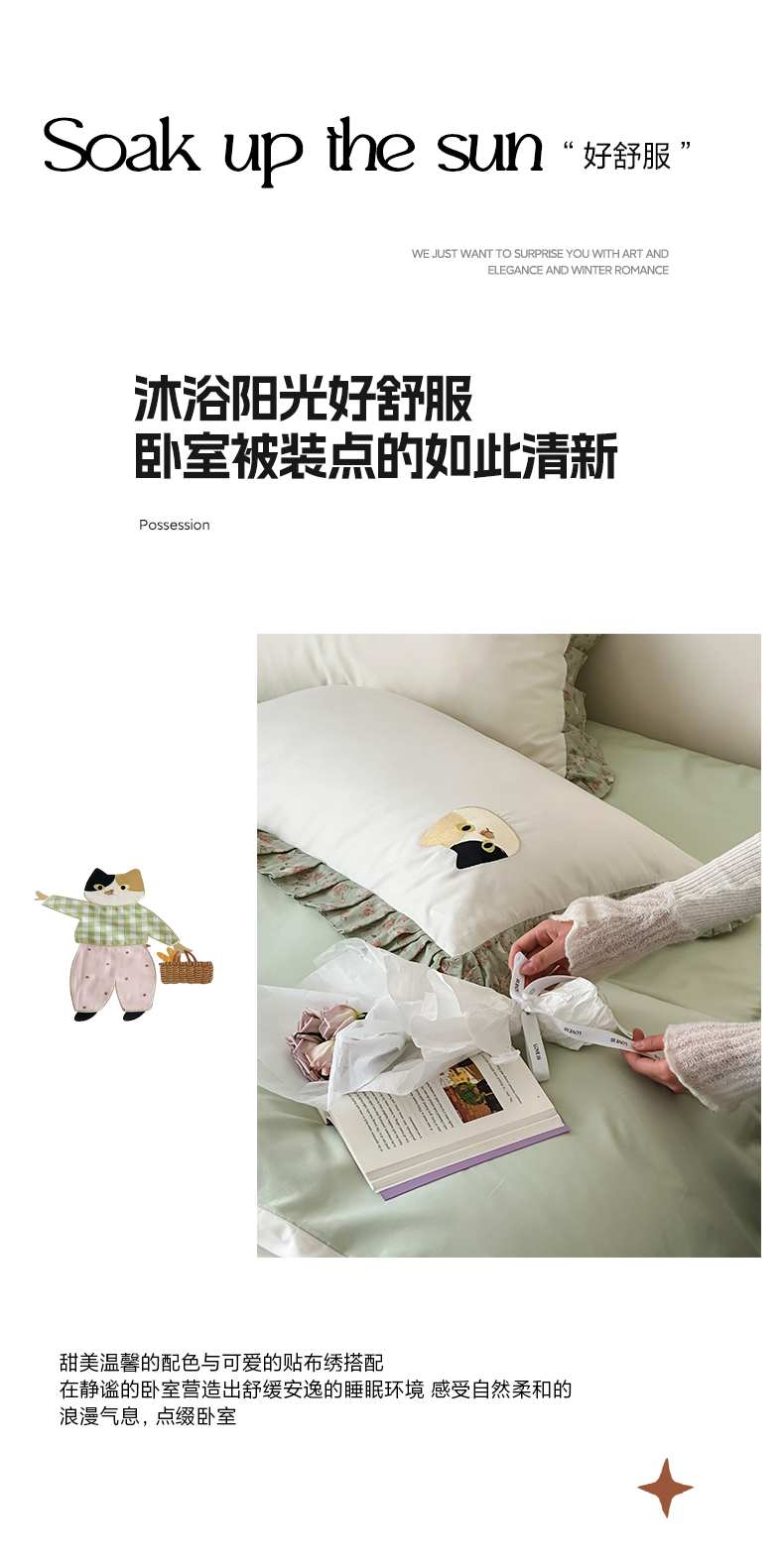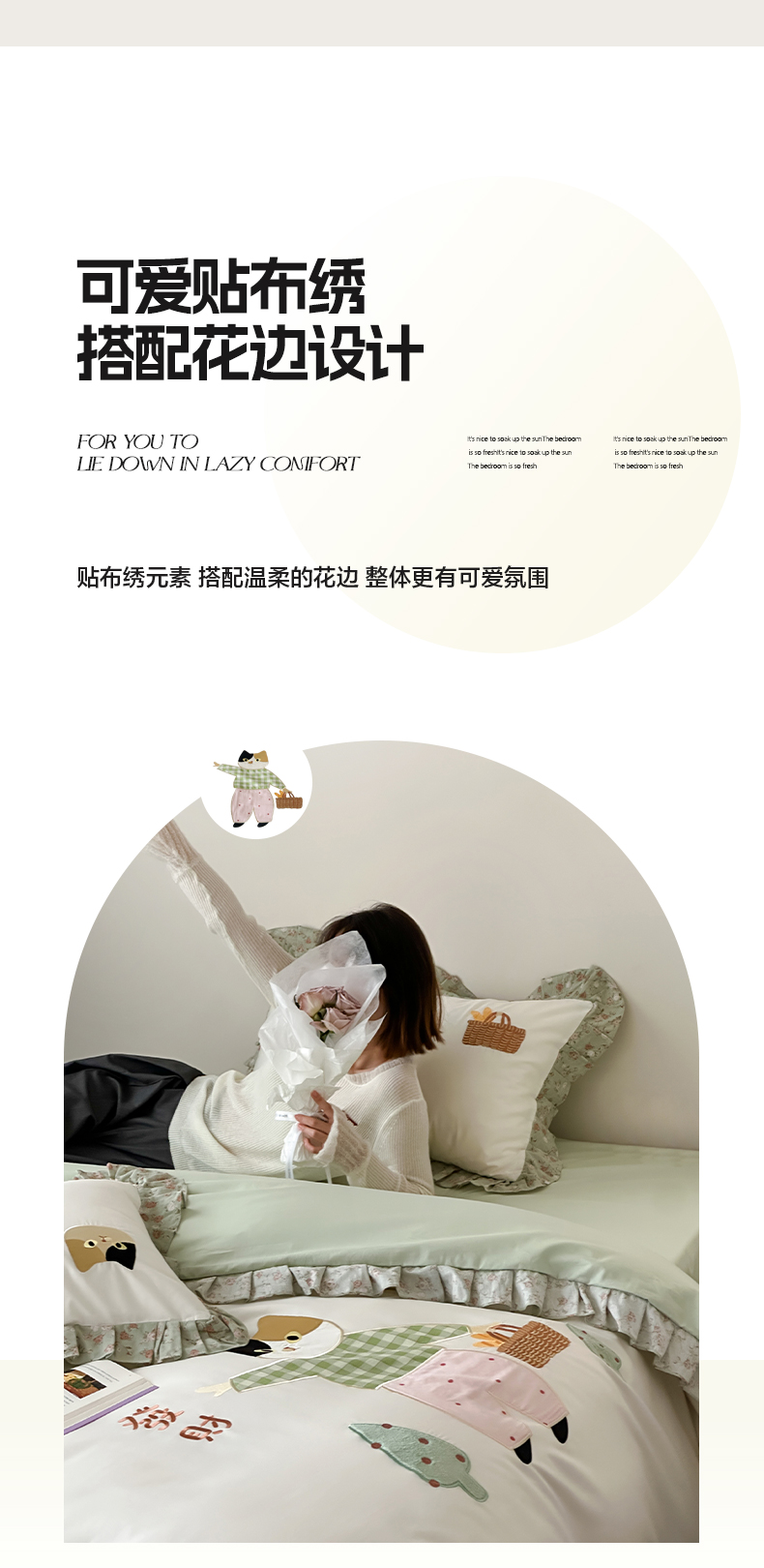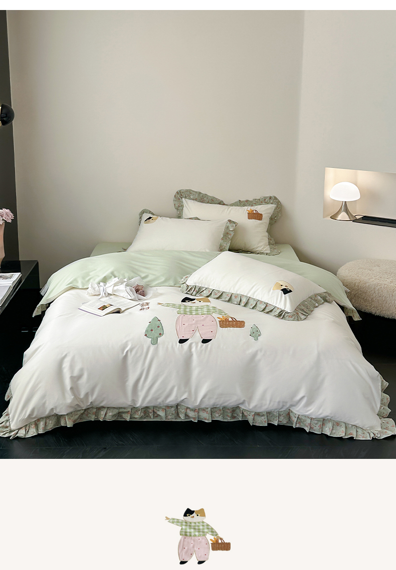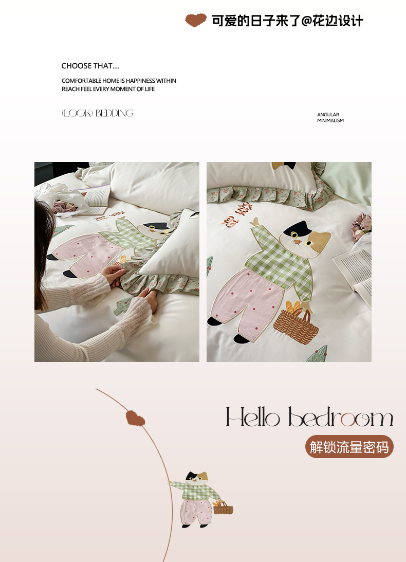 商品名称:卡巴伦家纺 2025新款全棉A类韩式双层纱花边款贴布绣四件套【全网控价(折后券后)不低于标准278/小号238元】 招财猫