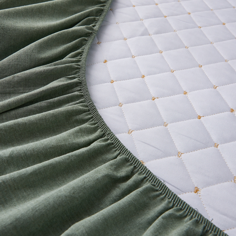 商品名称:寝居阁 2025新款纯棉水洗棉小金豆刺绣床笠 金豆豆-绿色