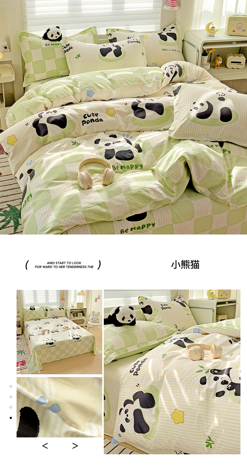 当前位置: 91家纺网 > 商品网购 > 床品套件 > 四件套 > 全棉普通四件套 > 春雨家居 2025新款春夏卡通印花全棉四件套 小熊猫