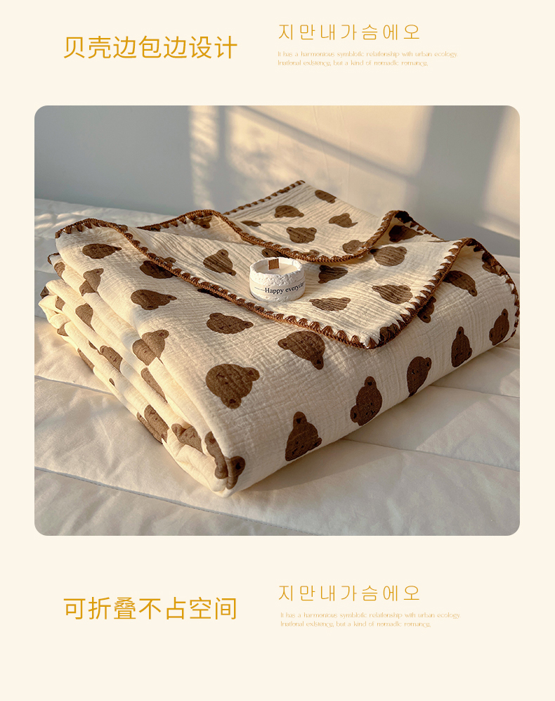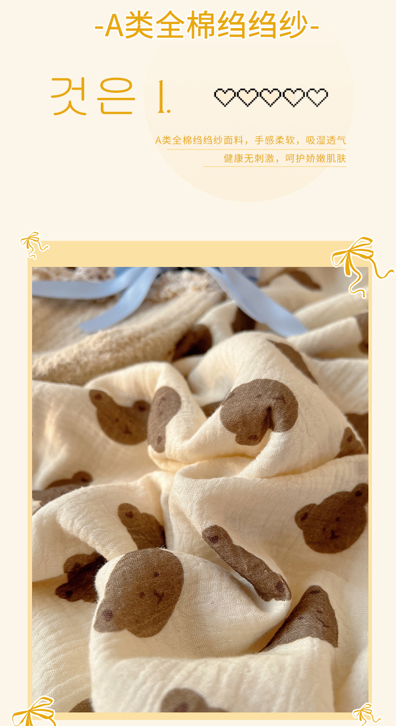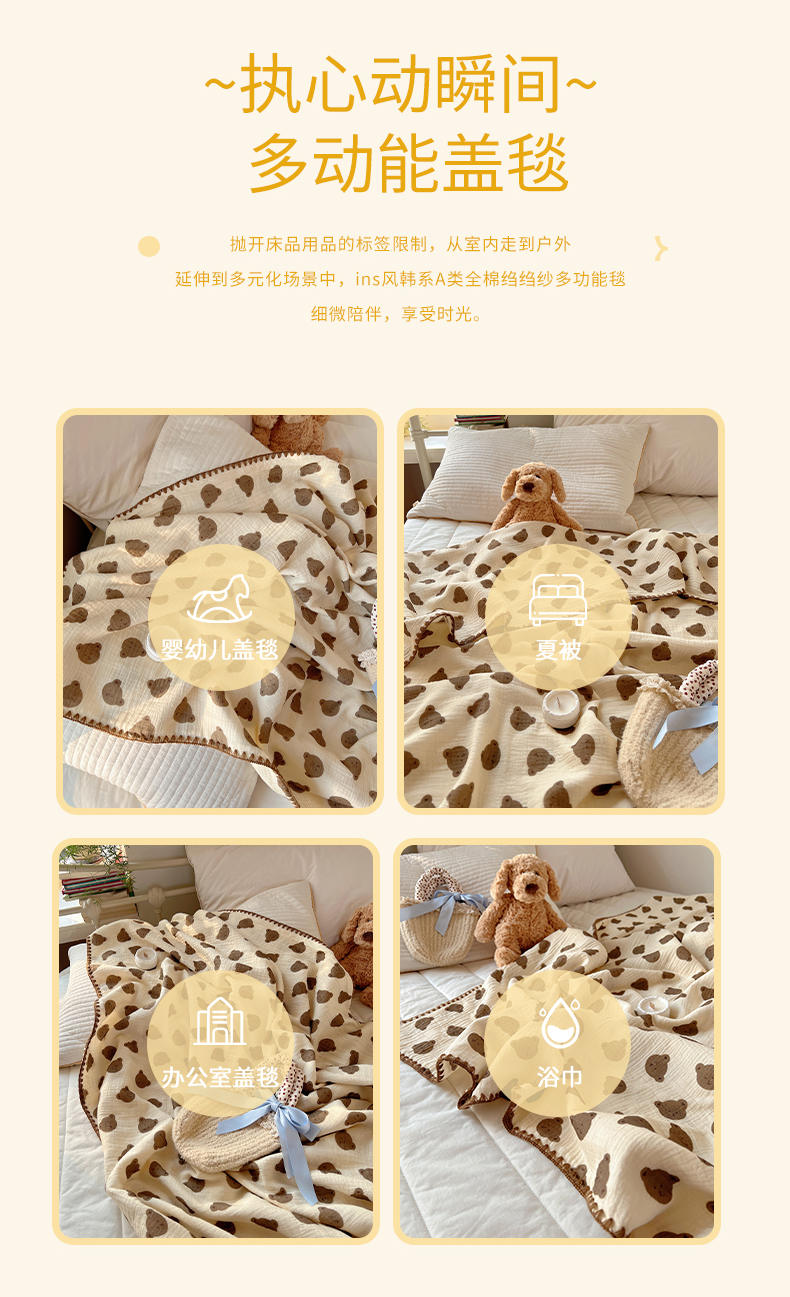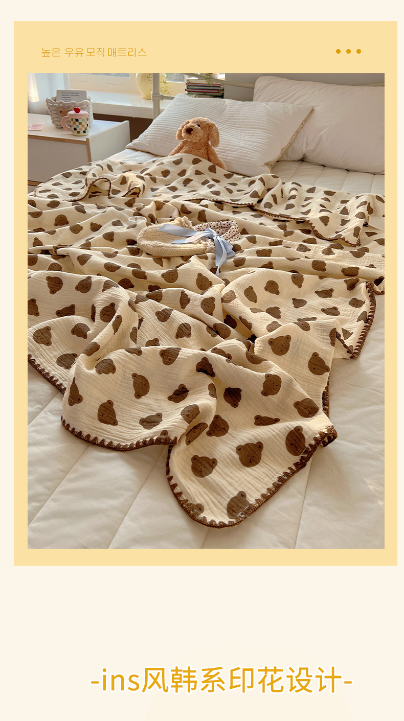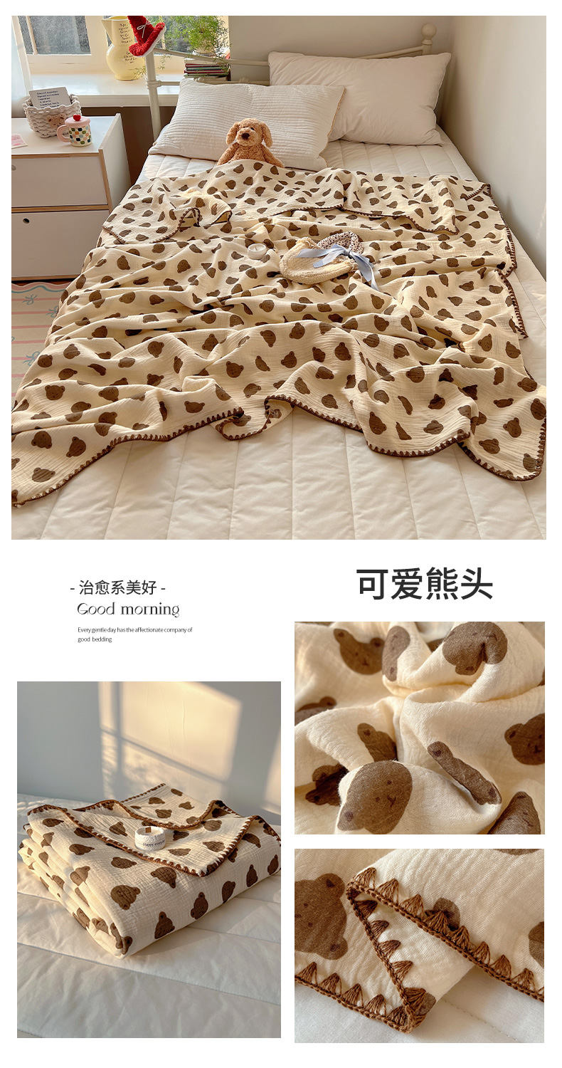 商品名称:三朵ins风韩国A类全棉绉绉纱多功能毯情图 可爱熊头