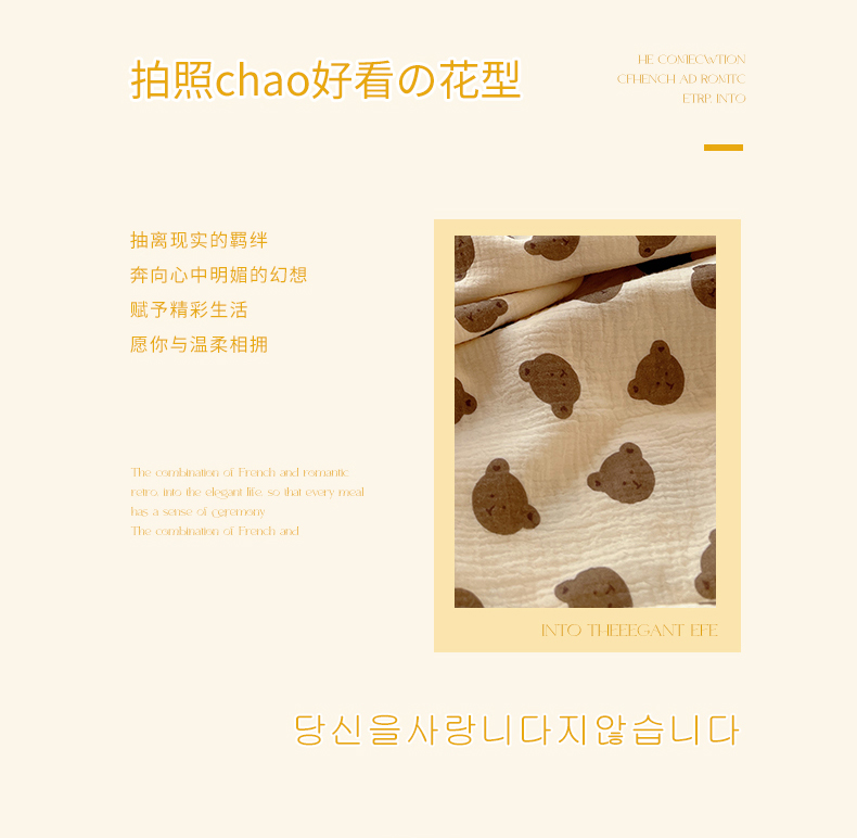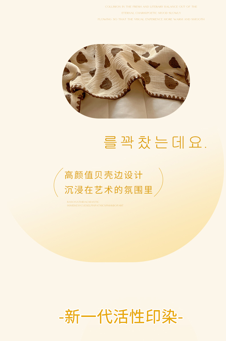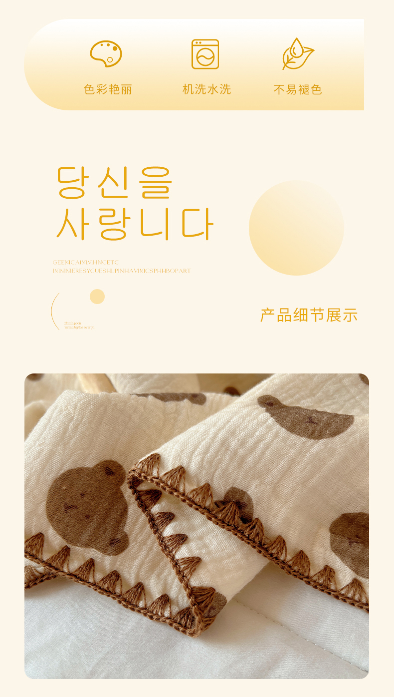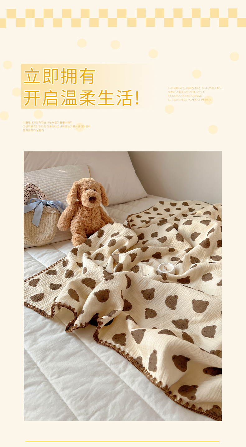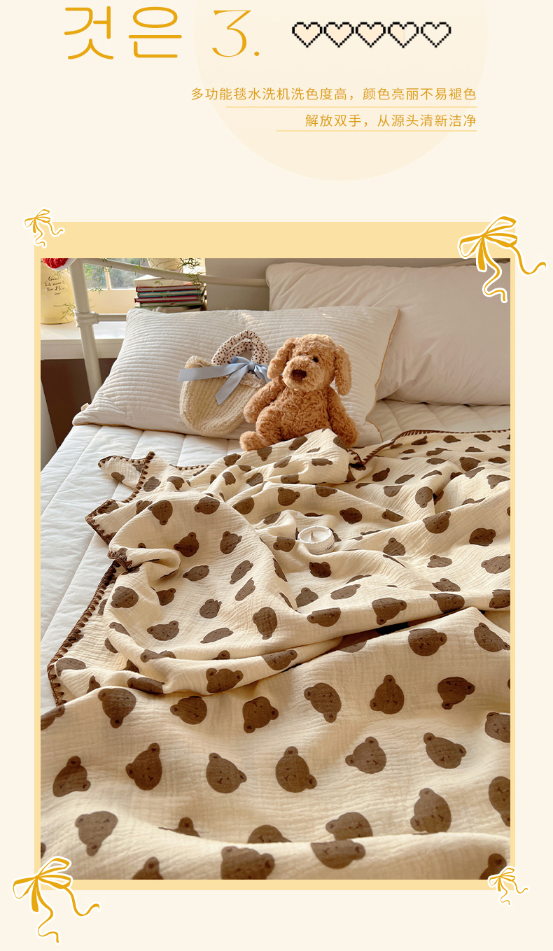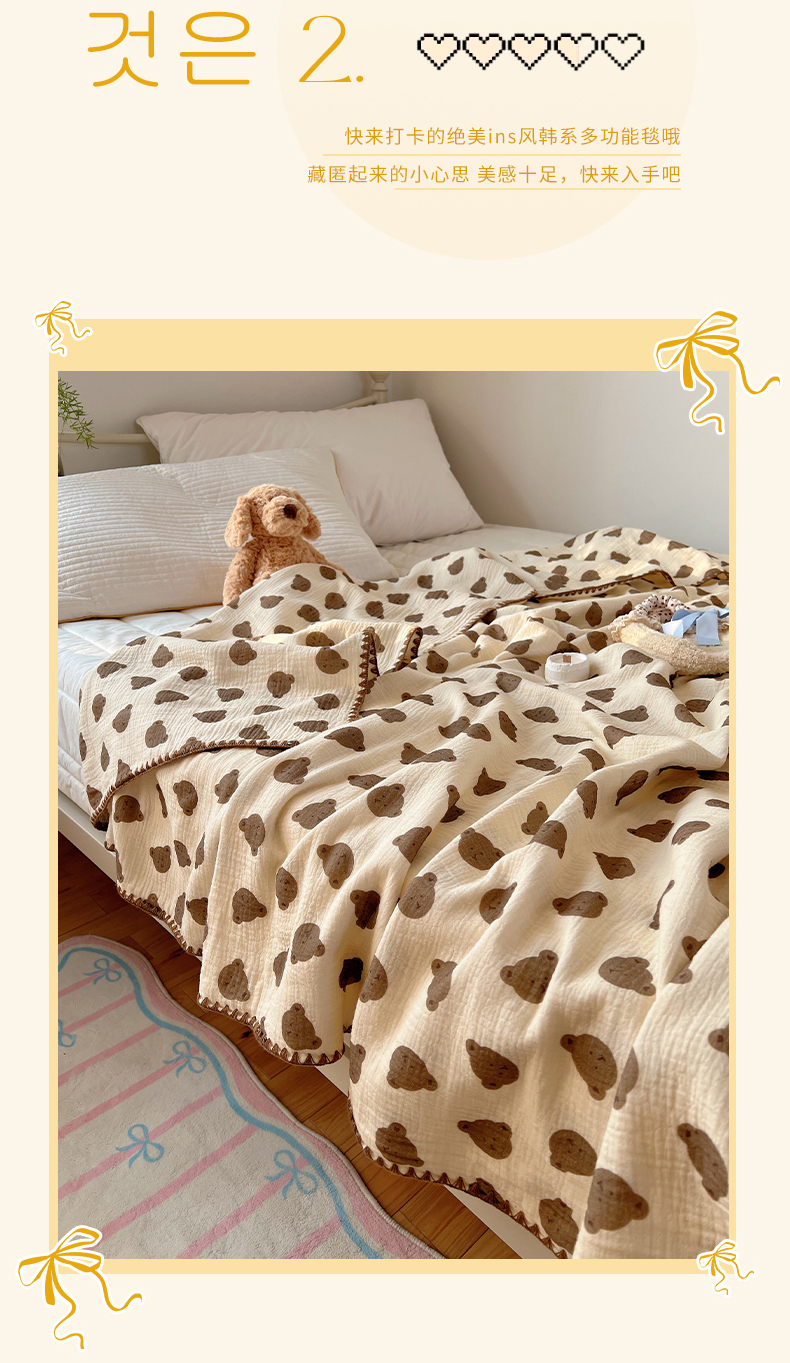 商品名称:三朵ins风韩国A类全棉绉绉纱多功能毯情图 可爱熊头