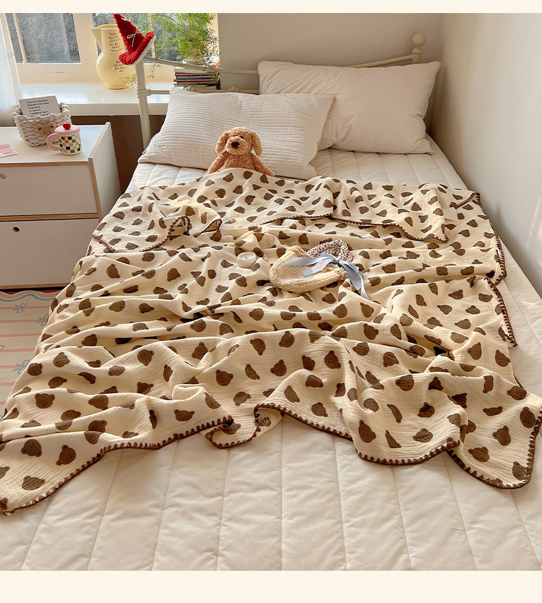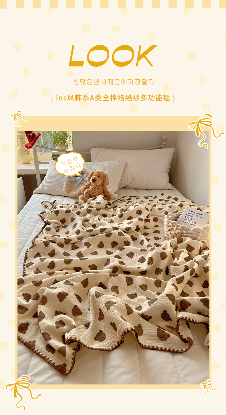 三朵ins风韩国A类全棉绉绉纱多功能毯情图 可爱熊头