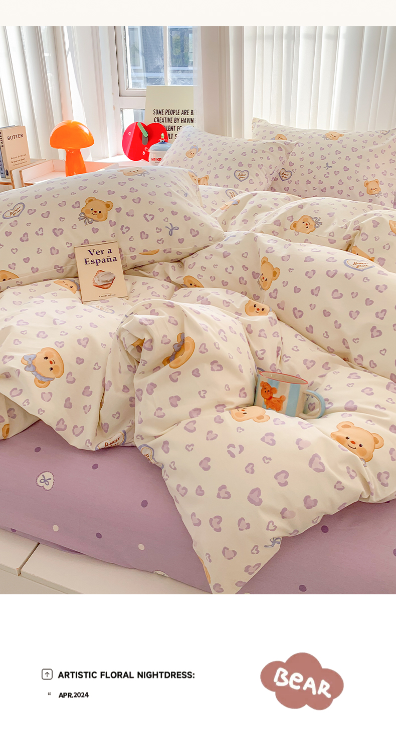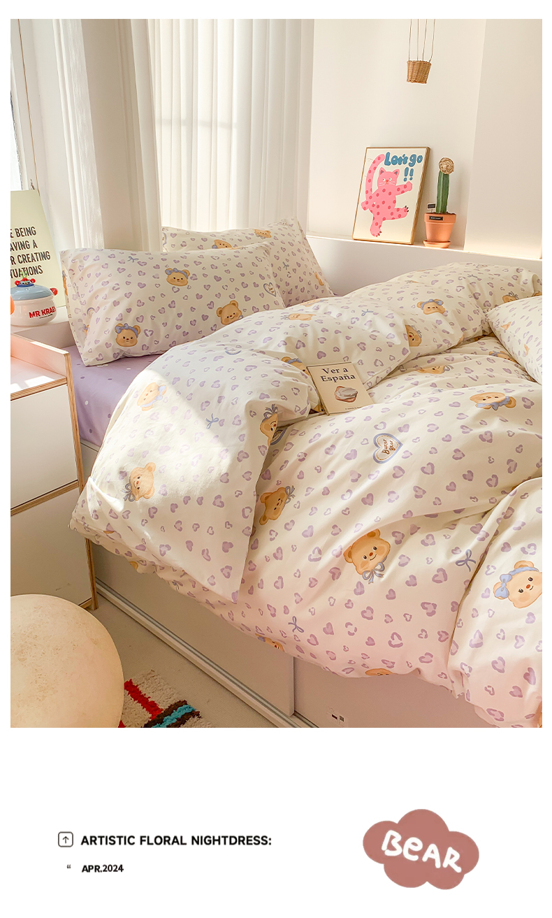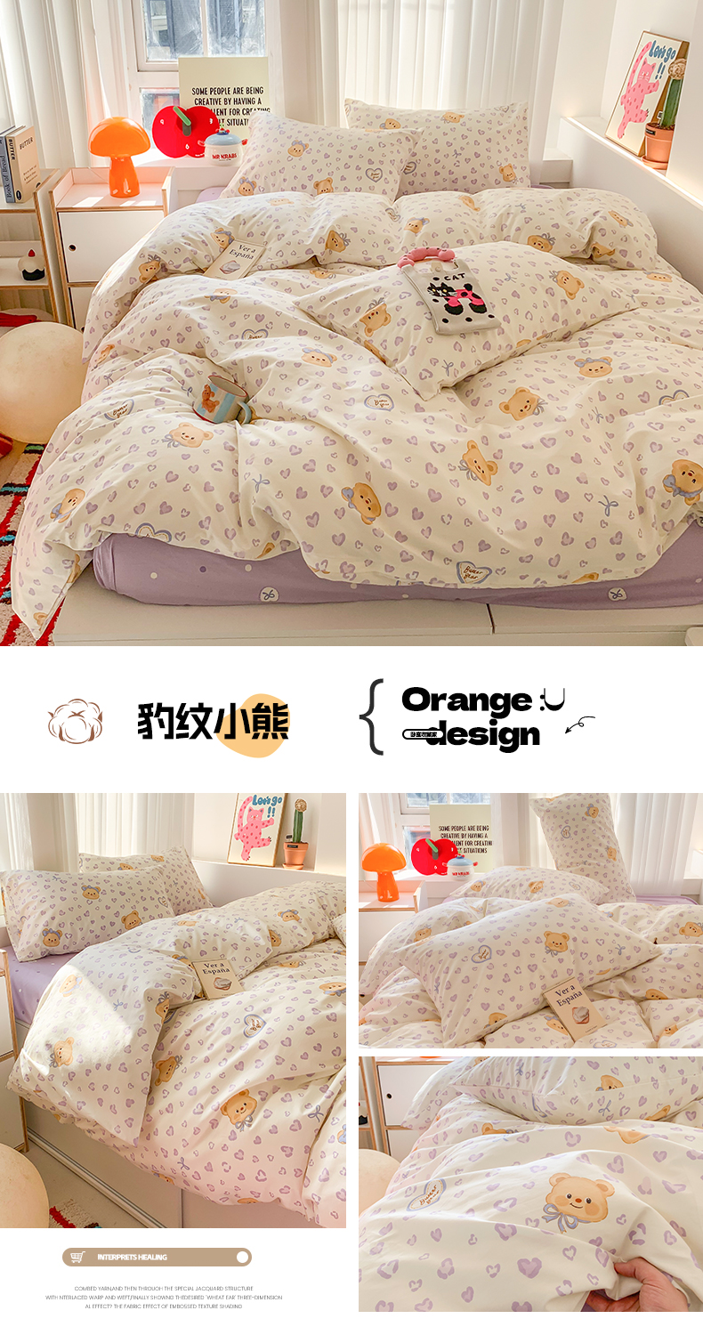 商品名称:澳萝拉 2025新款小碎花清新春夏全棉花边双层纱韩系三件套四件套 豹纹小熊