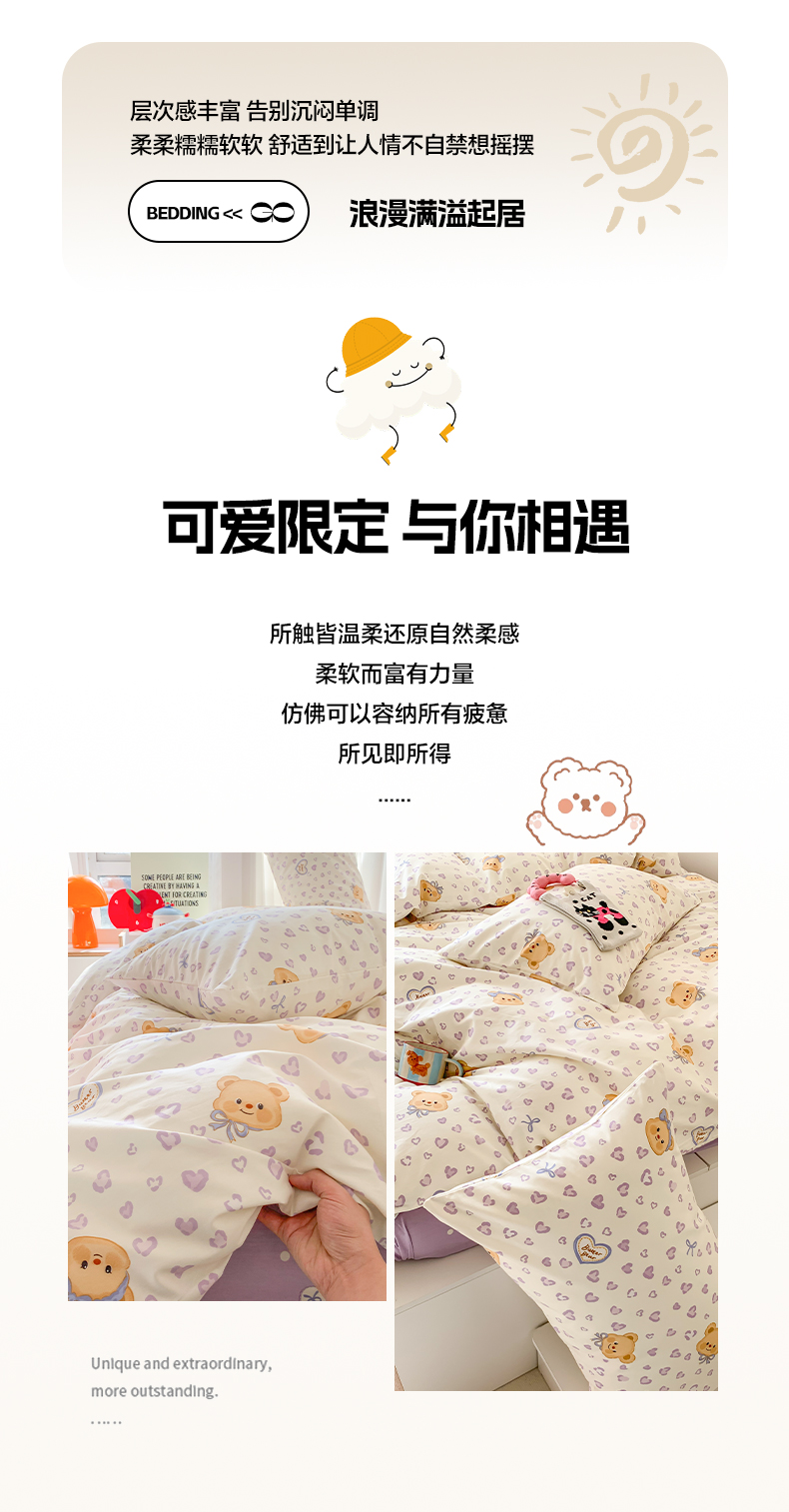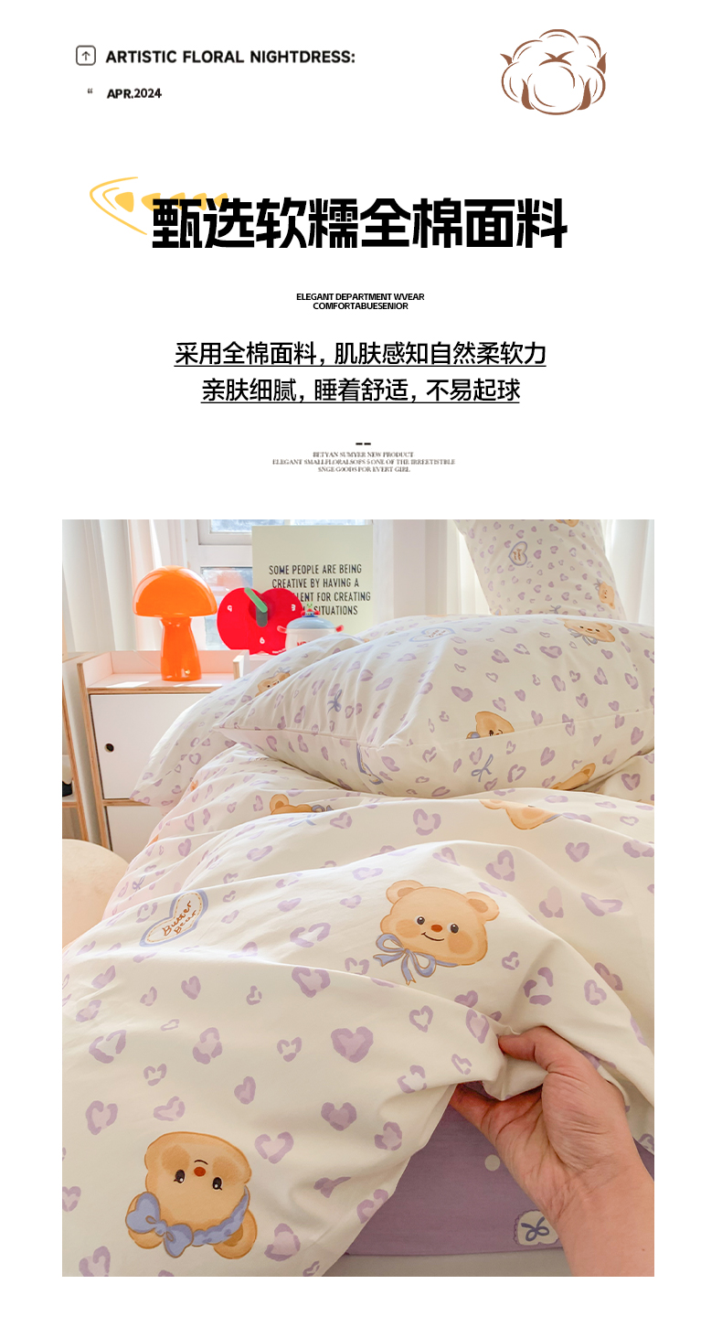 (总)澳萝拉 2023新款全棉印花四件套会员减5元,嗨迪诺,可爱多多,可可朵朵,兔兔莓莓,熊熊的面包,安绘里,豹纹棕熊,草莓花园,粉心小熊,简单生活,快乐星球,蓝心小熊,时尚熊,贪吃鲨,甜心花园,甜心小兔,童话镇,元气小熊,薄荷奶绿,黑糖乳酪,花语仙踪,秘密花园,暖时光,童趣园,野餐森林,元气花花,元气橘,云上花园,呆萌狗,古灵精怪,乖乖兔,好事发生,花朵兔兔,花园漫步,焦糖布丁,爵士汪,奇幻星球,糖果兔兔,甜甜圈,小确幸,小甜心,心动甜心,星际兔,游乐园,云朵兔兔,芝芝汪