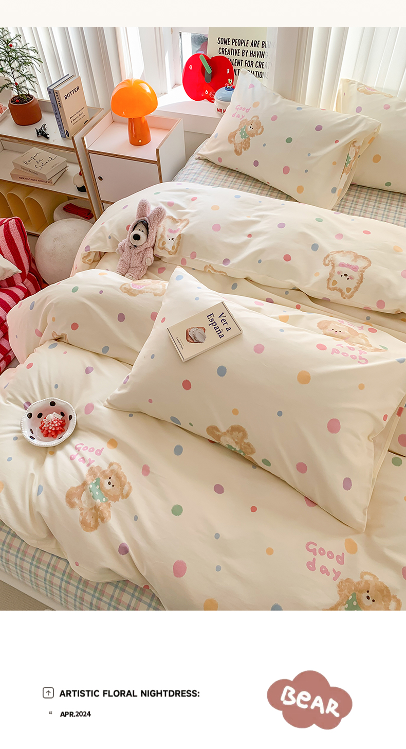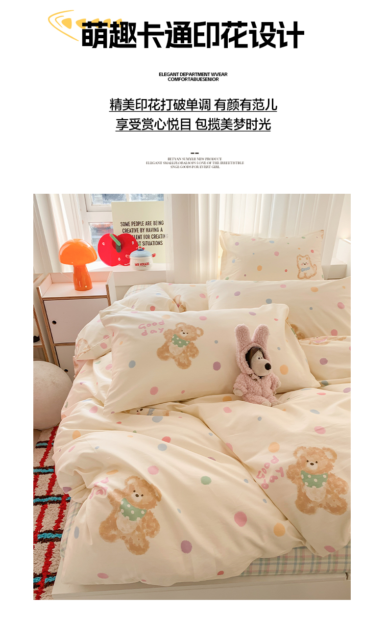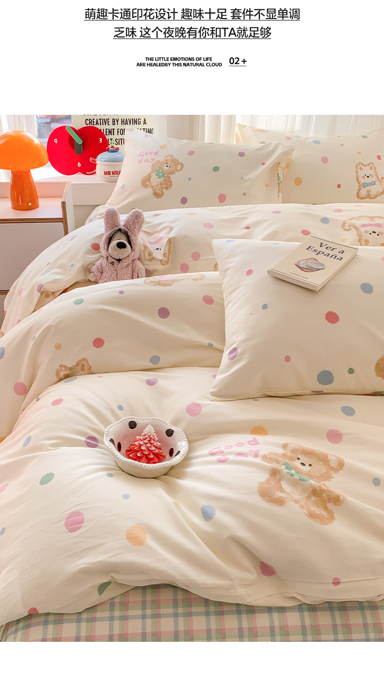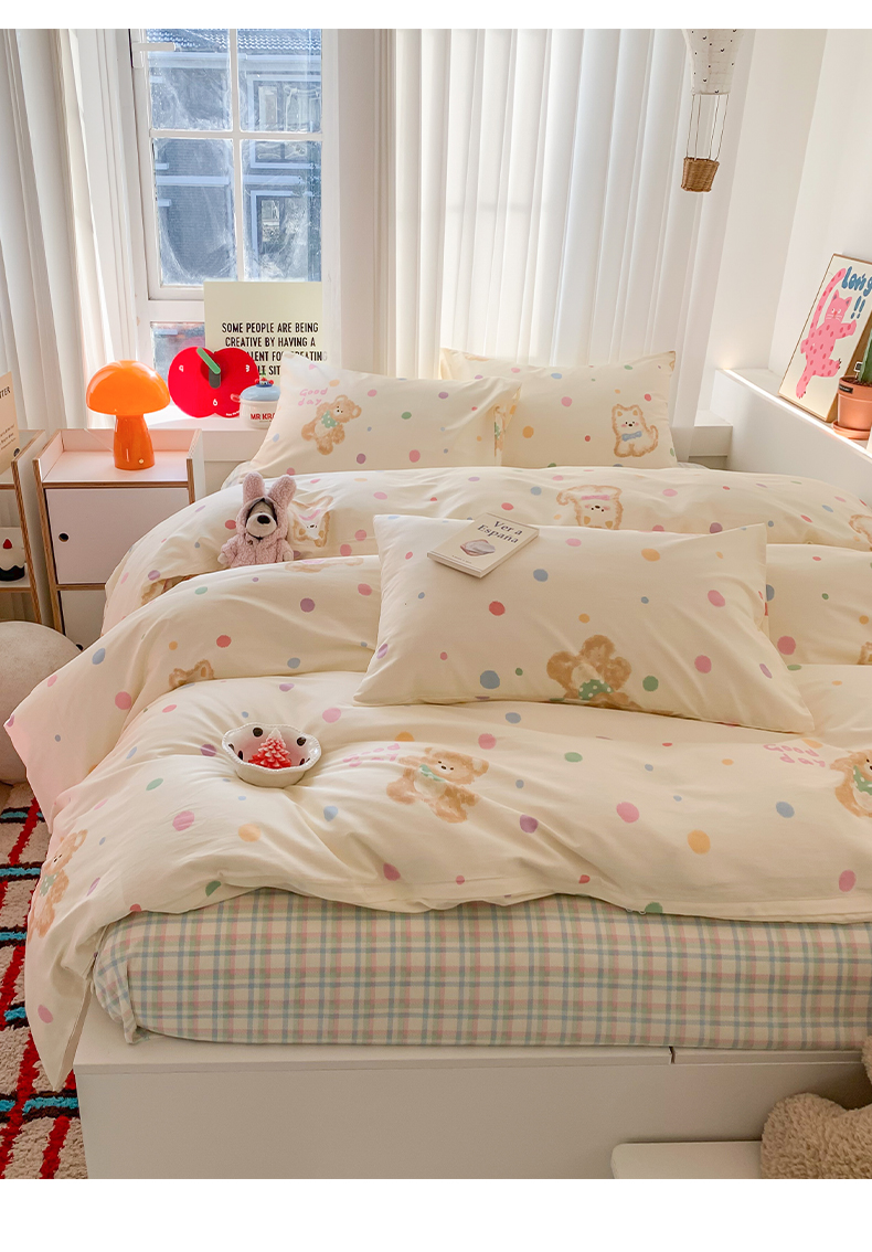 商品名称:澳萝拉 2025新款小碎花清新春夏全棉花边双层纱韩系三件套四件套 奶油小熊
