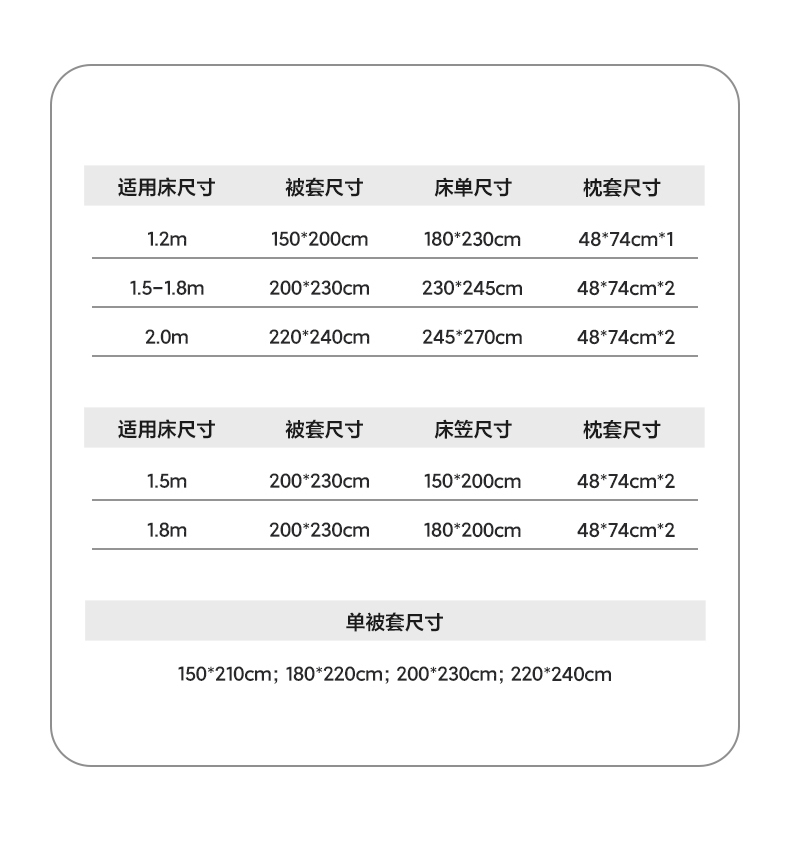 1.8m床笠款四件套-被套200*230 | ¥125.00 |