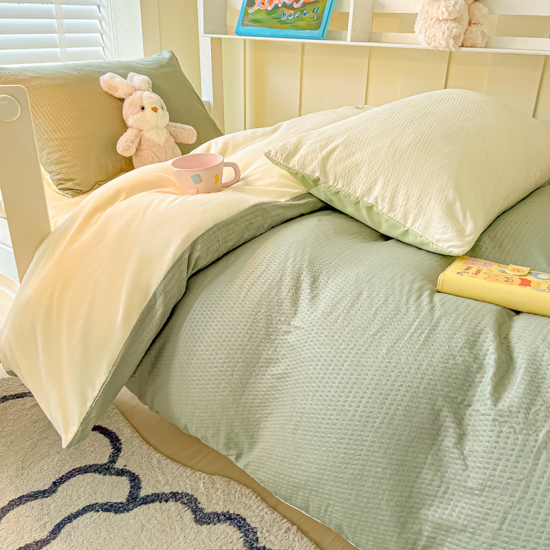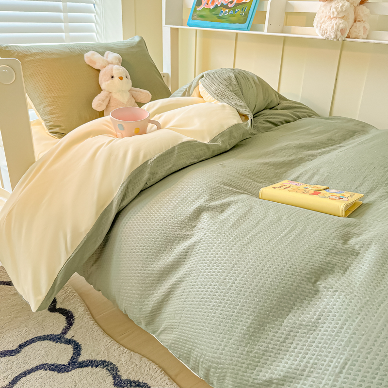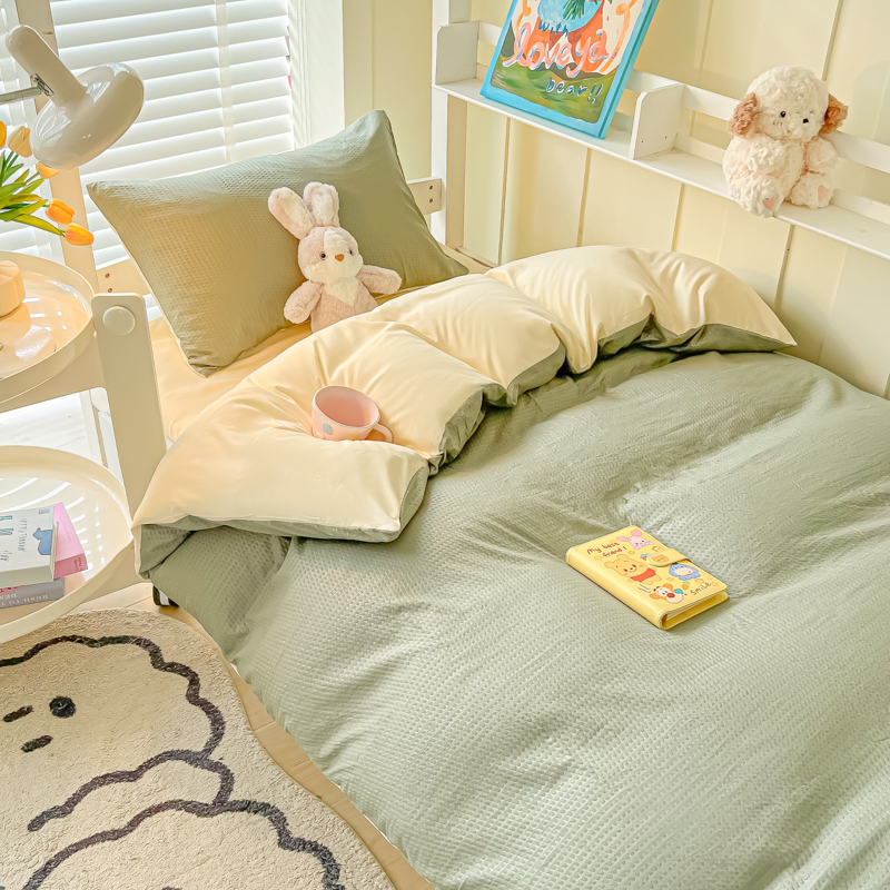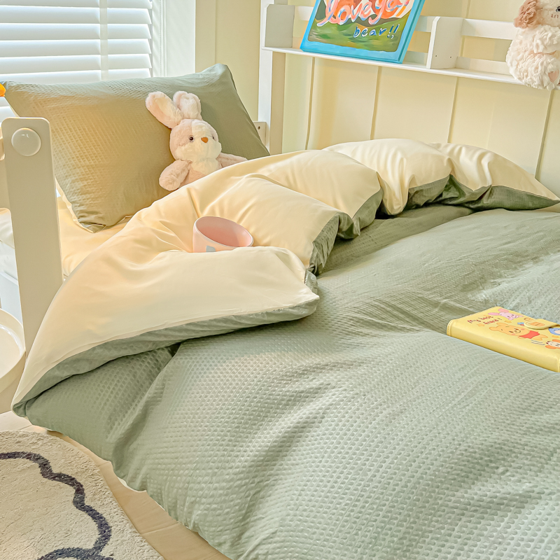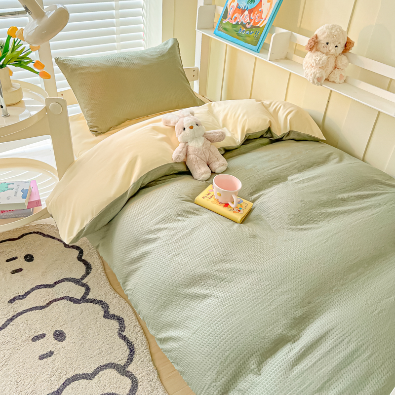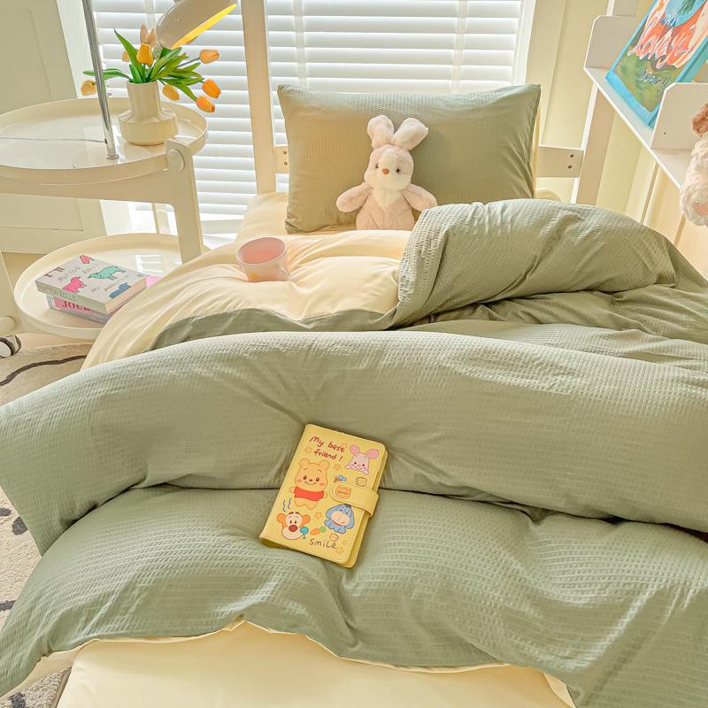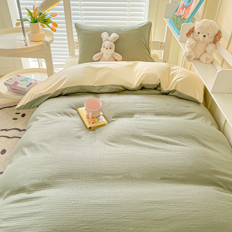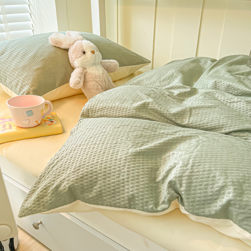 当前位置: 91家纺网 > 商品网购 > 床品套件 > 四件套 > 水洗棉四件套 > 悦织湾家纺 2025新款华夫格压泡亲肤学生宿舍三件套单人床轻奢时尚四件套 华夫格压泡-抹茶+芝士