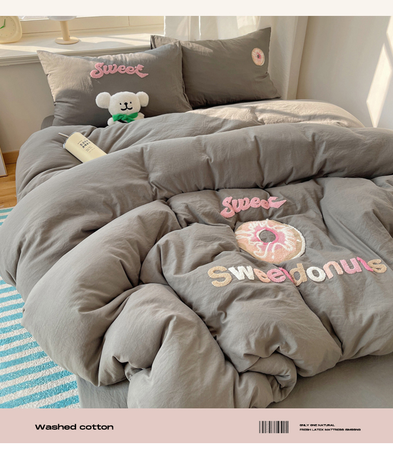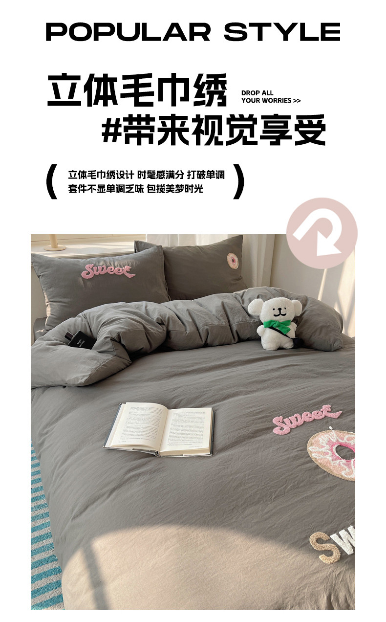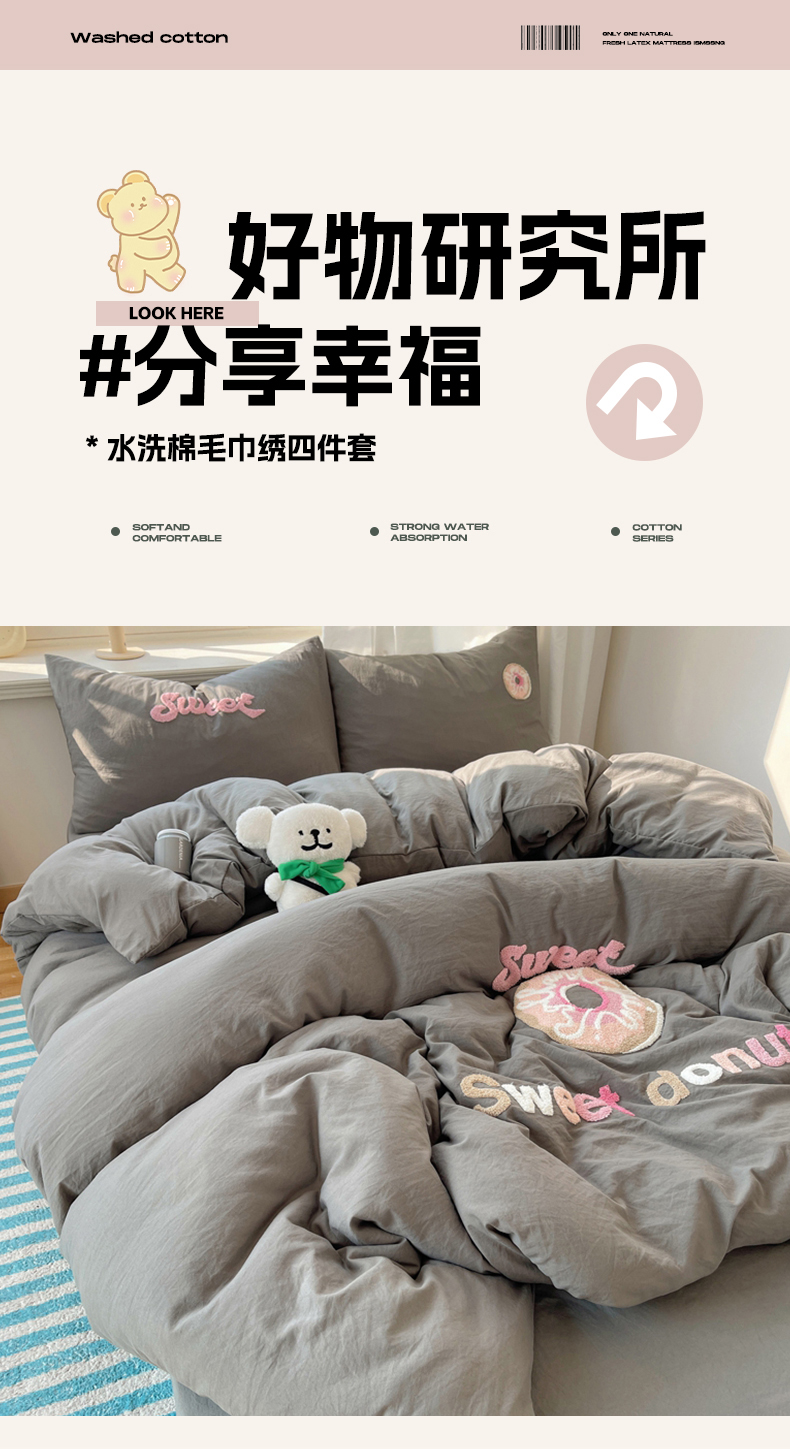当前位置: 91家纺网 > 商品网购 > 床品套件 > 四件套 > 水洗棉四件套 > 阿曼达 2025新款爆款超甜可爱酷美毛巾绣软糯糯可以裸睡的水洗m纯色格子双拼四件套 甜甜圈-深灰