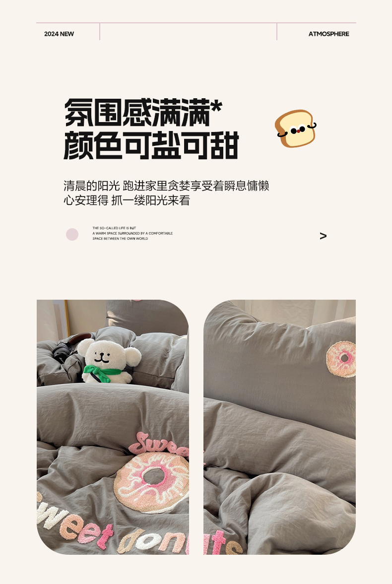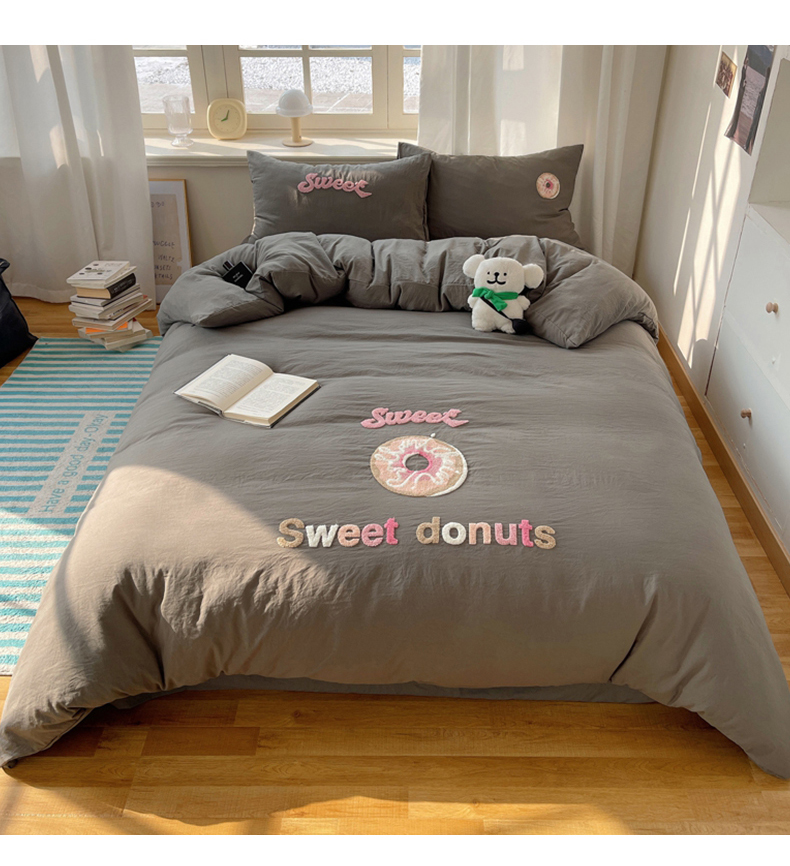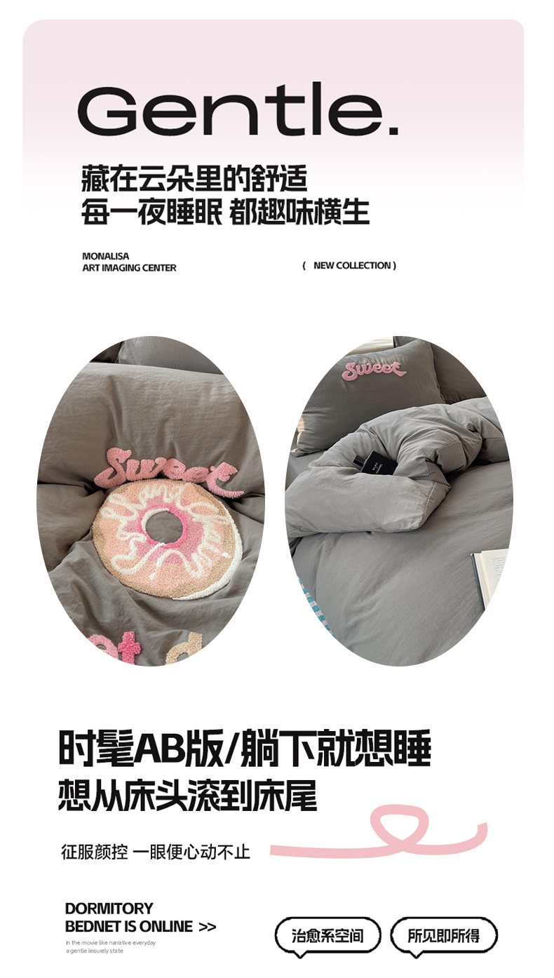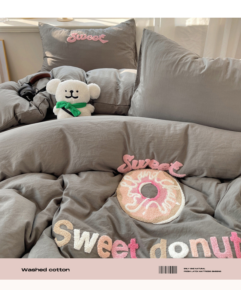 当前位置: 91家纺网 > 商品网购 > 床品套件 > 四件套 > 水洗棉四件套 > 阿曼达 2025新款爆款超甜可爱酷美毛巾绣软糯糯可以裸睡的水洗m纯色格子双拼四件套 甜甜圈-深灰
