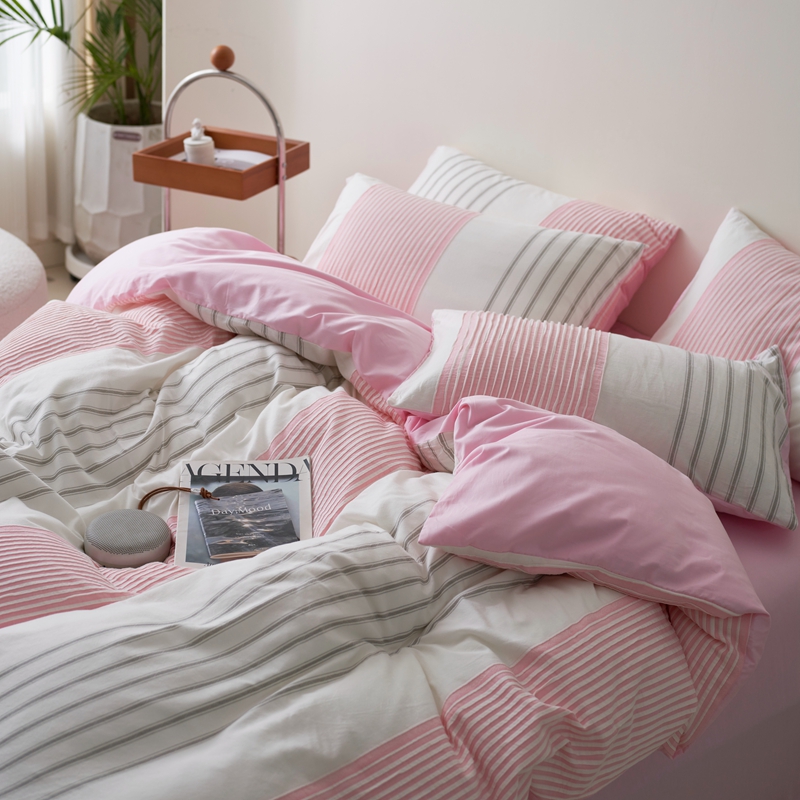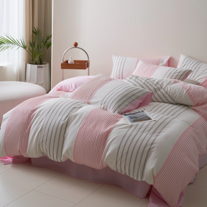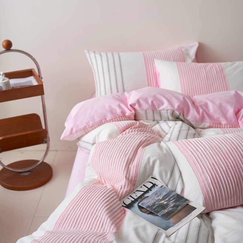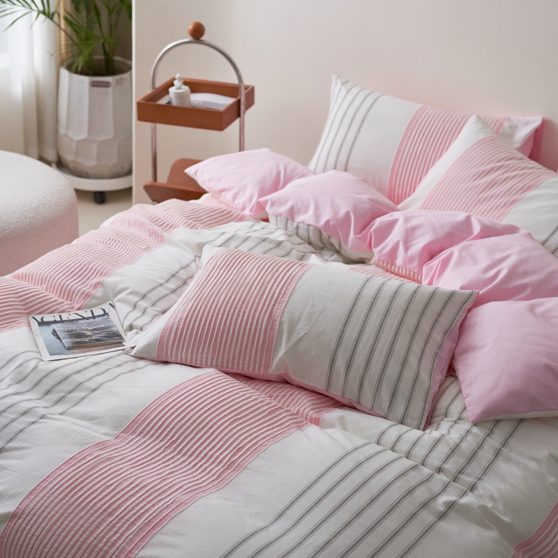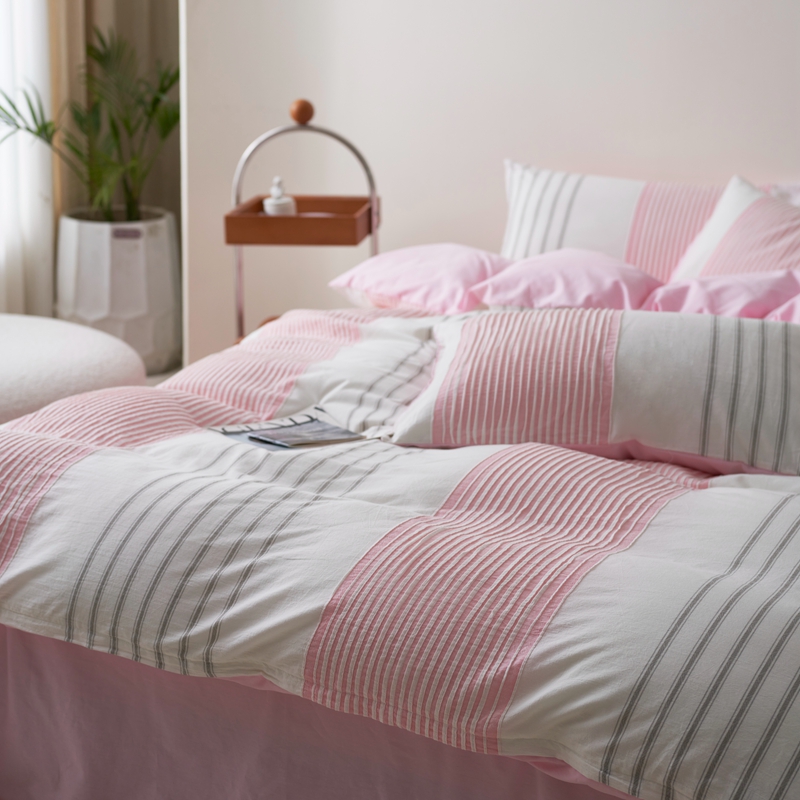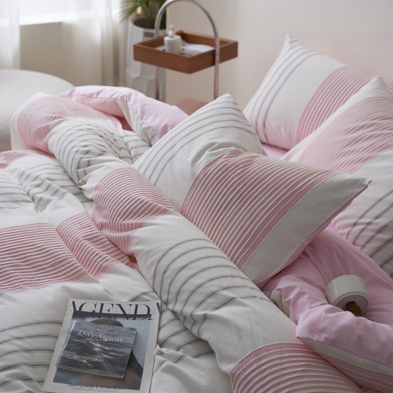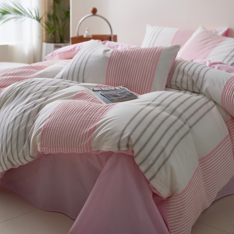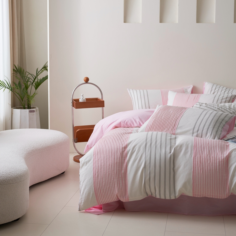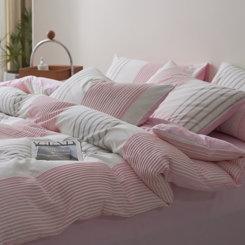 当前位置: 91家纺网 > 商品网购 > 床品套件 > 四件套 > 全棉普通四件套 > 金丝鸟家纺 2025新款全棉三层纱提花系列四件套 晴岚 粉