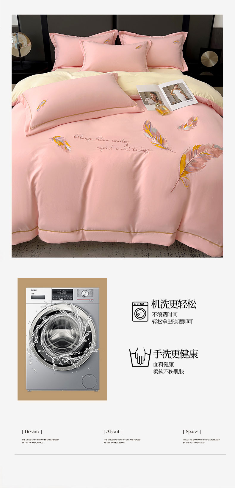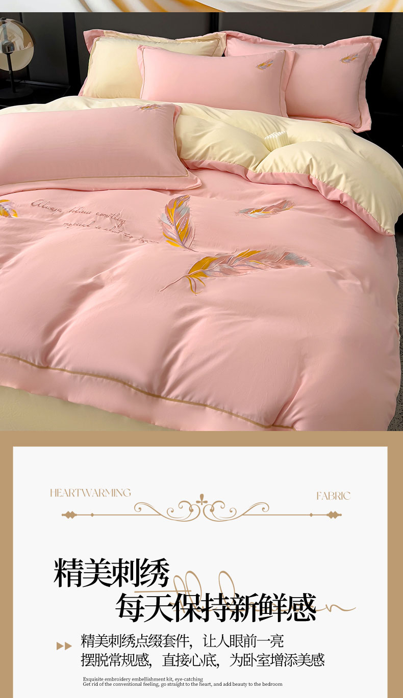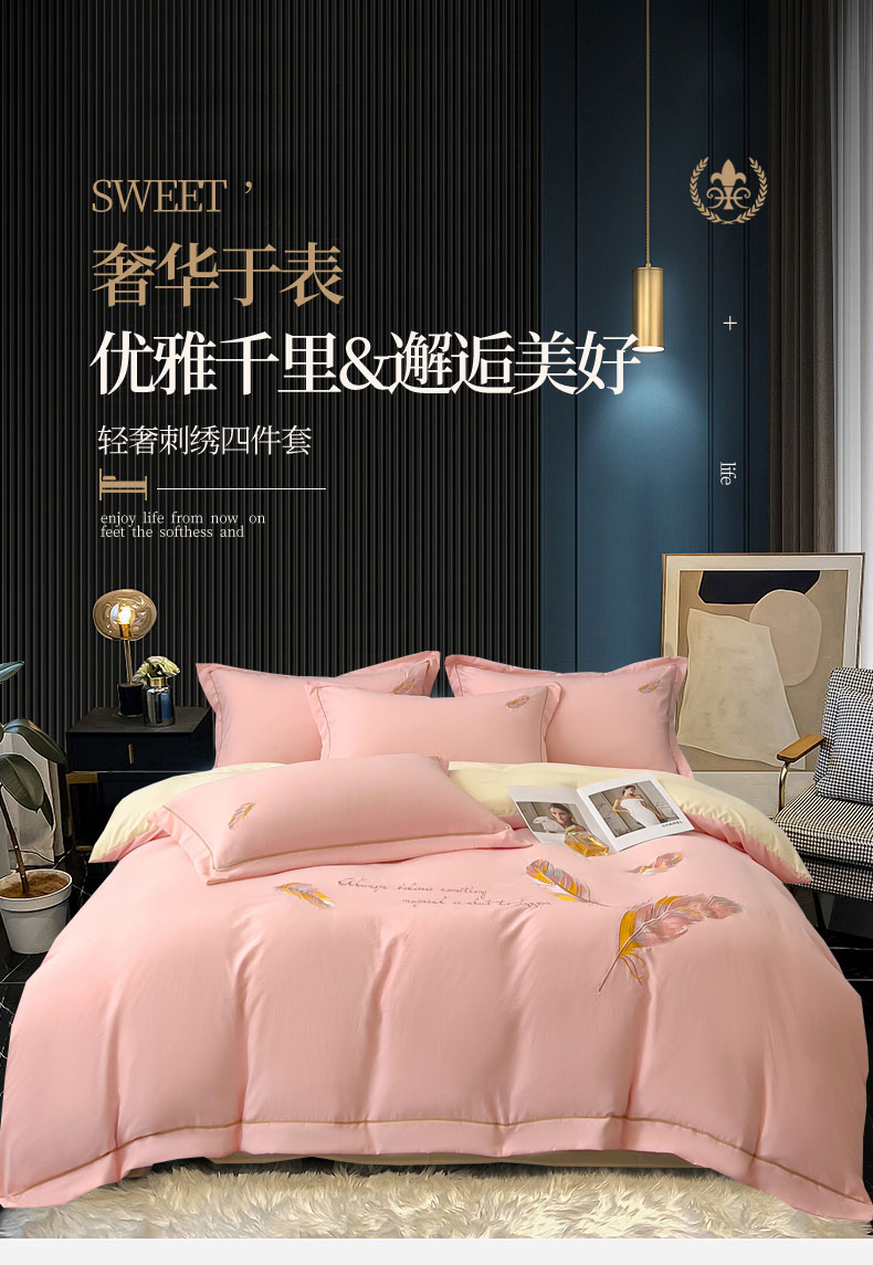 当前位置: 91家纺网 > 商品网购 > 床品套件 > 四件套 > 水洗棉四件套 > 灰鲸 2025新款A类轻奢水洗棉刺绣四件套-邂逅 邂逅-樱花粉+奶油黄
