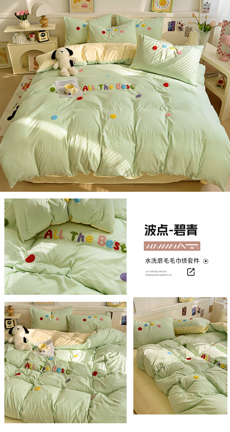 当前位置: 91家纺网 > 商品网购 > 床品套件 > 四件套 > 水洗棉四件套 > 逸尚阁 2025新款小清新毛巾绣四件套(提供买家秀) 波点-碧青