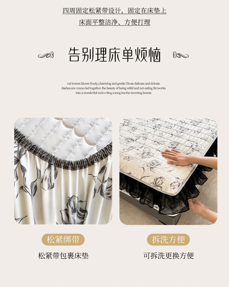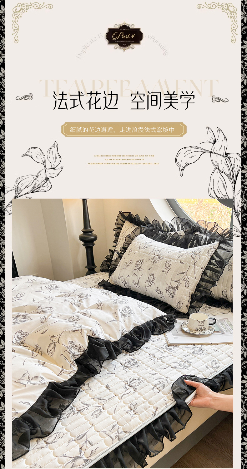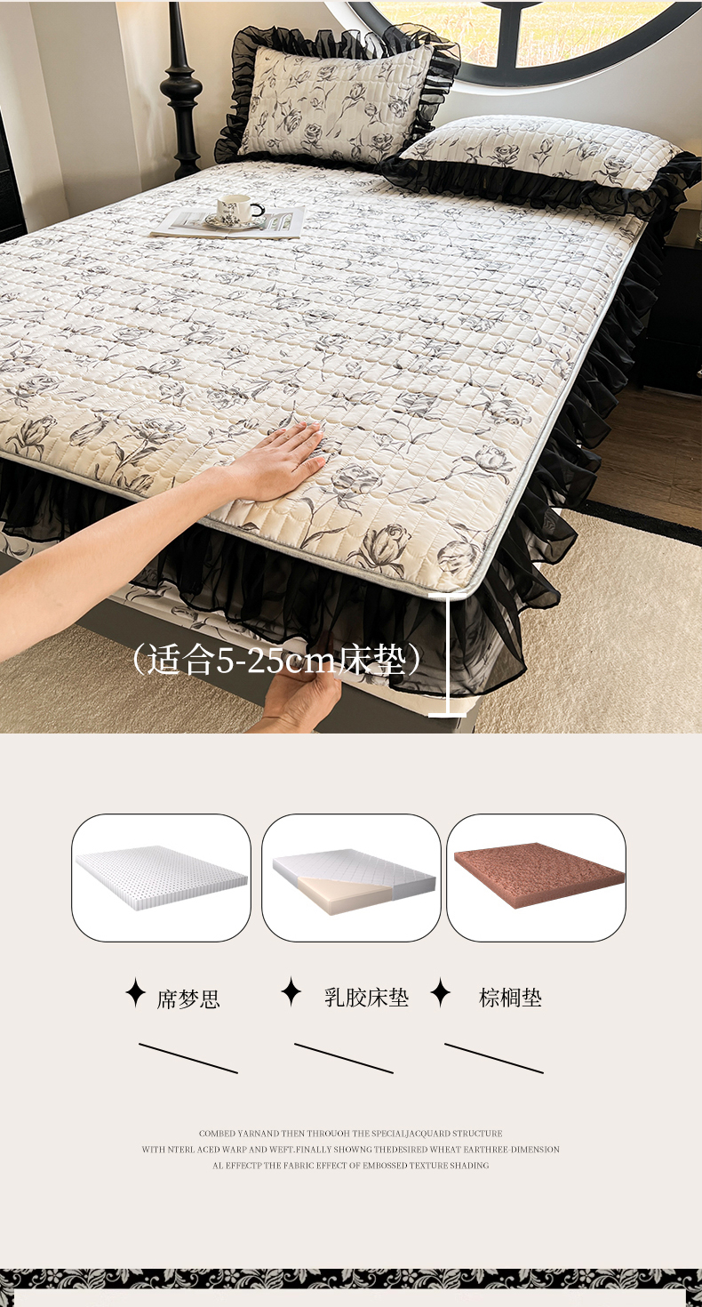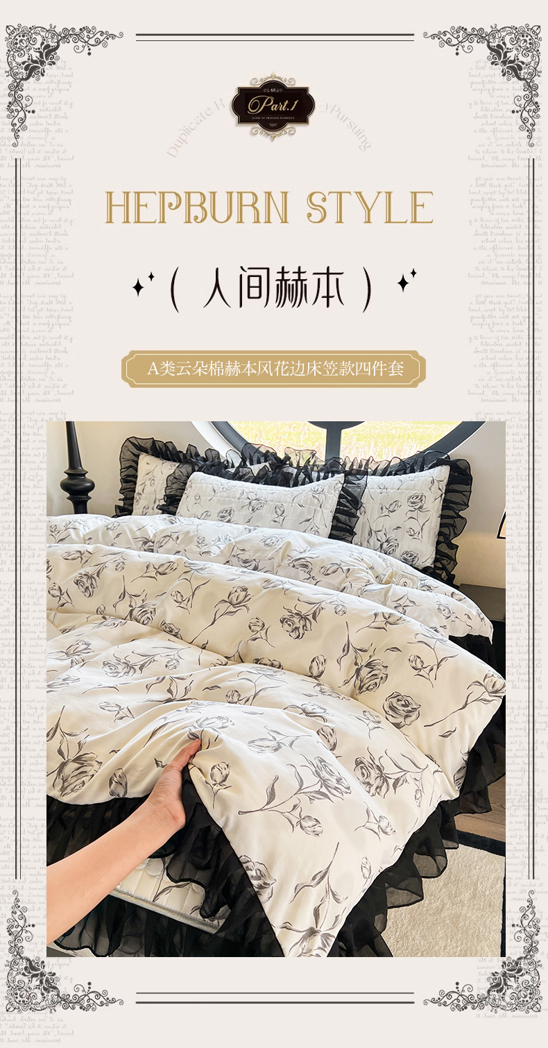 当前位置: 91家纺网 > 商品网购 > 床品套件 > 四件套 > 其它四件套 > 眠势力 2025新款赫本风花边四件套床笠款四季通用夹棉席梦思保护套法式 玫瑰之恋