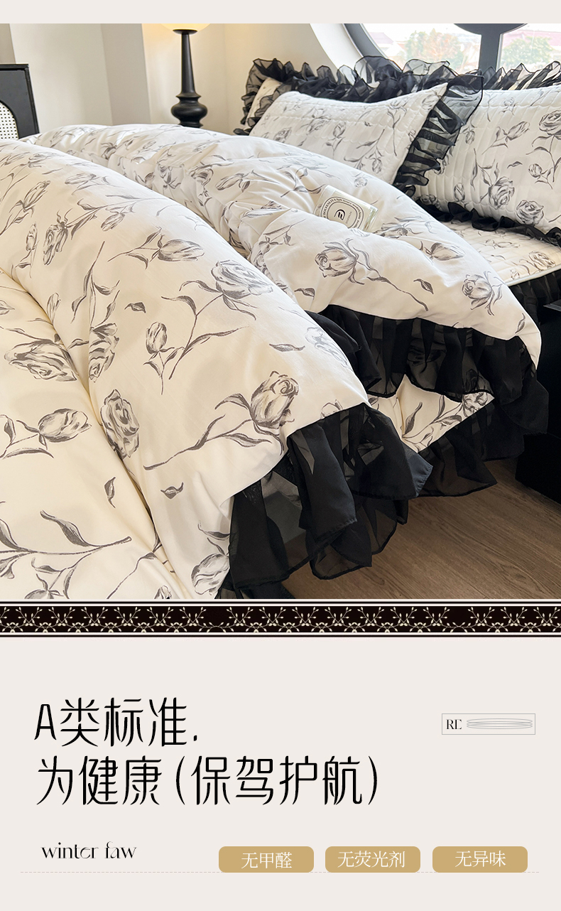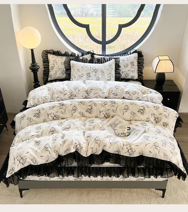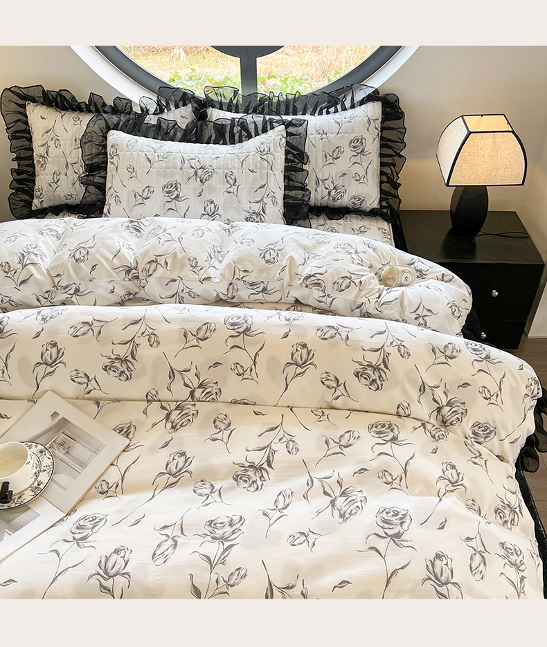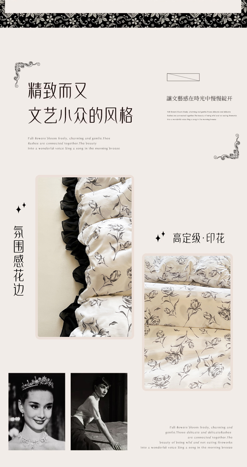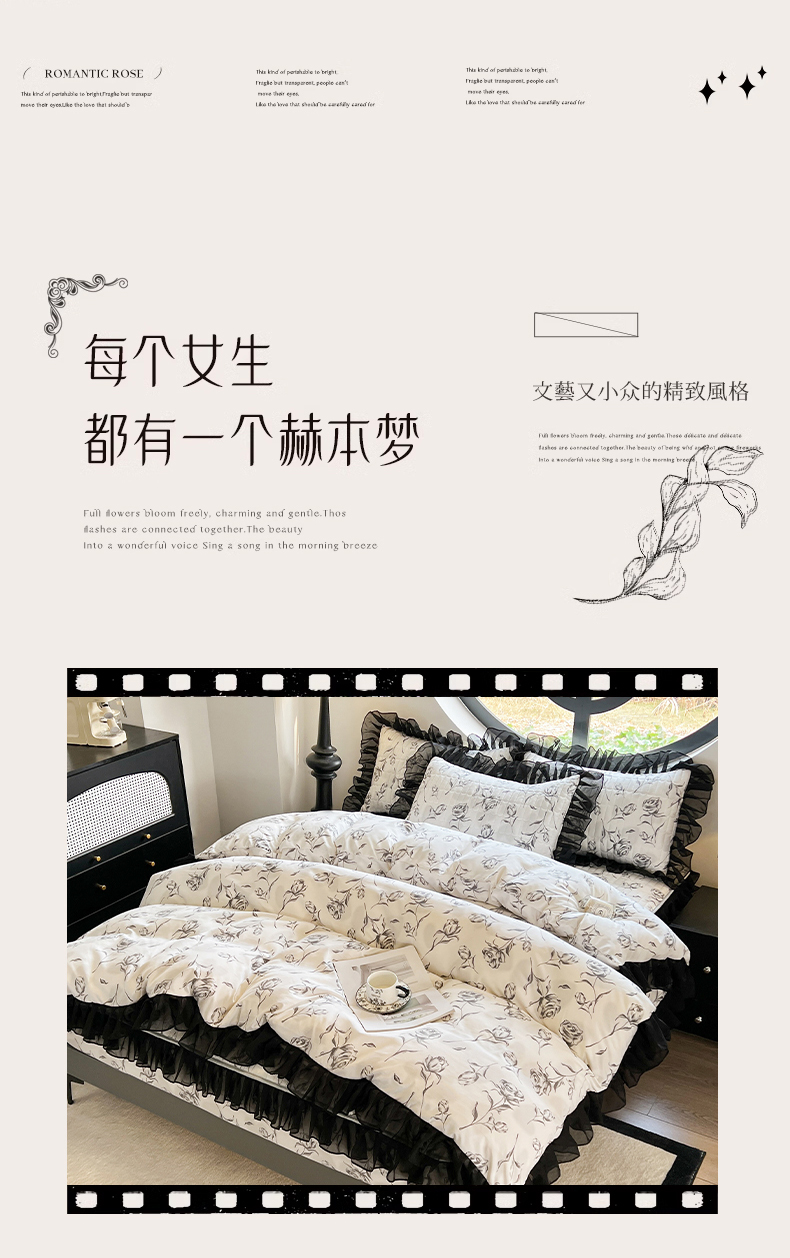 当前位置: 91家纺网 > 商品网购 > 床品套件 > 四件套 > 其它四件套 > 眠势力 2025新款赫本风花边四件套床笠款四季通用夹棉席梦思保护套法式 玫瑰之恋