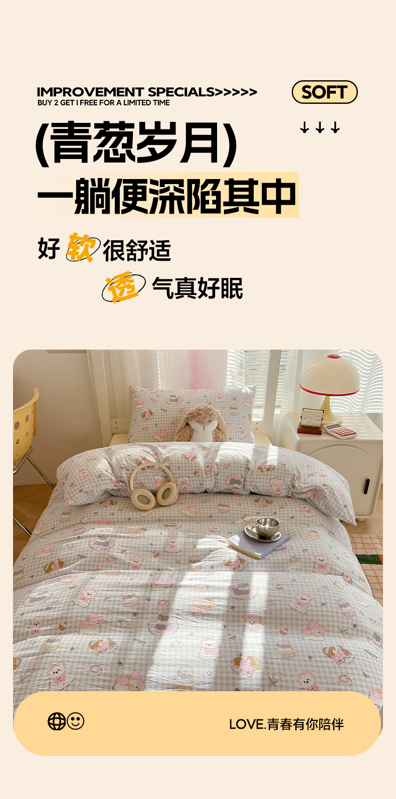 当前位置: 91家纺网 > 商品网购 > 床品套件 > 四件套 > 其它四件套 > 韩巢家纺 2025新款超柔水洗棉学生宿舍寝室被套床单三件套 狗狗可丽饼