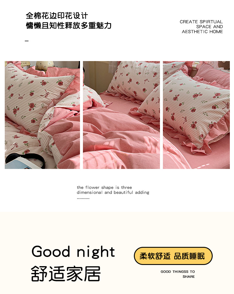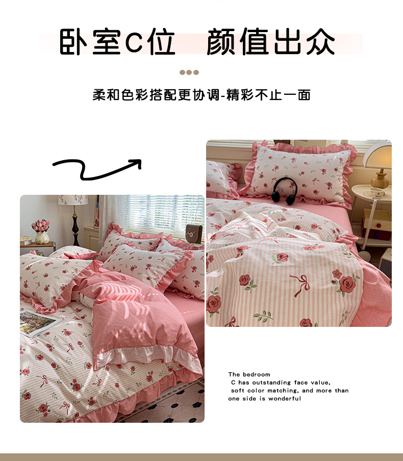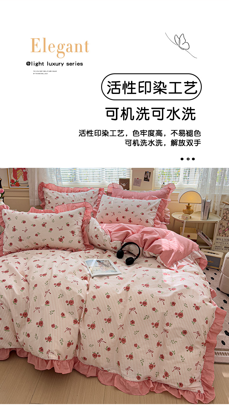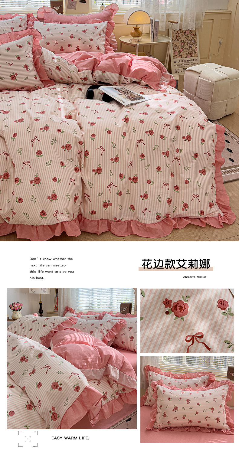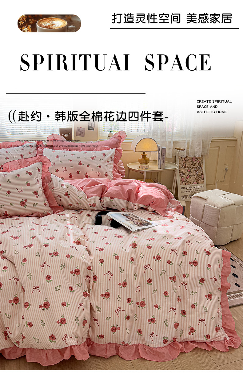 当前位置: 91家纺网 > 商品网购 > 床品套件 > 四件套 > 全棉普通四件套 > 忆生活家纺 2025新款韩版全棉花边四件套 花边款艾莉娜