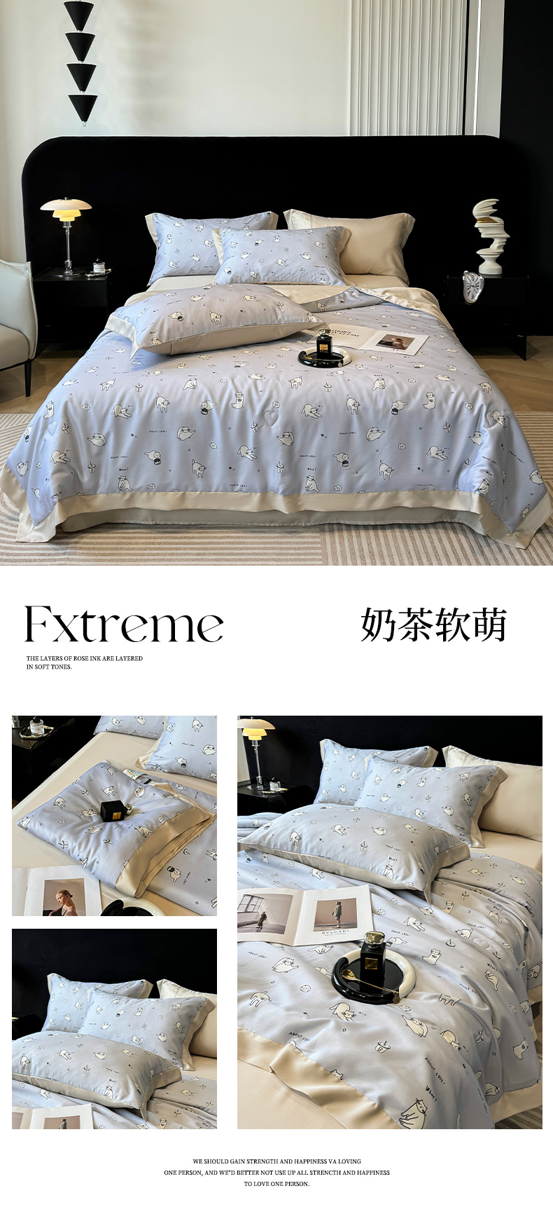 迷尚家居 2025新款夏被100%莱赛尔数码印花夏被四件套50支天丝夏被 奶茶软萌