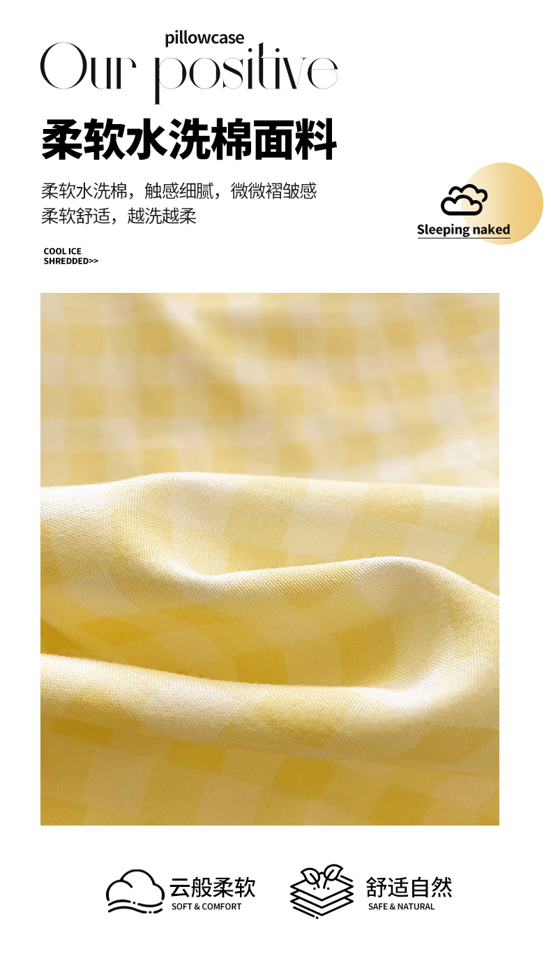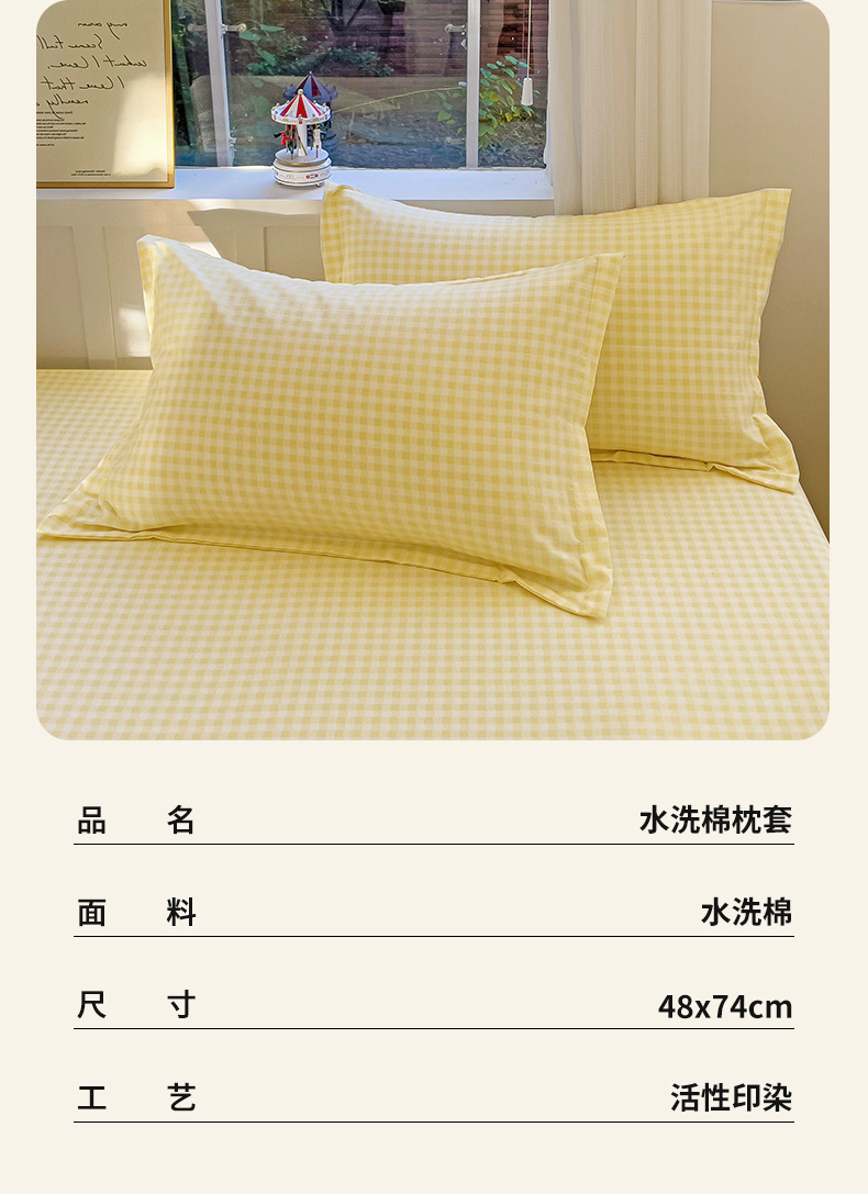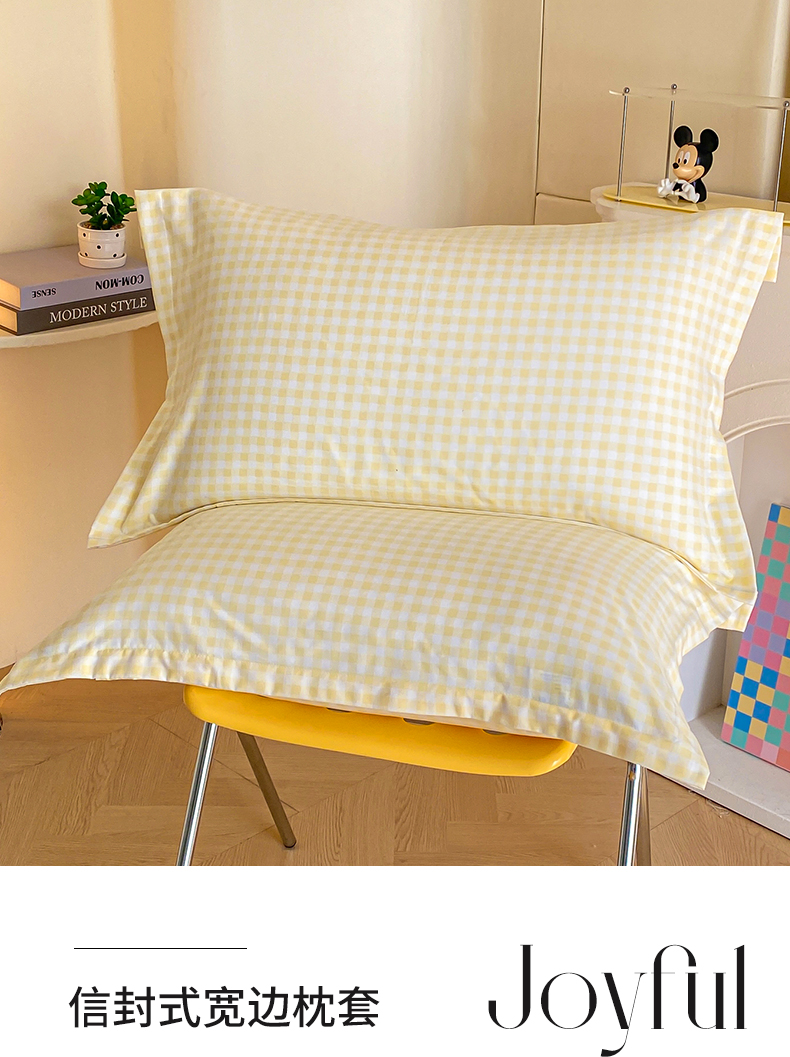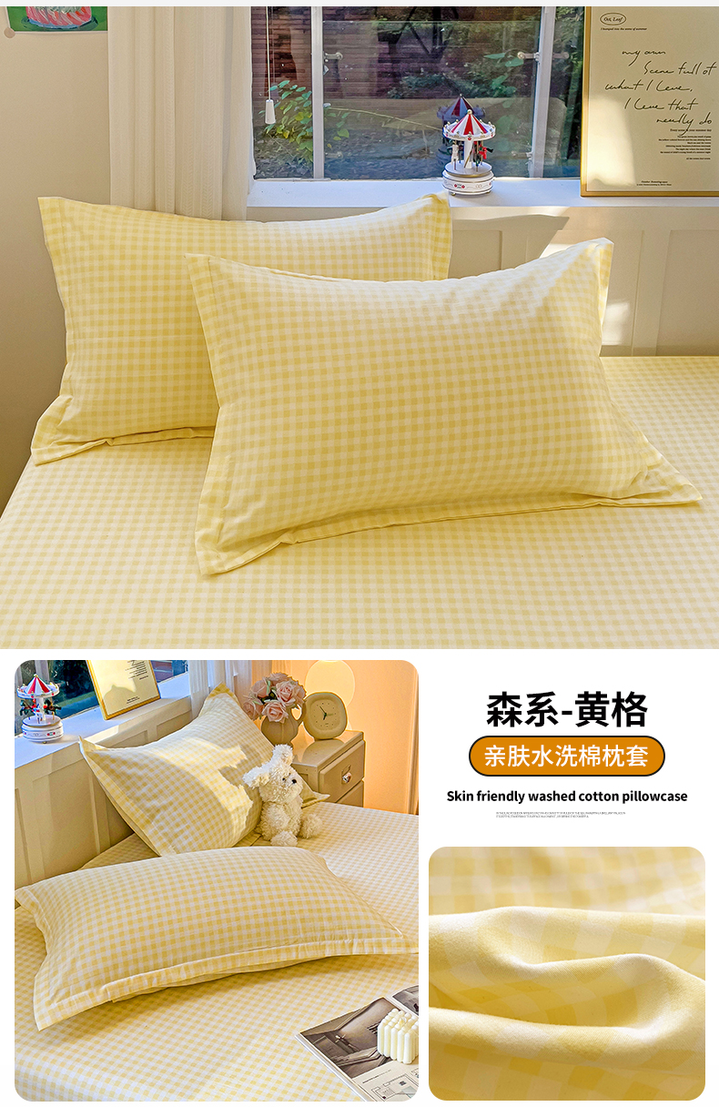商品名称:恬澳家纺 2025新款水洗棉森系枕套 森系-黄格