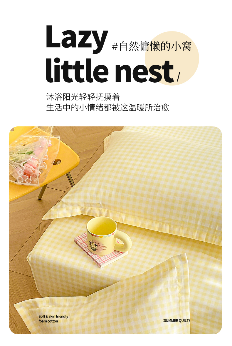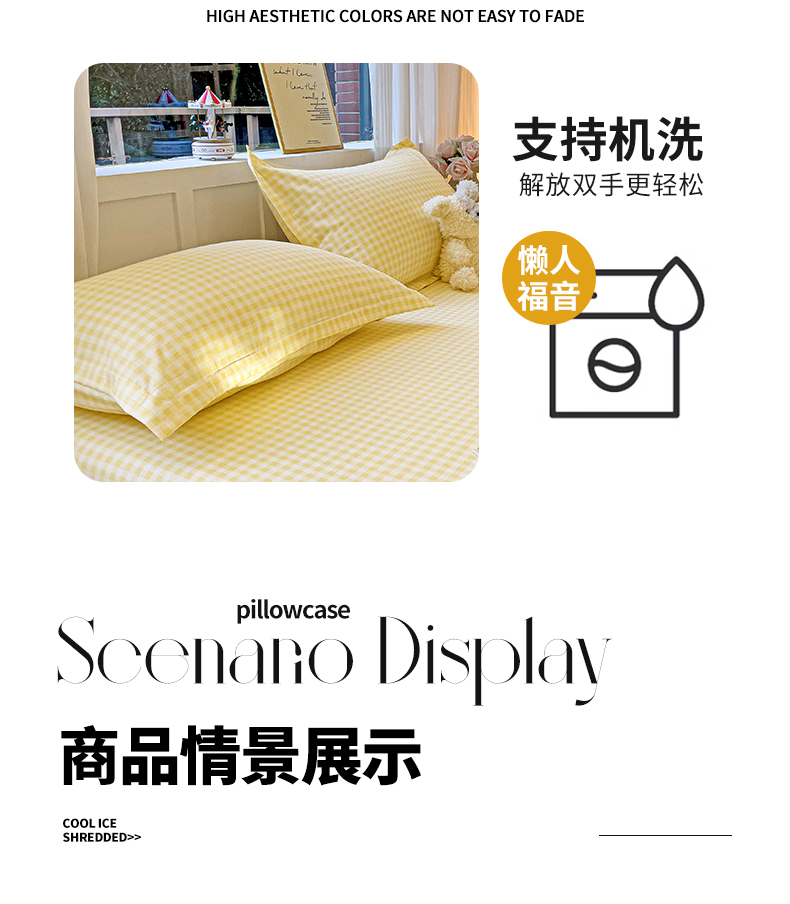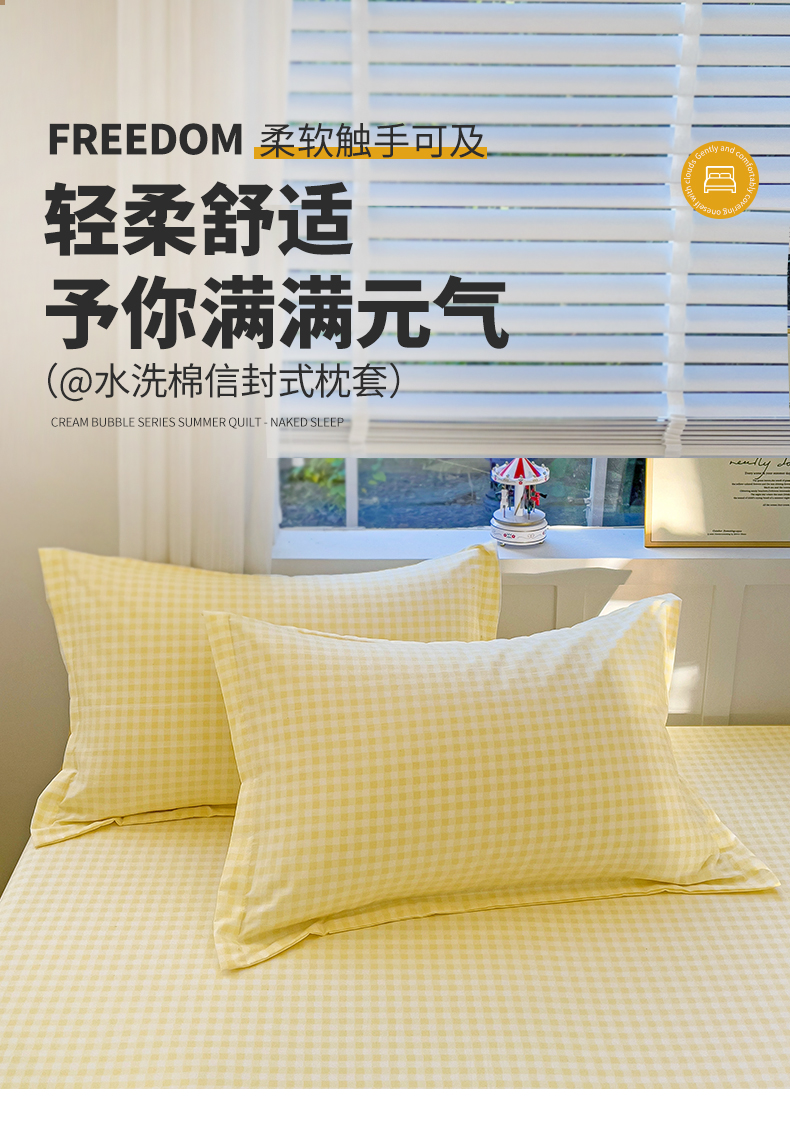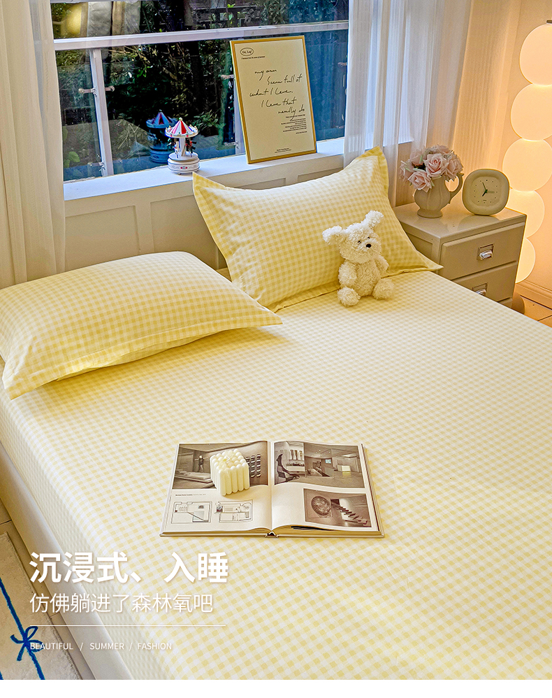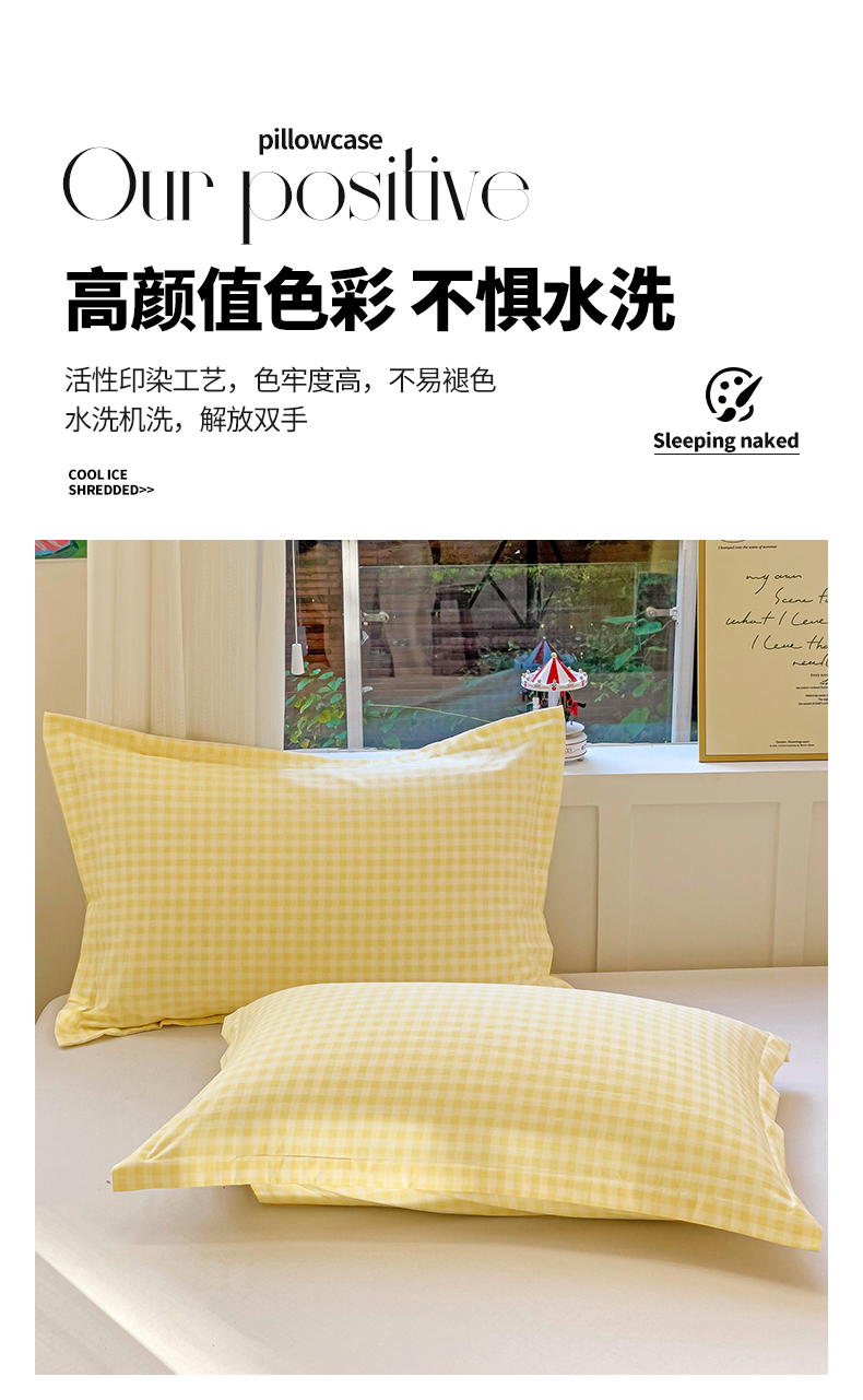 商品名称:恬澳家纺 2025新款水洗棉森系枕套 森系-黄格