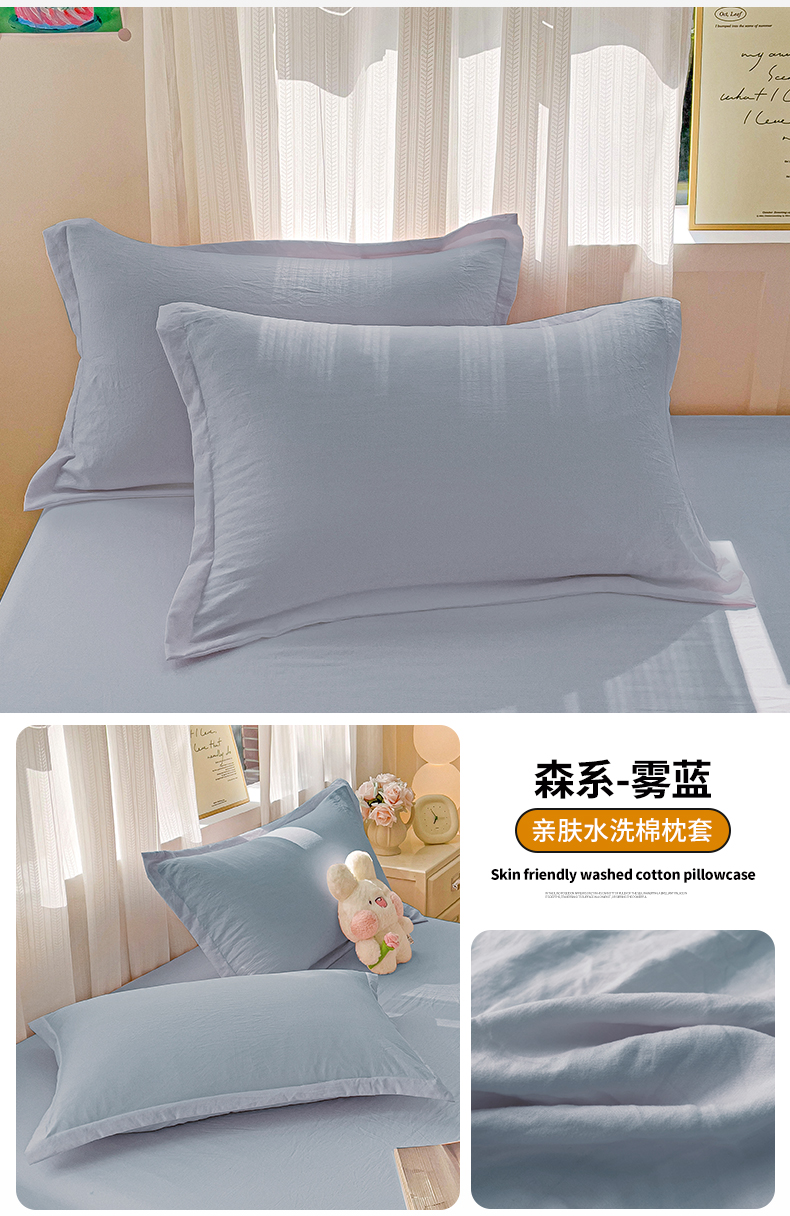 恬澳家纺 2025新款水洗棉森系枕套 森系-雾蓝