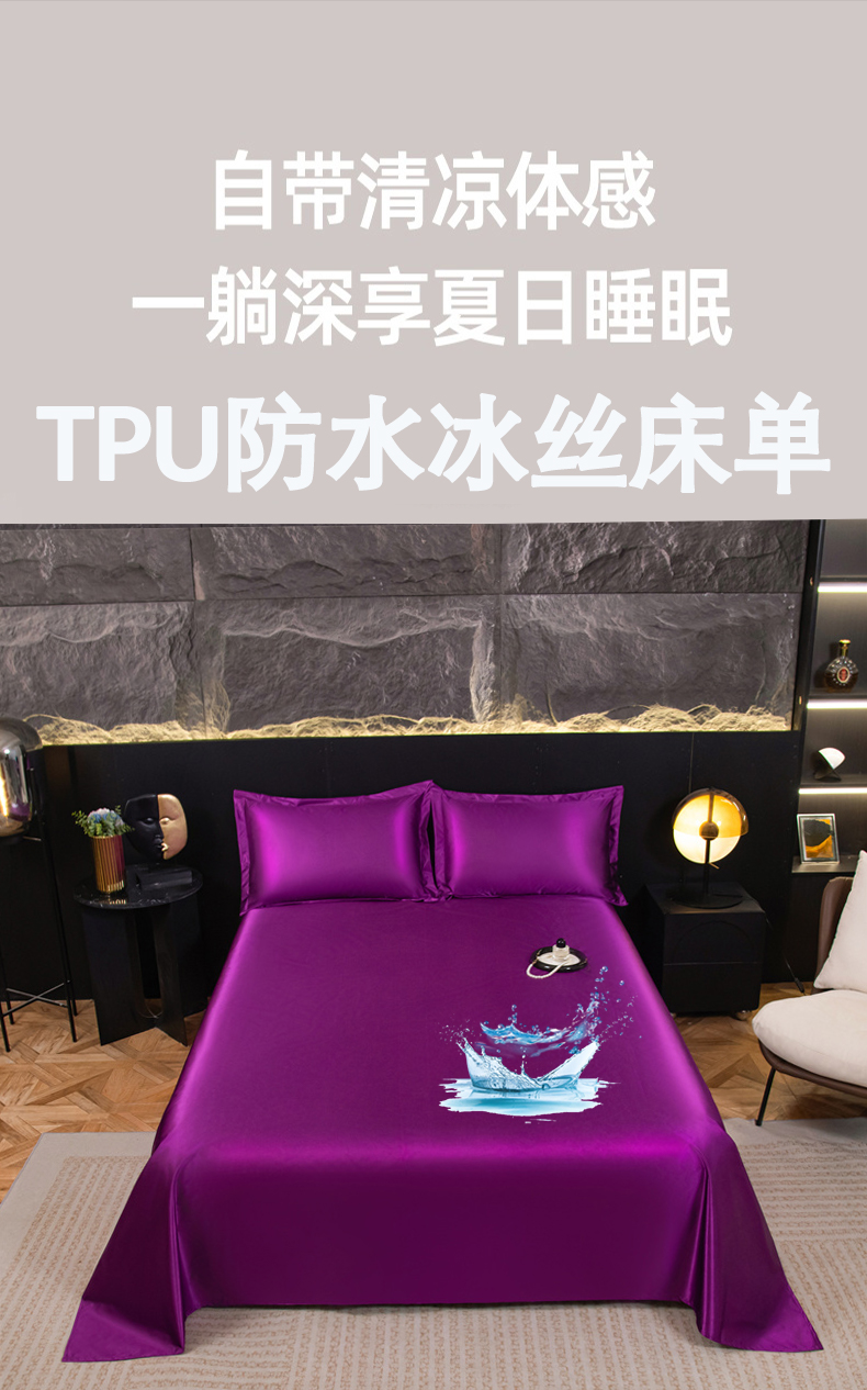 • 91家纺网 家纺一手货源 找家纺 梦舒羽 2025新款防水冰丝纯色床单凉爽柔顺宿舍双人床单 防水冰丝床单-魅惑紫