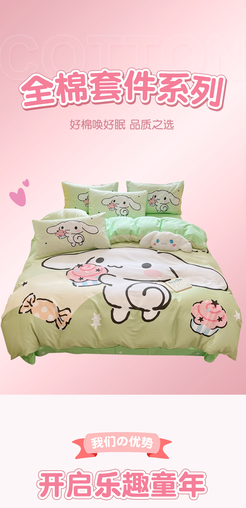 当前位置: 91家纺网 > 商品网购 > 床品套件 > 四件套 > 全棉普通四件套 > 孩子王家纺2025新款三丽鸥系列全棉活性大版印花卡通学生宿舍四件套(第三批花型) 蝴蝶大耳狗