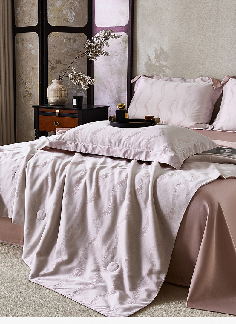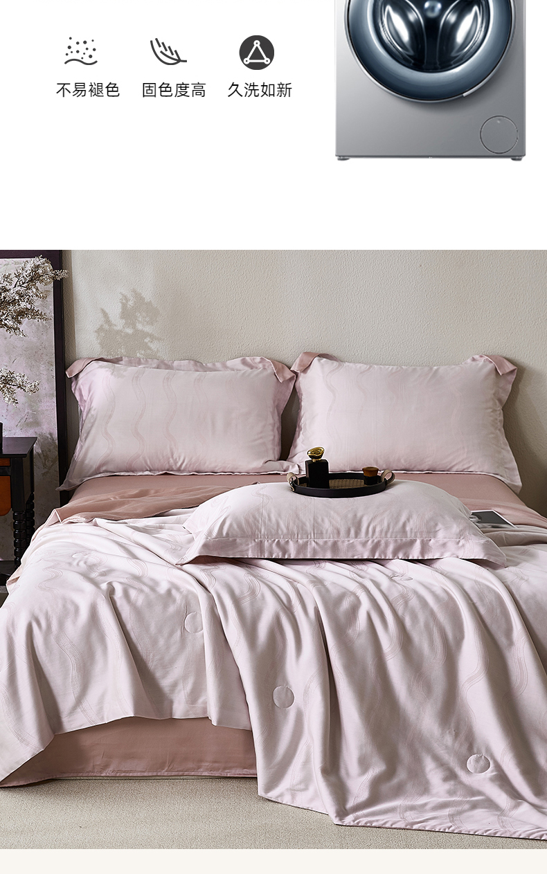 当前位置: 91家纺网 > 商品网购 > 被子 > 莱赛尔夏被 > 鸣升家纺 2025新款莱赛尔兰精天丝棉色织大提花大豆夏凉被四件套 芙尼-粉