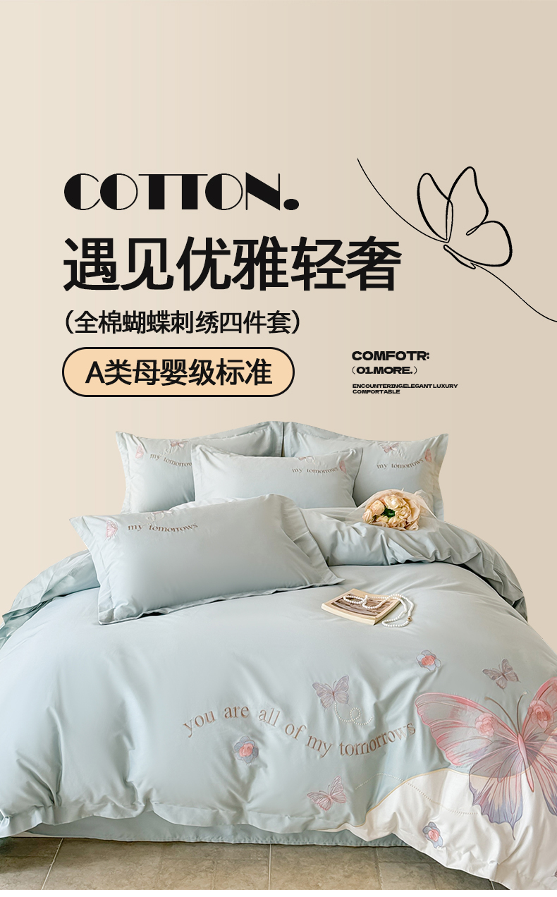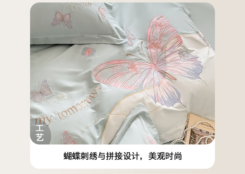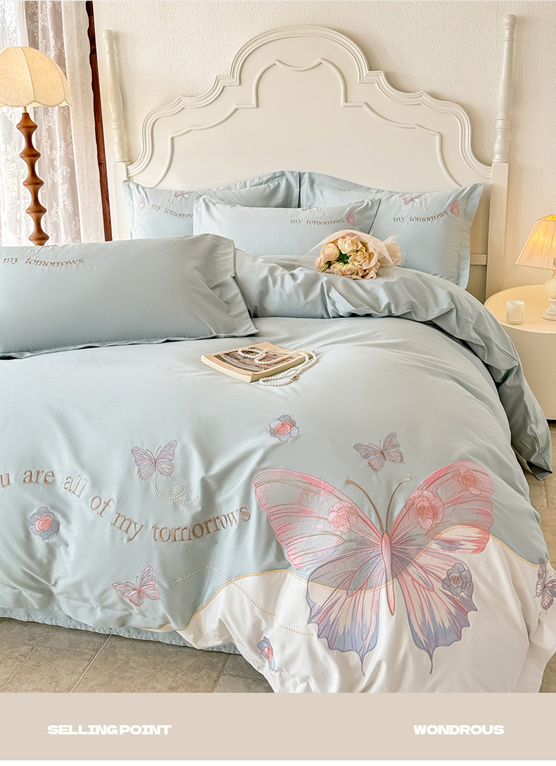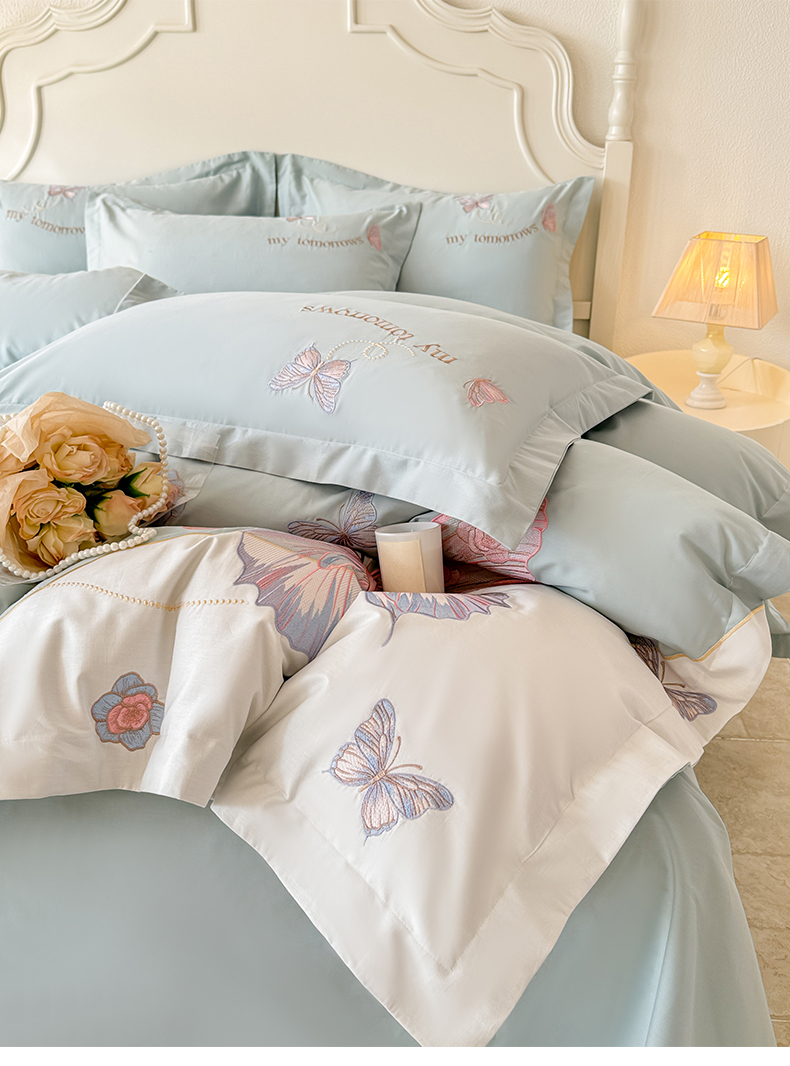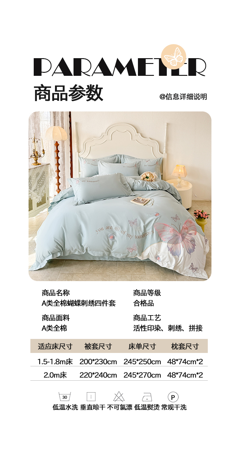 商品名称:典曼家纺 2025新款A类刺绣四件套-梦幻蝶影 梦幻蝶影-蓝